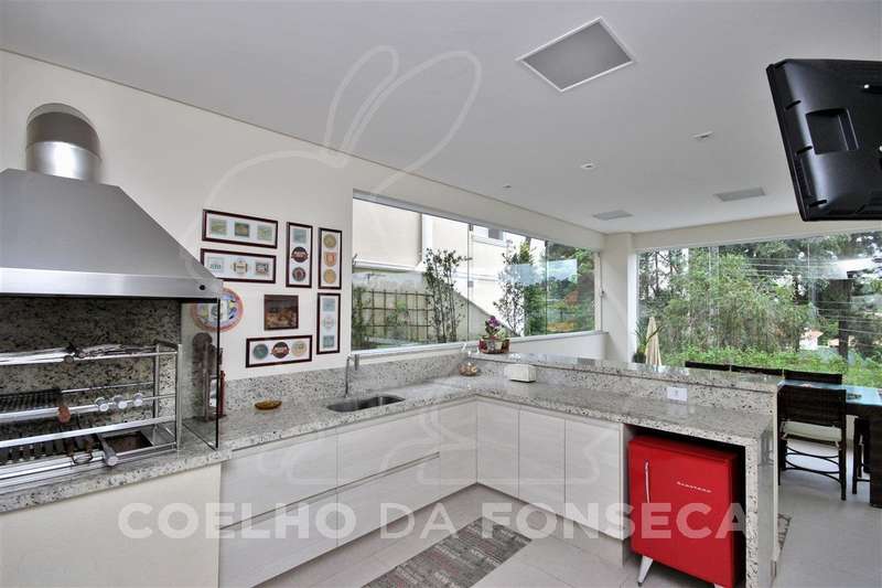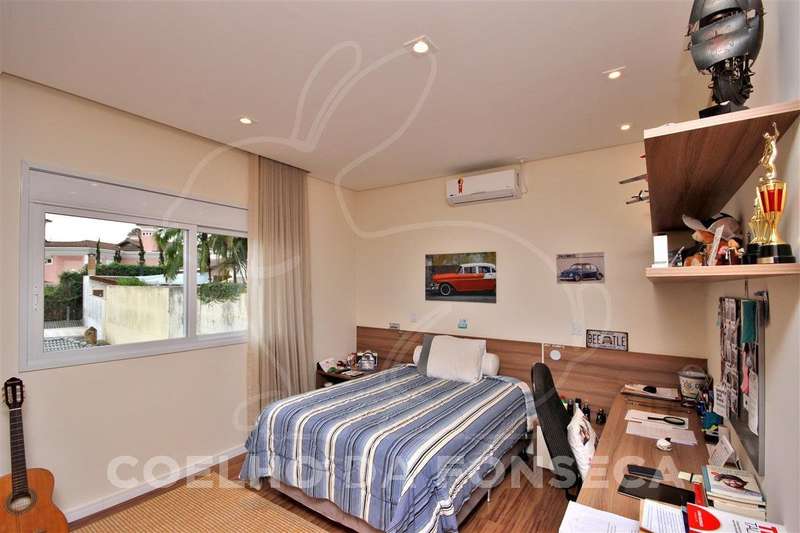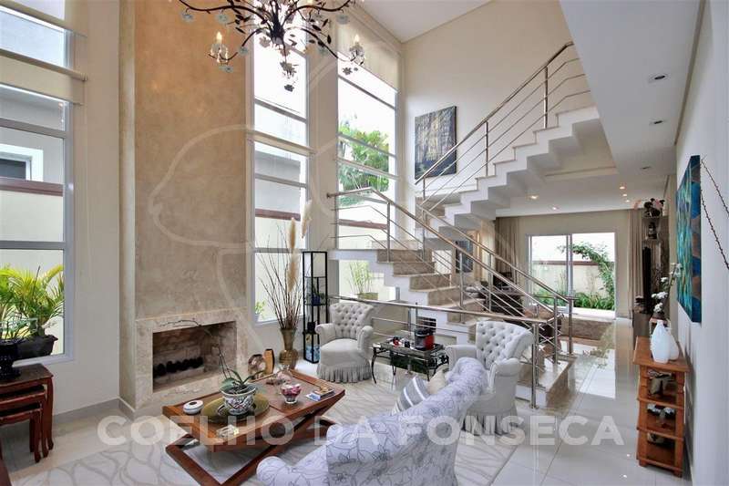 Casa em Condomínio no bairro Aldeia da Serra com 440m² área construída, 4 dormitório(s), 4 suíte(s), 8 vaga(s), 6 banheiro(s), piscina, ar condicionado, dep. de empregados, varanda, aquecedor solar, pé direito duplo.