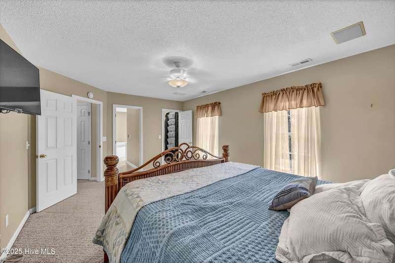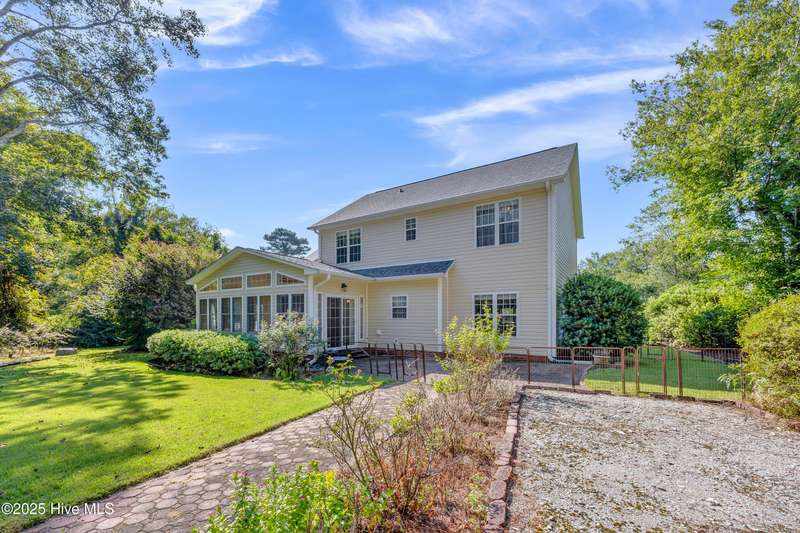 This is the one you've been waiting for! Tucked away on a quiet cul-de-sac in southern New Hanover County in Grove Point Plantation, this well-maintained traditional home offers 2,692 sq. ft. of move-in ready comfort on a generous 0.88-acre lot backing up to a conservation area. Enjoy peaceful privacy, plentiful wildlife, and the convenience of CFPUA water/sewer serviceall without city taxes.Inside, the thoughtful floor plan includes a large living room with gas fireplace, a formal dining room, sun-filled office/exercise room, and an impressive sunroom with soaring ceilings and walls of windows framing serene natural views. The modern kitchen features a breakfast area, pantry, and easy flow to the oversized brick patio. Also, there is a reverse osmosis water filtration system connected to the sink and refrigerator. Upstairs, you'll find three bedrooms including a spacious primary suite with walk-in closet, jetted tub perfect for relaxing hydrotherapy. A FROG and excellent attic storage provide flexibility and function.Highlights continue outdoors with a 10'x10' conditioned She-shed (running water, skylightsperfect for gardening or hobbies), a 7-zone irrigation system on private well, mature landscaping with shade trees, and even a large fig tree loaded with fruit. Additional features include a two-car garage, laundry room with dual entry, security system availability, and a 1-year home warranty with acceptable offer.Located just minutes to shopping, schools, and Wilmington's award-winning beaches, this home combines space, privacy, and convenience in one exceptional package. Don't wait, schedule your showing today and don't let this one slip away from you!