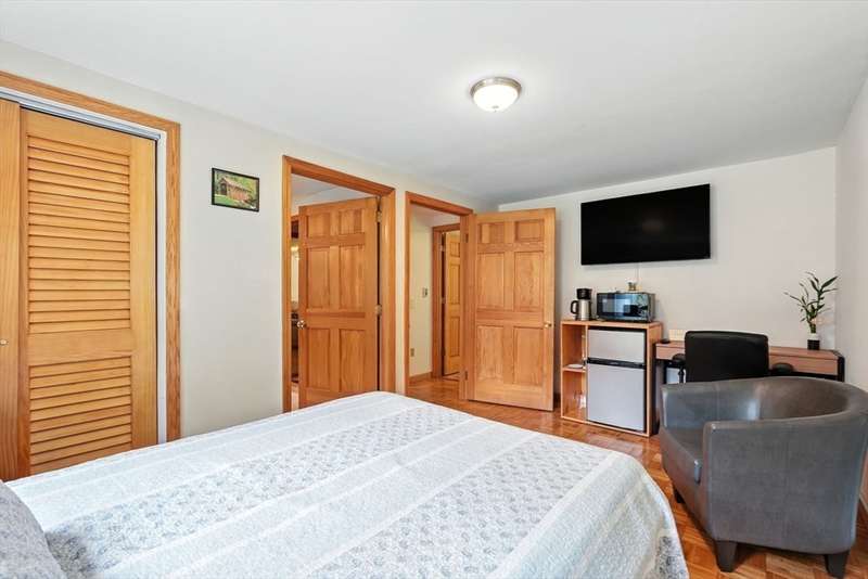 New Price! This spacious, light, airy classic Cape also offers rental income--an attractive, sleek, attached apartment now used as an Airbnb. (Airbnb hosting websites attached.) Hickory Ridge Trails, directly across the road, is a well-loved nature preserve with walking trails. The main house has 4 bedrooms, 2.5 bathrooms, a large dining room with streaming sunlight, fireplace, Capiz chandelier, and sliders for easy access to a spacious deck perfect for entertaining. The well-appointed kitchen features quartz counters, stainless appliances, and a quartz breakfast peninsula. Ample closet space throughout. In the basement is additional space for an office, exercise room, or den. Cost-saving solar power is owned by the homeowner. The new, light-filled apartment is perfectly appointed with 2 bedrooms, kitchenette, bathroom with washer/dryer hook-up, and ample parking. The barn includes ample parking and storage options. Private yard yet close to downtown. A delightful home!