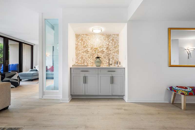 Welcome to your pied-a-terre in the heart of West Palm Beach, where the convenience of condo living meets the spaciousness of a private house. This corner unit at Lincoln Tower boasts 2 bedrooms, 2 fully renovated bathrooms, and approximately 1,500 sq ft of chic living space. The VP flooring flows throughout, complemented by floor-to-ceiling sliding glass doors that flood the unit with natural light and offer serene views of the pool and lush greenery. Modern Amenities, Unparalleled Convenience Enjoy the luxury of updated bathrooms and a versatile third bedroom currently serving as a den with a top-of-the-line built-in Murphy bed. The open-plan living area is perfect for entertaining or relaxing, while two private balconies invite you to unwind amidst the tranquility of an urban oasis