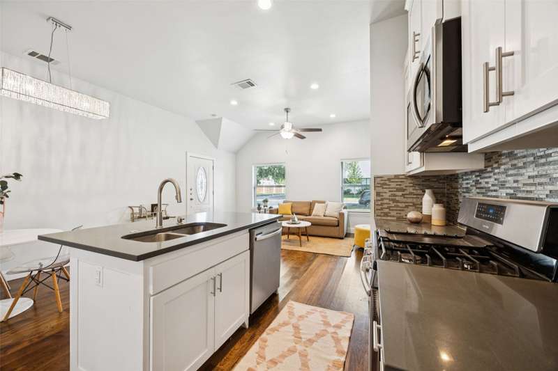 Significantly renovated in 2019, this well-appointed home sits on a prime quarter-acre corner lot in Midway Hollowone of Dallass fastest-growing luxury markets. Surrounded by million dollar new construction, the property offers immediate livability with potential strong long-term upside. Inside, soaring ceilings and hardwood floors frame a spacious open-concept layout. The kitchen features quartz countertops, barstool seating, gas range, and ample cabinetry, while the private primary suite includes a soaking tub, dual vanities, glass-enclosed shower, and walk-in closet. Two additional guest bedrooms provide layout flexibility for tenants, guests, or workspace. The expansive backyard, mature trees, privacy fence and covered composite deck offer attractive outdoor living. Additional features include a detached two-car garage, newer energy-efficient windows and newer systems. LOCATION! LOCATION! LOCATION! Ideally positioned near key retail, top private schools, Love Field, and major arteries. This turn-key home is a great opportunity for a future home owner, investor or builder.