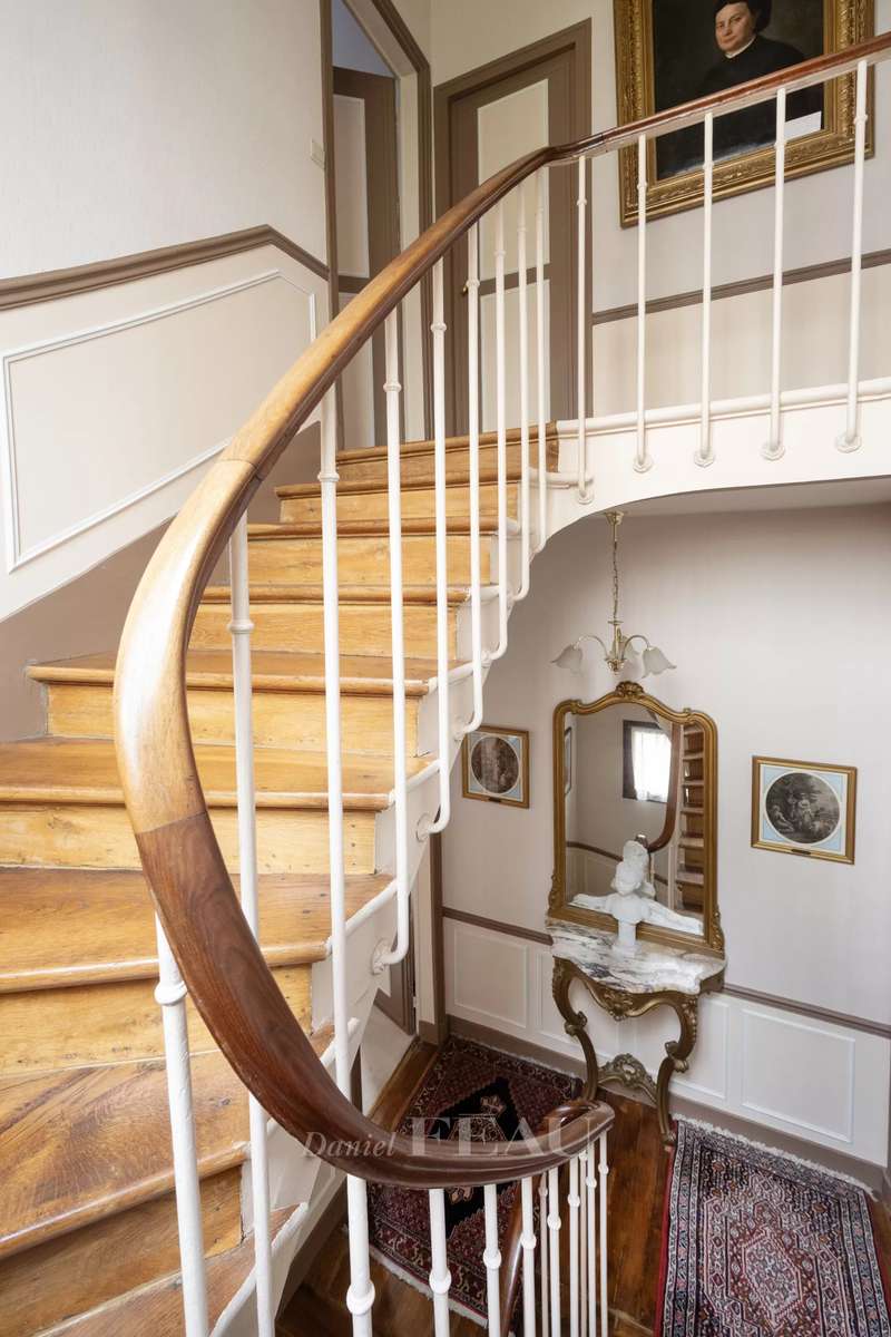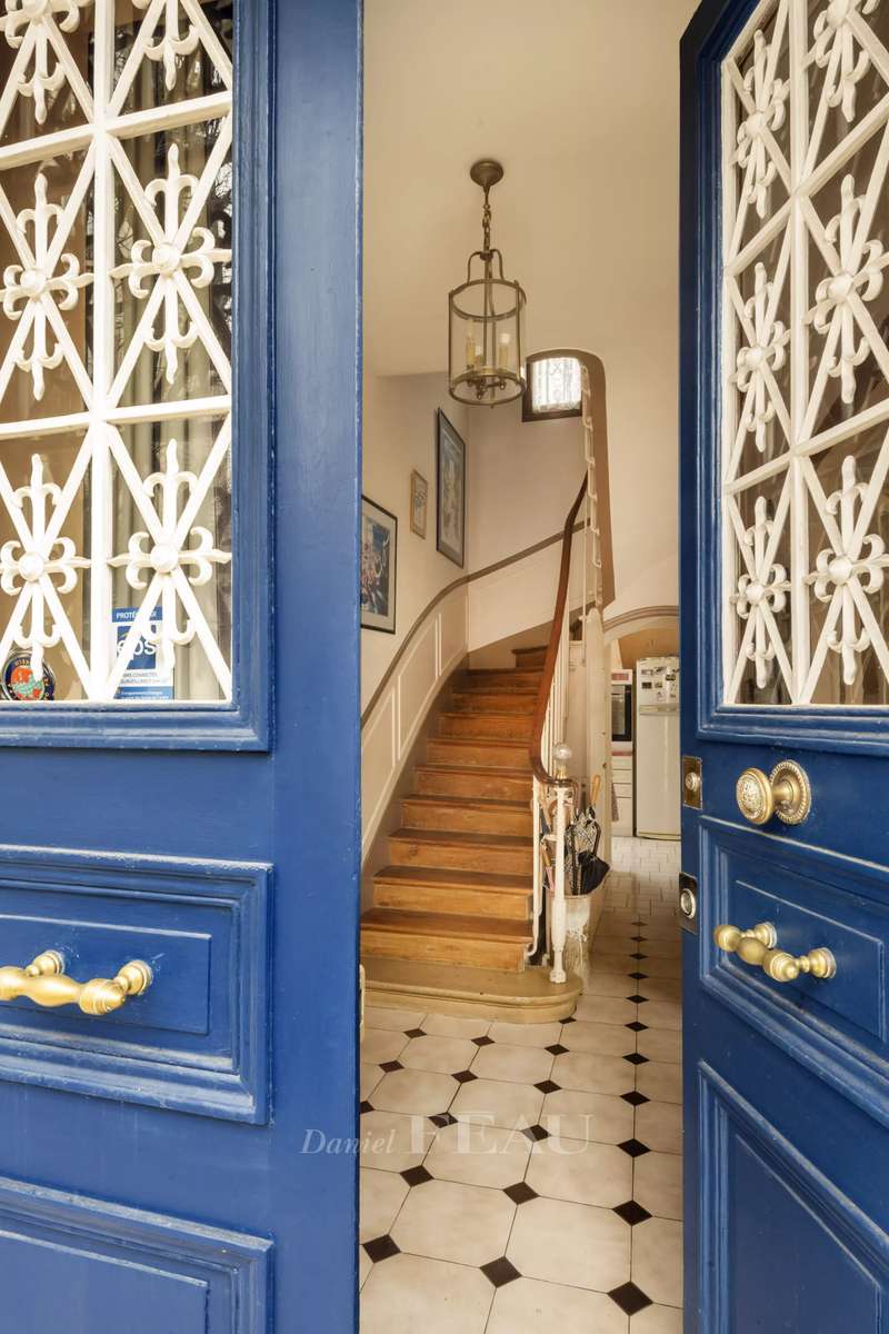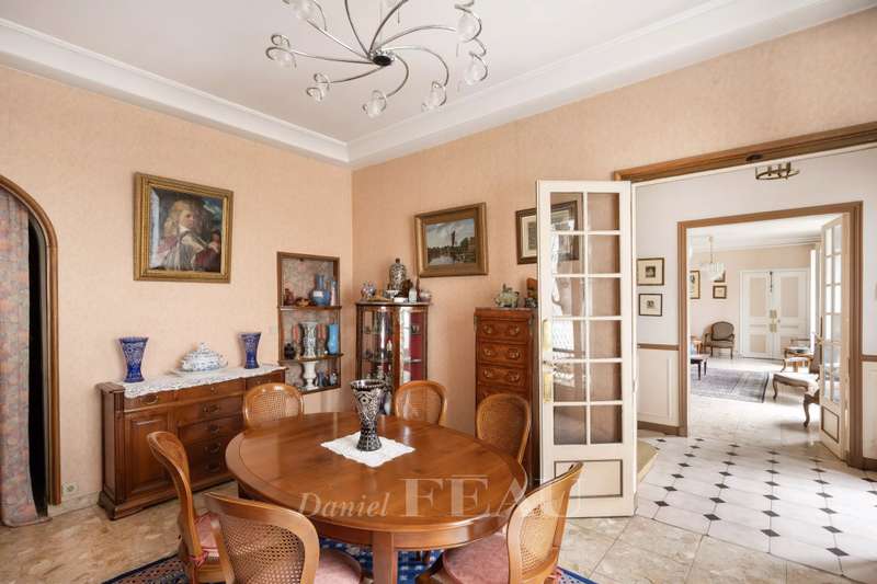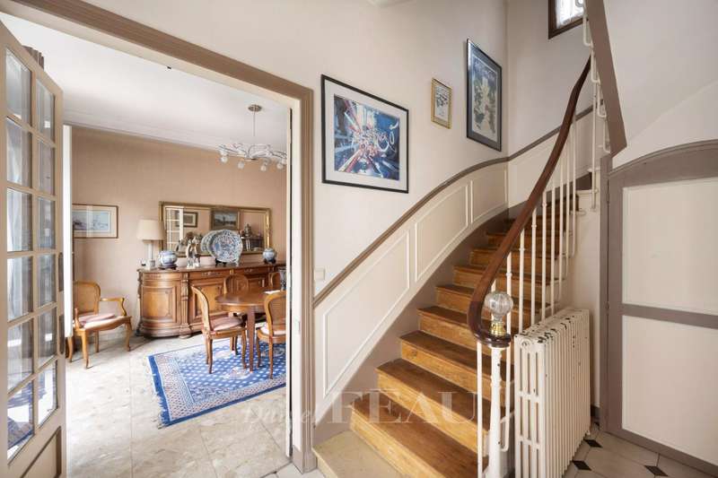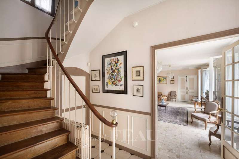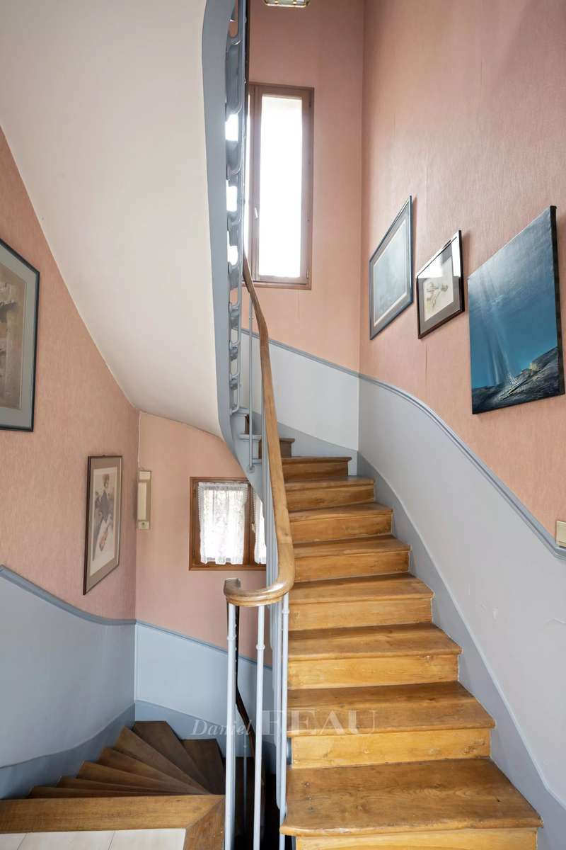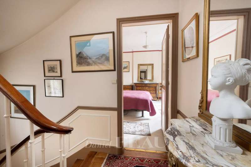 Rue du Parc. This exceptional period property is located near the shops and the metro station in the heart of Saint Mandé on the south-eastern edge of the capital. Very peaceful and accessed by means of a private drive, it offers 556.50 sqm of floor space and 307.54 sqm of living space as defined by the Carrez Law. Benefiting from two entries, it includes a spacious living/reception room, a dining room, a kitchen, a bedroom with a bathroom, a study and a wc. Two staircases access three 1st floor bedrooms, a study, a bathroom, and a separate wc. Shower rooms could be created. They also access the second floor which comprises three further bedrooms, a study, a shower room and a separate wc. Here also shower rooms would be possible. The garden level opens onto a garden featuring olive trees, and with a garage. On a basement with a large storage room, a boiler room, a workshop and a wash room.