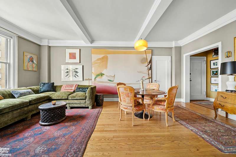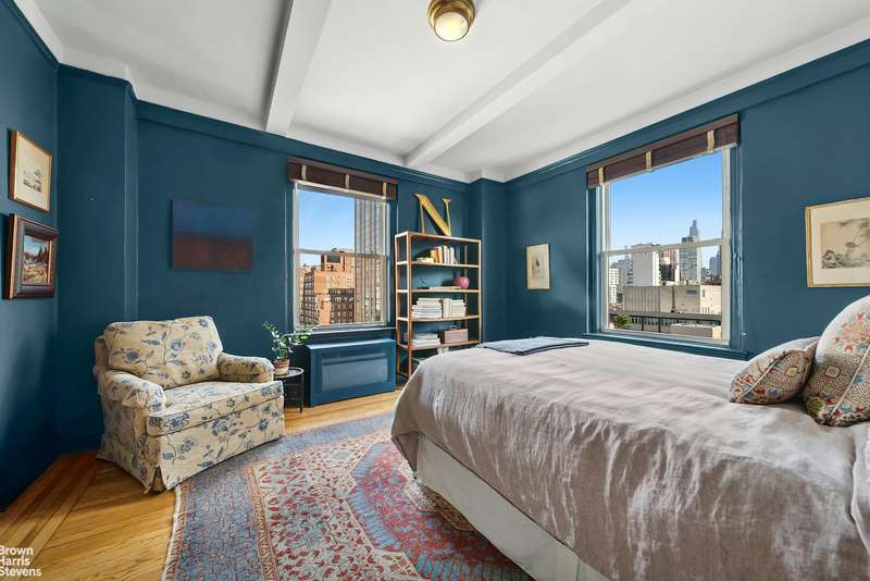 Apartment 13E is a spacious one bedroom/one bath corner apt. with distinctive finishes. The windowed kitchen has been updated to include a Viking Range, Miele dishwasher and Liebherr refrigerator. The windowed bath has been outfitted with Lefroy Brooks faucets and handles. Attention to details is apparent. Featuring abundant custom closets and storage, through the wall A/C units in the living room & in the bedroom, updated electrical system and new base boards. And above it all there are beamed 9'5" beamed ceilings. Open, airy, ready.