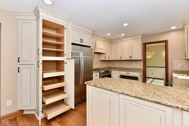 Welcome to this Highly desired Carmel neighborhood with beautiful mature tree lined streets throughout. Get the best of Hamilton County with a Carmel address and highly rated Westfield Schools. This home is waiting for a new family to make it their own with 4 nice sized bedrooms, 3 full bathrooms, living room, Family room has hearth w/Stone walls and built-ins. The Gas fireplace anchors the space. Plus, a basement rec room complete with Bar! Meticulously maintained HVAC and Brand-New Roof in August 2025. Kitchen with custom cabinets, soft close doors and drawers. Pantry pull outs and custom storage. Stainless appliances. Pella windows with blinds in the glass throughout the home! This unique Property has an extra-large Patio with built in gas line to grill. Come and see this 1 owner custom-built home in 1973. No smoking and no pets. Imagine the possibilities in your wonderful family home. Convenient location just minutes to Restaurants, Grocery and more! Easy entrance to the Monon Trail. The extra WIDE and Long driveway and Garage with storage cabinets and Fridge! This Half acre property enjoys Fruit trees like Peach, Pear and Figs. With a a fully fenced backyard ready for next year's summer garden. Large enough for a Pool AND a Pickle ball/Basketball court! Don't miss this Gem with neighborhood amenities like Pool, clubhouse, playground, Tennis and Pickleball courts.