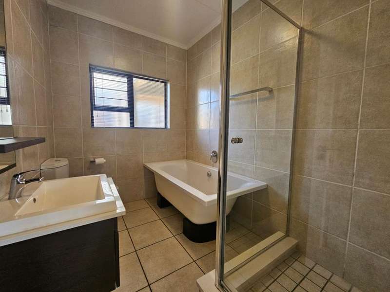 3 Bedroom Garden Apartment ?Çô Secure Lifestyle Living Spacious 3 bedroom garden apartment in a well-maintained, 24/7 security complex. The galley-style kitchen features dark wood cabinetry, Caesar stone countertops, and space for two under-counter appliances plus a double-door fridge. The open-plan lounge and dining area flow seamlessly onto a covered patio and an established private garden?Çöperfect for relaxing or entertaining. All three bedrooms are well-sized with tiled flooring and built-in wardrobes. The sun-filled main bedroom includes an en-suite bathroom with a shower, basin, and toilet. The second and third bedrooms share a full family bathroom. Additional features include: Two covered parking bays Children?ÇÖs play areas close by Complex pool and outdoor gym Fiber ready Conveniently located near the highway network, top schools, shopping malls, and business hubs. To arrange a viewing, contact Irene.