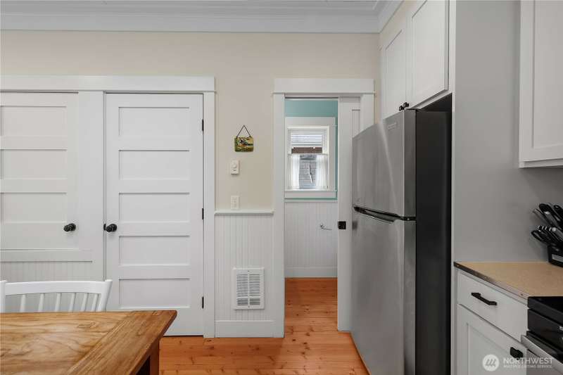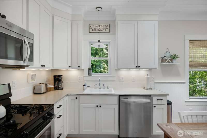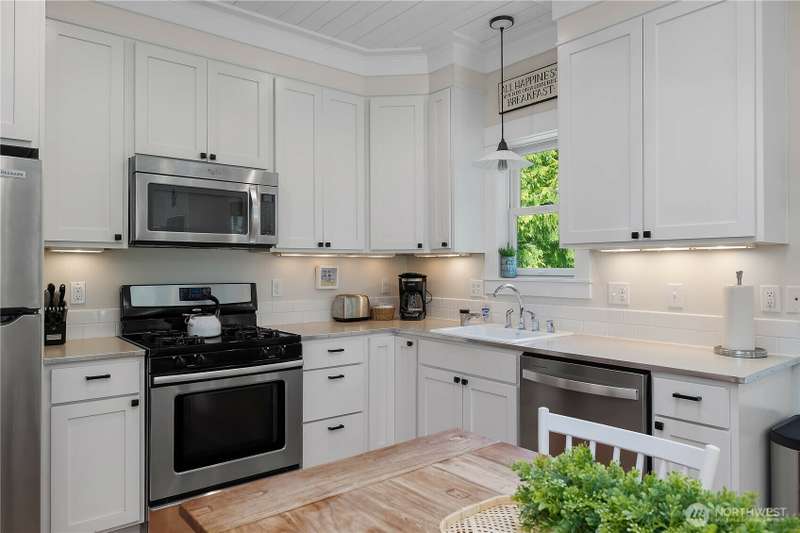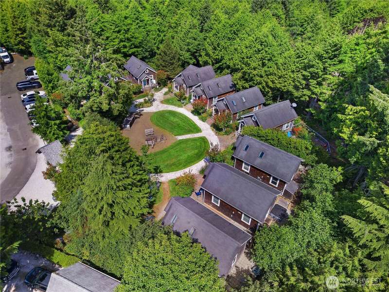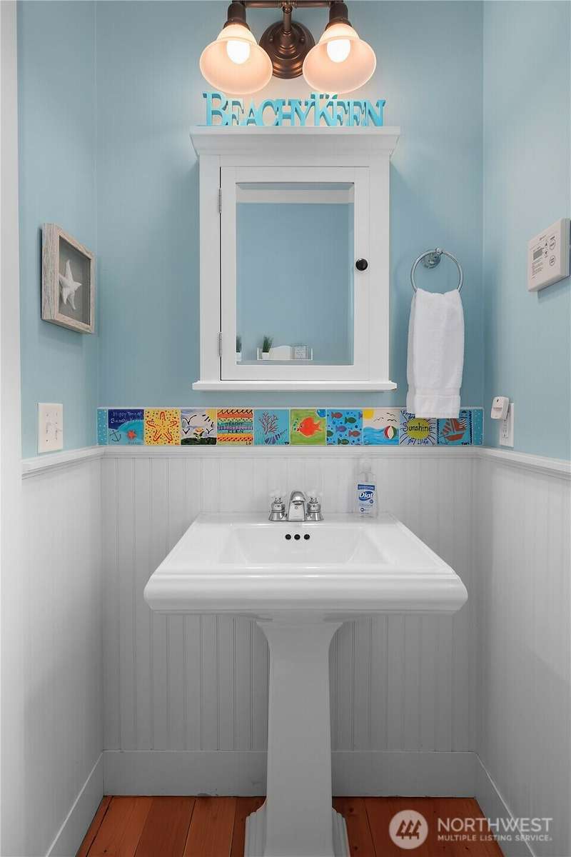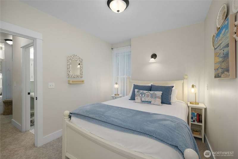 Beachy Keen is a unique two-story Beach Camp home, located on a wooded corner lot. Enjoy an open living room and kitchen with skylights, bamboo blinds, planked ceilings, and a gas fireplace. Downstairs, has high ceilings, a bunk area with built-in four extra-long twin beds with their own individual lights, shelves & drawers. The queen primary bedroom on the lower floor offers tranquil forest views. The Bathroom has a tile floor heating system. The lower level opens to a private patio surrounded by forest, featuring a bike shed, a seven-person hot tub for evening relaxation under the clear sky, with sounds of the ocean. The beach is a short walk away. This property is sold furnished, and has new carpet & new hardwood floors.