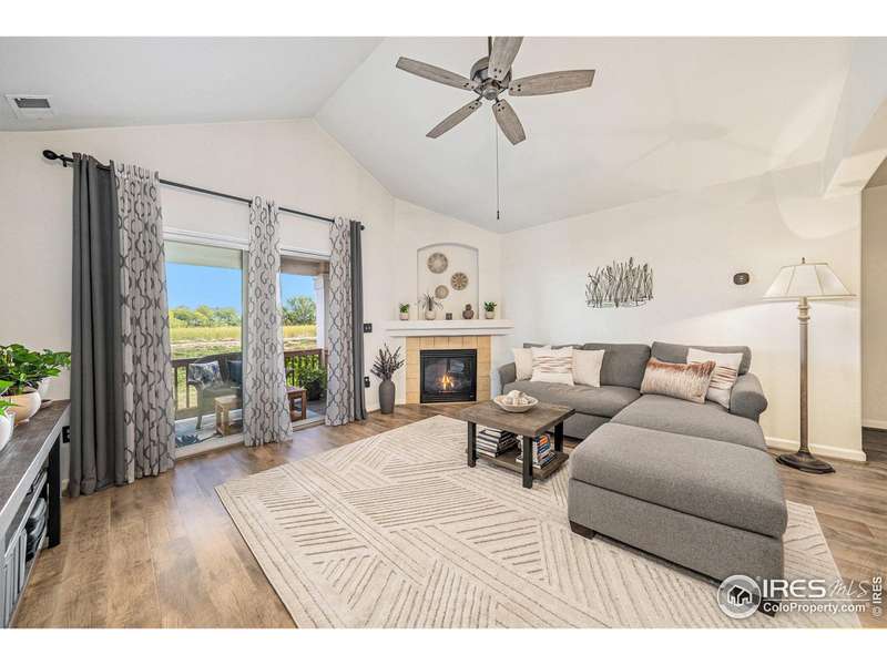 Rare Lakeview Condo! Design features include vaulted ceilings, cozy gas fireplace, huge walk-in closet & large storage closet adjacent to covered deck. The home has been beautifully taken care of & offers newer luxury laminate flooring in the living & kitchen areas. Kitchen has newer, quartz countertops, beautiful backsplash, & a brand-new high-end refrigerator. The furnace is only three years old. The views of the lake & natural areas from this unit are amazing! Lakes, nature trails, shopping, restaurants, pool, clubhouse all close to MCR & I-25. Come see this special property.