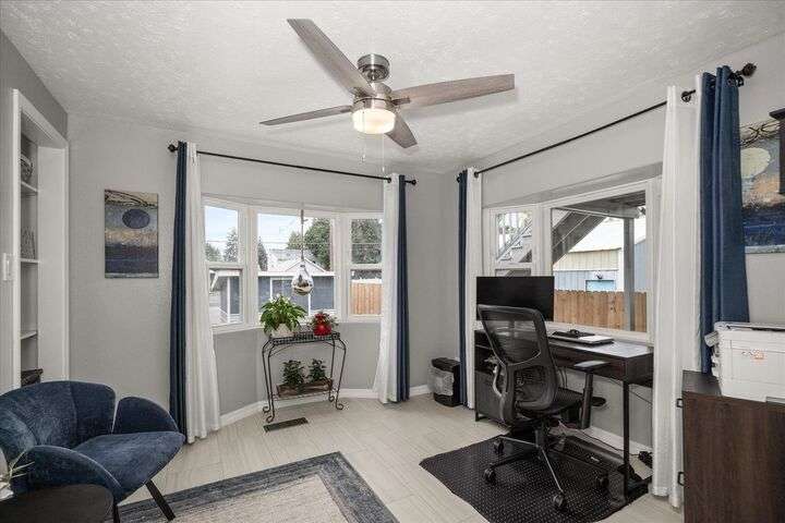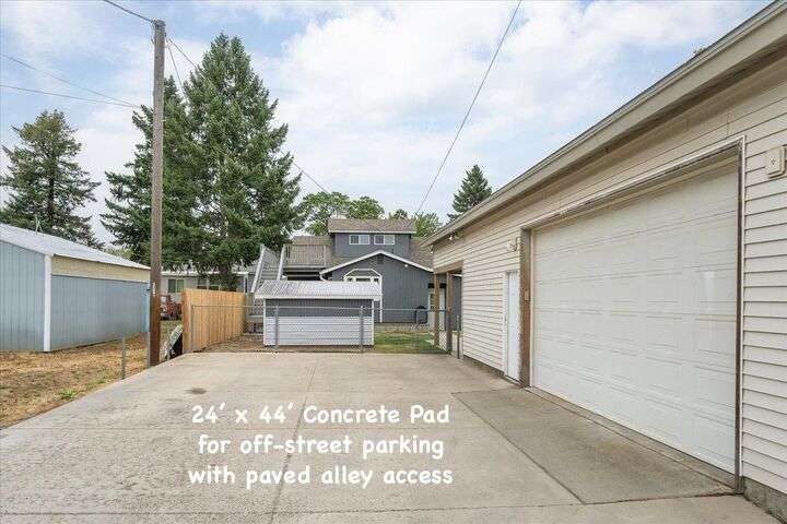 Beautifully updated South Hill home on a private & secluded 1/4 acre lot, with a large shop with 571 sq ft apartment / living quarters, abundant off-street parking, and paved alley access! Home has been completely remodeled with exquisite tiled floors & high-end finishes throughout. Main floor master suite has a double closet & exquisitely tiled master bath. Spacious kitchen + 3 full bathrooms are all beautifully updated! Large 13' x 20' bedroom on upper level with full en-suite bath with antique tub, double closet, sunroom & large private balcony with separate entrance out back. Light & bright ADU in shop has huge 8' tall north-facing windows, a cute loft bedroom with built-in storage, an updated bathroom and a good-sized kitchen with eat-in dining space. Shop is heated, insulated, drywalled, & plumbed for a bathroom. Large 24' x 44' parking pad in back is perfect for an RV or 4 vehicles (parked tandem). There's also 2 parking spots up front. 8x12 storage shed with power & clear roof (for use as greenhouse).