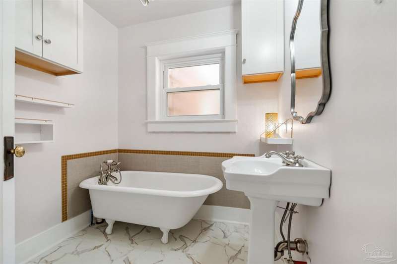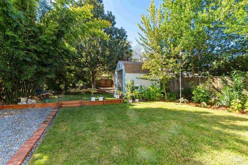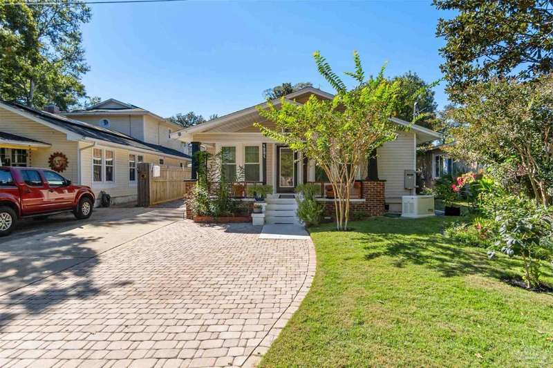 Eclectic East Hill Craftsman---Steps from Bayview Park & Bayou Texar Discover the character and charm of this 1923 Craftsman jewel box, perfectly situated just one block from Bayview Park--where tennis courts, walking paths, a dog park, and scenic Bayou Texar await. Blending historic charm with modern luxury, this East Hill gem has been upgraded at every turn. Mechanical improvements include: new plumbing & electrical, a tankless water heater, impact resistant double-hung windows, new doors, and a whole-house generator for peace of mind. Inside, every space has been thoughtfully refreshed. The living and dining rooms feature new ceiling fixtures and a beautiful electric fireplace, complemented by freshly painted walls, curtains, and refinished antique heart pine floors. The original clawfoot tub has been restored, paired with a new sink and toilet preserving the home's period authenticity while adding comfort. The Kitchen is a showplace, showcasing KraftMaid cabinetry , double ovens, Bespoke appliances and granite counters..ideal for the home chef. A real addition expands the living space with a second bath featuring a large shower, new washer/dryer, granite folding area with original cast-iron sink, pantry with freezer and ample built in storage including linen and coat closets. Exterior upgrades include a new roof, front and backyard irrigation system, gravel driveway, and a barn-style storage shed. The deep lot offers a lush zoysia lawn, privacy fencing and a garden oasis with bamboo, crepe myrtle, blueberry bushes, and fruit trees--creating a peaceful backyard retreat perfect for birdwatching or relaxing outdoors. Ideally located near downtown Pensacola this home captures the essence of East Hill living historic walkable and endlessly charming. Come see for yourself ---You will realize why people Love East Hill!!!