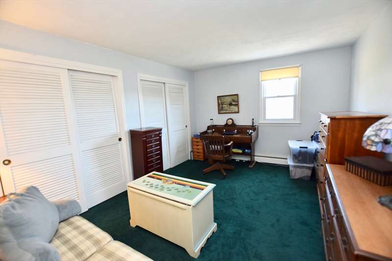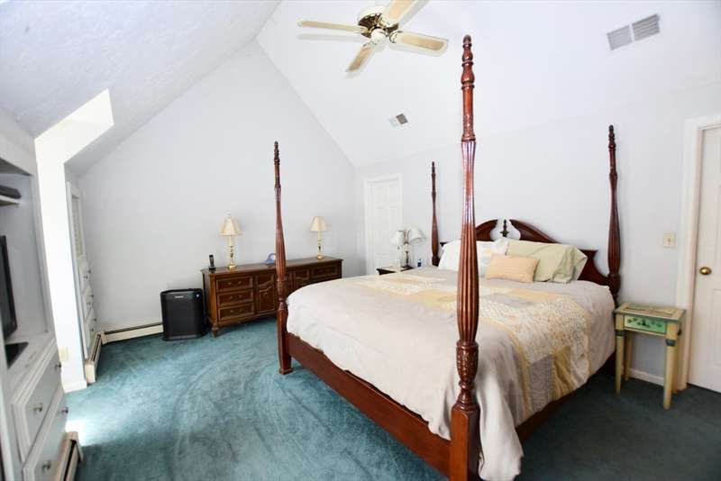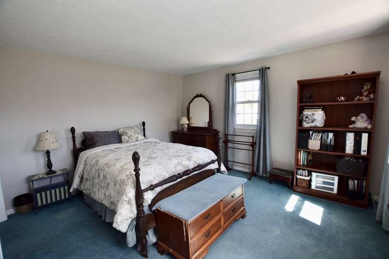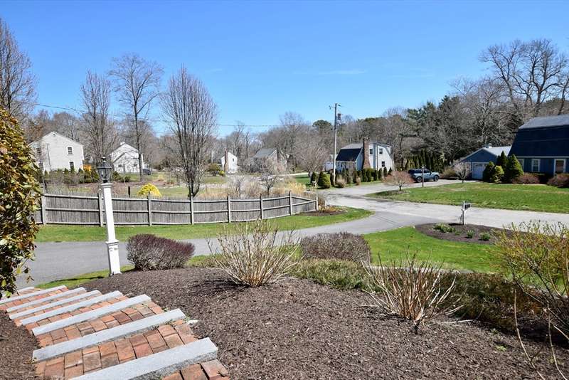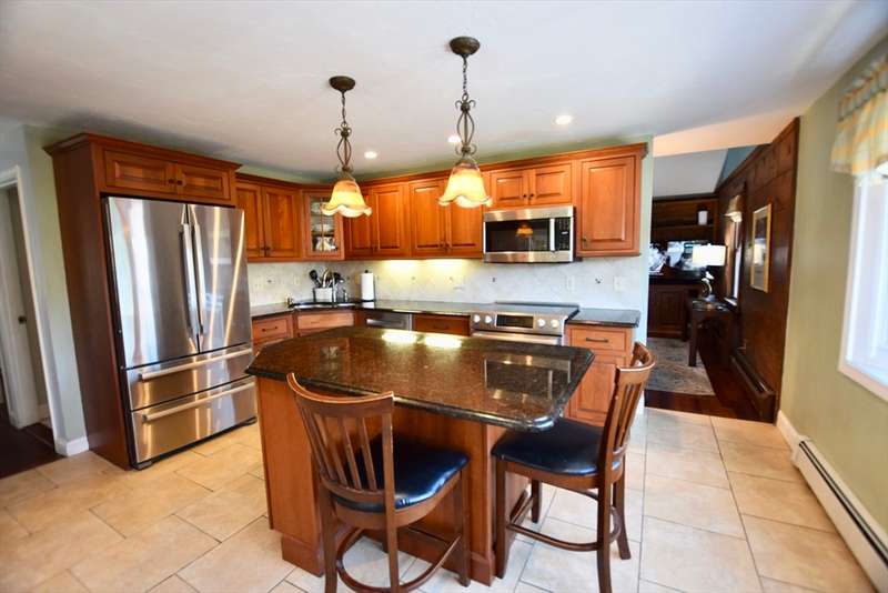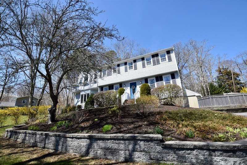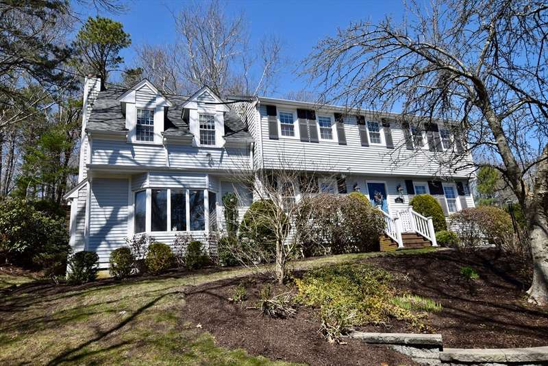 PRICE REDUCED! Nestled on a quaint cul-de-sac, this custom-built home provides both privacy and convenience that this historic town offers. This 9-room colonial provides a well-lit kitchen featuring cherry cabinetry, SS appliances, dining area and granite countertops. Adjacent is a fireplaced family room, shiplap walls and custom cabinets. A slider leads to the outside deck, firepit, patio and gardens. French doors open from the dining room with inlaid wood flooring to the living room w/ bay window, custom built-ins, fireplace and wet bar. A private office, 1/2 bath and foyer complete the 1st floor. Upstairs are 4 carpeted bedrooms and 2 bathrooms. The primary bedroom includes dormered window seats and 2 walk-in closets. The ensuite features a double vanity, shower and soaking tub. The lower level has a mudroom, laundry, storage room, 2 car garage and utility room. Efficient tankless oil burner for heat & HW with aqua booster. Owners are motivated to sell this lovely home!