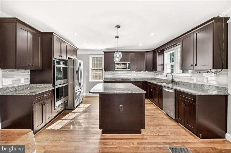This beautifully updated neocolonial in sought-after Villa Estates now features a new price. With over 3,000 sq. ft. of flexible living space-including multiple kitchens, seven bedrooms, and a fully independent lower level-this home offers exceptional versatility for multigenerational living, remote work, or investment potential-a Classic Presence with Modern Versatility. Set on a beautifully landscaped, nearly quarter-acre lot, this thoughtfully updated 1953 neocolonial blends timeless design with contemporary comfort. Extensively renovated in 2018, the four full bathrooms layout easily accommodates a variety of lifestyles. The traditional brick façade, mature trees, and gated driveway provide privacy and strong curb appeal. Inside, the main-level foyer opens to two spacious bedrooms and a full bath-perfect for guests, a home office, or a private suite. At the heart of the home, the open-concept eat-in kitchen features stainless steel appliances, double wall ovens, granite countertops, a large island, and generous pantry storage-making everyday meals and entertaining effortless. A unique bonus is the enclosed porch, reimagined as a second full kitchen with marble flooring, wall-mounted A/C, and a high-capacity exhaust fan-perfect for culinary enthusiasts, special gatherings, or seasonal use. Upstairs, you'll find three well-sized bedrooms and two full baths, including a serene primary suite with a walk-in closet and spa-style ensuite: a jetted tub, a glass walk-in shower, and a double vanity. Solid wood floors unify the upper and main levels with warmth and elegance. The lower level offers true independence, featuring a private entrance, two bedrooms, a full kitchen, laundry facilities, a spacious living/dining area, and ample storage-ideal for extended family, guests, or generating rental income. Step outside to a new 12' x 14' deck overlooking a fully fenced yard-perfect for entertaining, gardening, or play. A 14' x 20' shed with full electrical service adds exceptional storage or workshop potential, and rainwater-harvesting garden beds are a bonus for green thumbs. Additional features include window treatments throughout, a ready-to-activate security system, and a 1-year home warranty for peace of mind. Located in a quiet, tree-lined neighborhood with sidewalks and parks, the home is just minutes from downtown Frederick while offering a retreat from congestion. Enjoy easy access to US-15 and I-70, connecting you quickly to DC, Baltimore, and Northern Virginia. Experience space, comfort, and character-schedule your showing today.