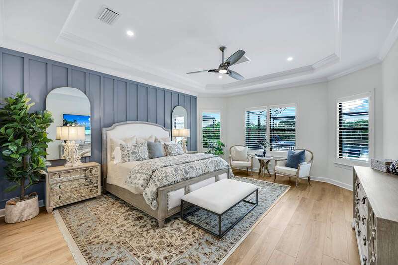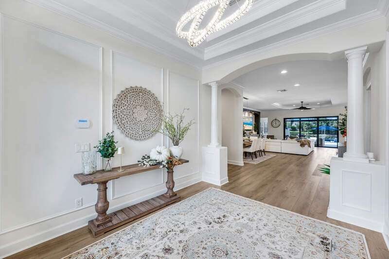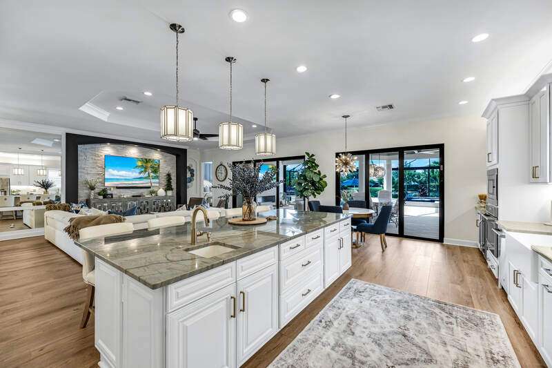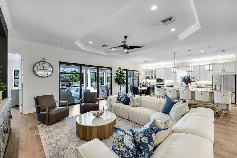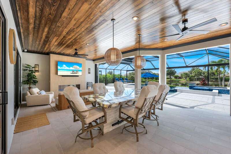 Welcome to 9223 Rialto Lane, where luxury and lifestyle come together in this stunning Pallazio open-concept home. Recently transformed with over $600K in upgrades, this residence offers an extraordinary blend of indoor elegance and resort-style outdoor living. The highlight of this home is the new oversized outdoor living oasis: infinity edge pool with sun shelf, large spa, outdoor fireplace, and state-of-the-art 16-foot summer kitchen. Entire outdoor area is porcelain tile flooring laid over a cement slab. Custom lighting on the picture frame screen cage, in and around the pool. This home offers one of the largest outdoor living areas in the community, making it truly exceptional. Perfect for entertaining or simply soaking in the sun and breathtaking western sunsets Naples is famous for. Inside, you'll find 3 gracious bedrooms plus a den. Plantation shutters, and wide-plank luxury vinyl flooring throughout, except master bath with marble. The newly expanded kitchen shines with quartz countertops, upgraded cabinetry, custom backsplashes, and top-of-the-line appliances, including a Wolf professional gas range with double ovens. Bonus beverage center with wine cooler. The reimagined primary suite boasts a bay window overlooking the lanai, upgraded spa shower, expanded dressing area, and custom storage solutions. Additional upgrades include a Lutron lighting system, climate-controlled over-sized 2-car garage, tankless water heater, newly added electric storm screens on the lanai and lush, colorful landscaping surrounding the entire home. As a bonus, GOLF MEMBERSHIP IS INCLUDED with this property. Esplanade's resort lifestyle features a free-form pool with cabanas, poolside restaurant and bar, fitness center, tennis, pickleball, bocce, full-service salon and spa, a culinary center with wine tasting room and wine lockers, and a dog park, plus an 18-hole championship golf course. Perfectly located, Esplanade provides easy access to Naples' renowned beaches, shopping, dining, and all the best the area has to offer.