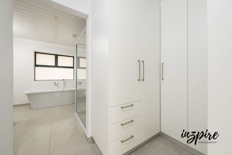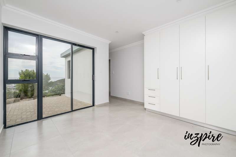 This exquisite modern duet features three bedrooms. The master bedroom offering stunning sea views includes an en-suite bathroom with sensor lights under the basin and a walk in closet. The open-plan kitchen and living area is designed with a built-in braai and panoramic sea views, completed by a separate scullery, the kitchen includes a gas hob. A guest toilet is located on the main floor. The lower level provides ample space for additional lounge area, two bedrooms with sea views sharing a bathroom, featuring sensor lights under the basin. Additionally there is a laundry room with access to your yard. This is an opportunity you don't want to miss! Call us today for a viewing.