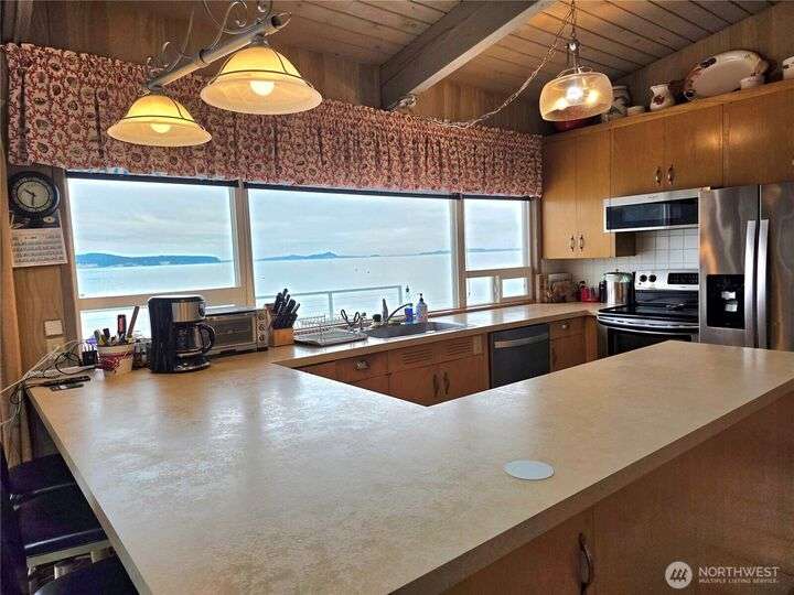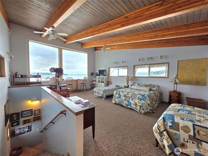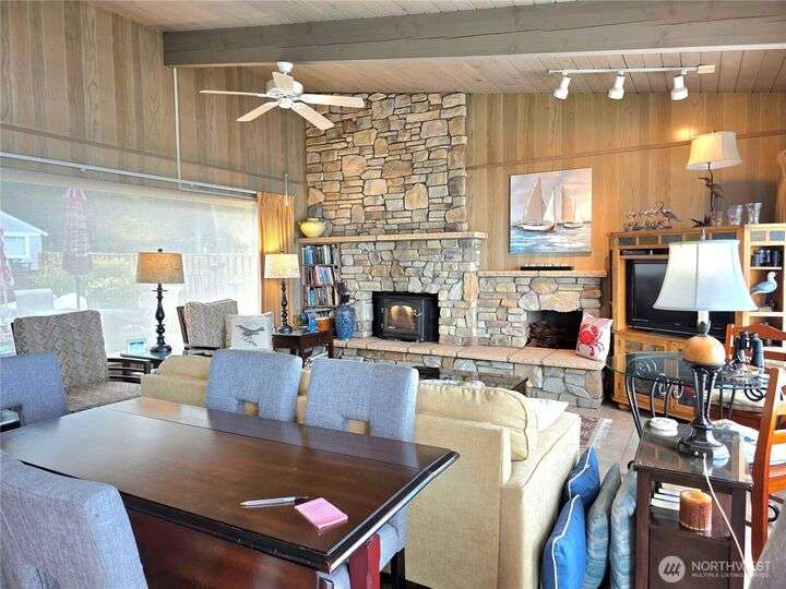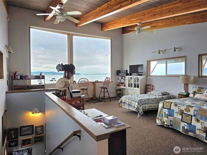 Beautiful Utsalady waterfront home offered for lease October 1st 2025 - May 31st 2026. Home is fully furnished with some furnishings negotiable. Open Livingroom and kitchen area with large windows that pull in the view. 2 bedrooms downstairs and large bonus room upstairs with extra beds. Both bathrooms on main floor. Expansive patio with room for entertaining and steps to the beach. Call for an appointment to see this one of a kind home.