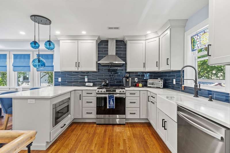 All the work is done! Move right in and live your best life in Hull just a quick stroll to Nantasket Beach, bay sunsets & restaurants, plus the convenience of Hull Village & the commuter boat to Boston & Logan. This gut-renovated 2024 ranch sparkles w/ hardwood floors, recessed lighting & a gas fireplace. The main level offers a stunning kitchen w/ pantry & laundry, open to dining & living w/ direct access to the deck & fenced yard. The flexible floor plan offers 3 4 bedrooms to suit your needs the current owners created a first-floor primary suite, while the walk-out lower level includes a spacious family room, 2 additional bedrooms, and a full bath. Need an office or guest suite? The versatility is yours! A sunroom adds year-round charm, while the low-maintenance yard, spacious deck & new shed make entertaining a breeze. With 2 full baths, ample storage & plenty of parking, this is the perfect year-round home with room for summer visitors.