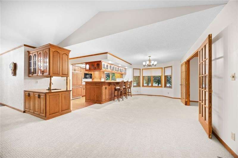 Entertainer's Dream on a Prime Corner Lot - Luxury Meets Comfort. This 3-bedroom, 3 bath home with a spacious 3+ car garage is situated on a large, prime corner lot. The open floor plan includes the kitchen, dining area, living room, and sunroom, featuring a wet bar and fireplace. The home has been recently updated with new carpeting, fresh paint, and all-new custom blinds. The primary suite offers a walk-in closet, fireplace, and Jacuzzi tub. The sunroom provides an ideal space for enjoying morning coffee or evening relaxation. An aggregate rock patio at the rear of the house offers a private outdoor setting. The oversized attached garage is insulated and heated, providing additional comfort and functionality. Conveniently located within walking distance to Litchfield Golf Course, Lake Ripley, and Anderson Gardens. This custom-built home is a must-see.