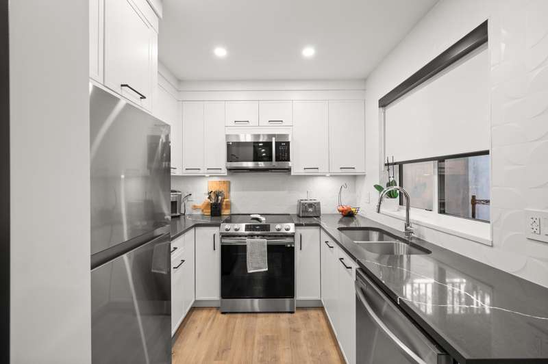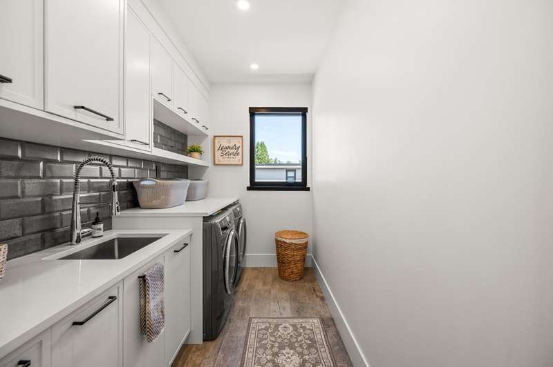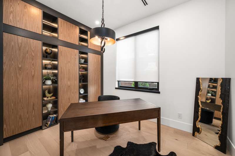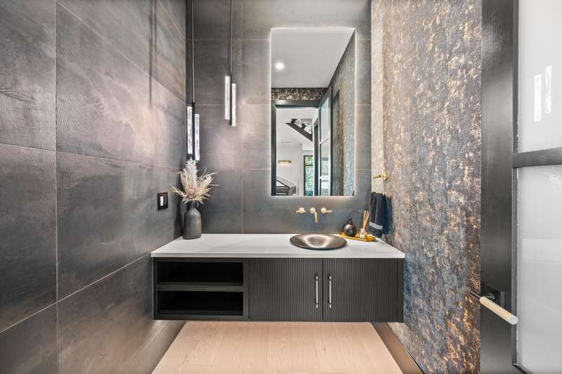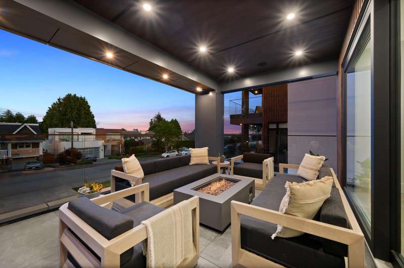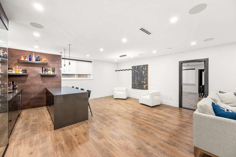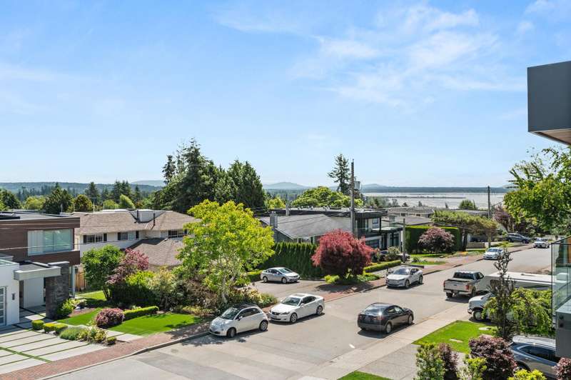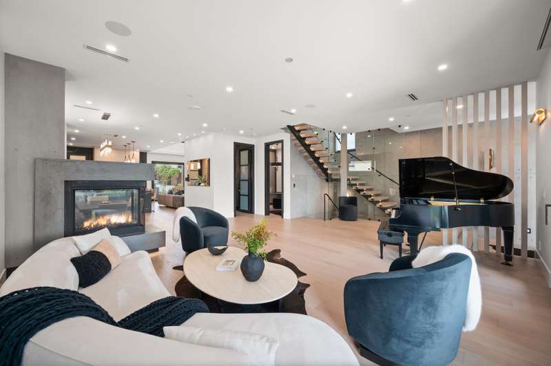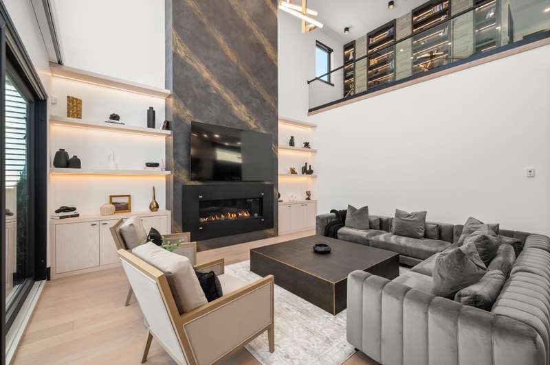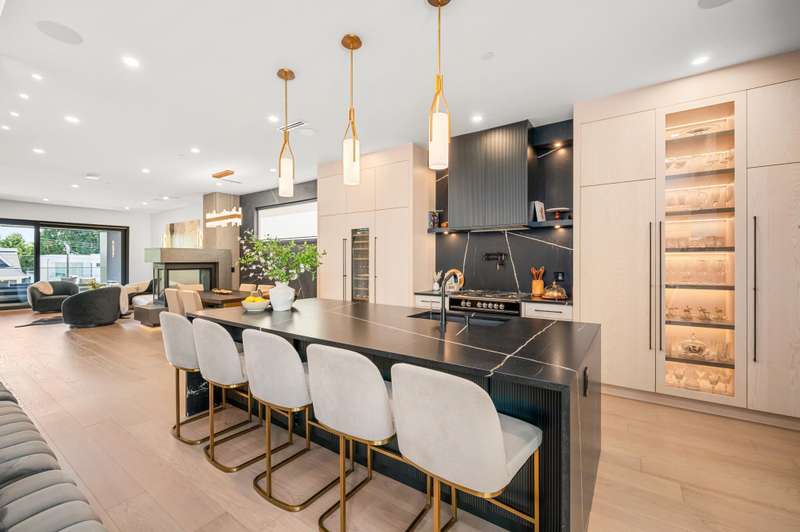 Stunning design & quality construction by Rychter Custom Homes. Elegant Hardwood, floating staircase, abundant light, & extensive wood features are just the start. Spacious covered deck access from living room with view. Radiant heat, A/C, automated blinds, Control 4 - smart home, on demand H/W, Retractable B/I Vac, Shinnoki Panel Cabinetry with integrated Liebherr Fridge, wine cooler & 24" Freezer. Fisher Paykel appliances, B/I Coffee/Espresso & Steam Oven. Spice kitchen. Covered outdoor living space with b/i barbecue station. Primary suite has open glass wall to the sundeck with view of the mountains & ocean. Add'l balcony off back bedroom. 1-bed legal suite is also registered with Airbnb. Bsmnt offers rec room with wet bar, wine storage & sauna.