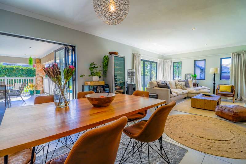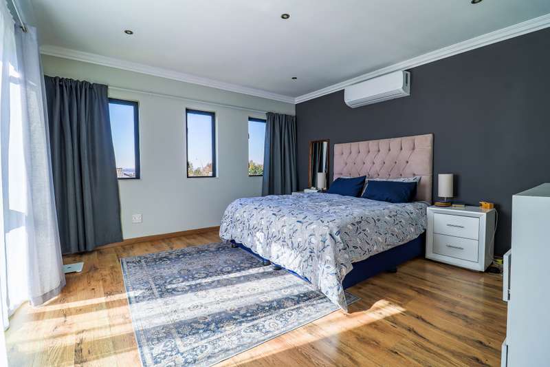 EXCLUSIVE MANDATE Let’s make a deal – seller willing to NEGOTIATE! This immaculate double-storey home is a rare gem nestled in a quiet street of the prestigious Midstream Hill Estate. Offering a unique and sought-after layout with four en-suite bedrooms upstairs and a full guest suite downstairs, this home is designed for modern family living and exceptional comfort. Upon arrival, you’re welcomed by a double garage, generous visitor parking, and a double side gate—perfect for trailers or additional vehicles. Step inside to a stylish entrance foyer that doubles as a cozy private lounge, with stacking doors that open onto a large, semi-enclosed patio complete with a built-in braai. This entertainer’s haven overlooks a lush, expansive garden and a sparkling pool—ideal for hosting or relaxing in style. To the right of the foyer is a beautifully appointed kitchen featuring a central island with breakfast nook, a 4-plate gas hob with 2 electric plates, an electric oven, and a private scullery with space for three appliances. The kitchen flows into your open-plan dining and lounge areas, both opening onto the patio and garden with full stacking doors—bringing natural light and seamless indoor-outdoor living. On the opposite side of the home, you’ll find a guest toilet, a dedicated study, and a spacious downstairs guest bedroom with en-suite bathroom and garden access—ideal for visitors, live-in parents, or older children. Upstairs, a private PJ lounge opens to a large balcony shared with the master bedroom. The upper level features four family bedrooms, each with its own en-suite bathroom, offering ultimate privacy. The master suite is a standout with a walk-in closet, full en-suite bathroom, air-conditioning, and a second private balcony—your own private sanctuary. Bonus Features Include: - 5 Bedrooms – all en-suite - Guest suite downstairs - Study and PJ lounge - Domestic accommodation - 2 balconies - Large garden and swimming pool - Air-conditioning in the main bedroom - Excellent flow and entertainment spaces If you're looking for space, comfort, and a unique layout that truly caters to family living, this rare find in Midstream Hill ticks every box. **Rates & Levies are estimated**