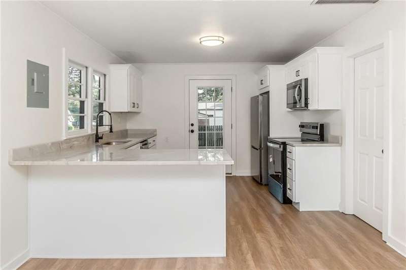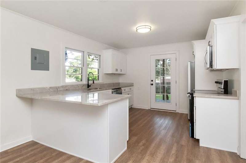 **Call today to make this your New Beginning! Seller will consider contributing up to $5,000 toward Buyer's expenses, subject to acceptable terms and conditions.** Welcome to this beautifully renovated home on a picturesque corner lot, remodeled by Sweet Home Residential LLC. Relax on the inviting covered front porch before stepping inside to an open floor plan with durable LVP flooring throughout. The spacious kitchen is a highlight with granite countertops, new cabinets, undermount kitchen sink, breakfast bar, and brand-new stainless steel appliances. The primary suite is tucked away at the back of the home and features a generous walk-in closet and a beautifully updated bathroom with a walk-in shower. The secondary bedroom offers private access to the hall bath, creating a convenient en-suite option for guests or family. Off the kitchen, enjoy a large covered back porchperfect for entertaining or quiet evenings outdoors. Additional updates include low-maintenance aluminum siding, durable metal roof, and tankless water heater. Conveniently located near shopping, dining, schools, and with quick access to Interstate 10. Large shed in the backyard to remain in its current AS-IS condition. Square footage measured by agent using the CubiCasa application; deemed reliable but not guaranteed. Buyer and/or Buyers agent to verify all pertinent information.