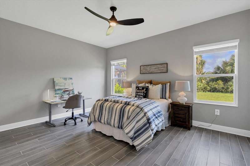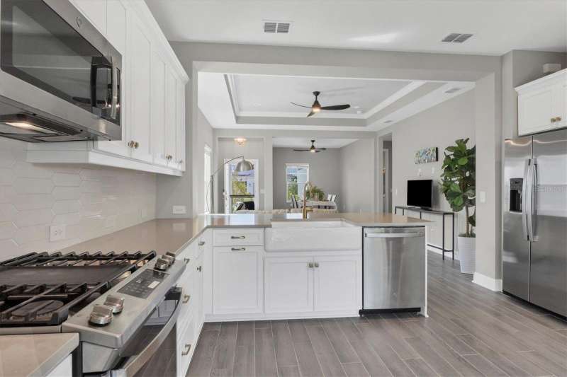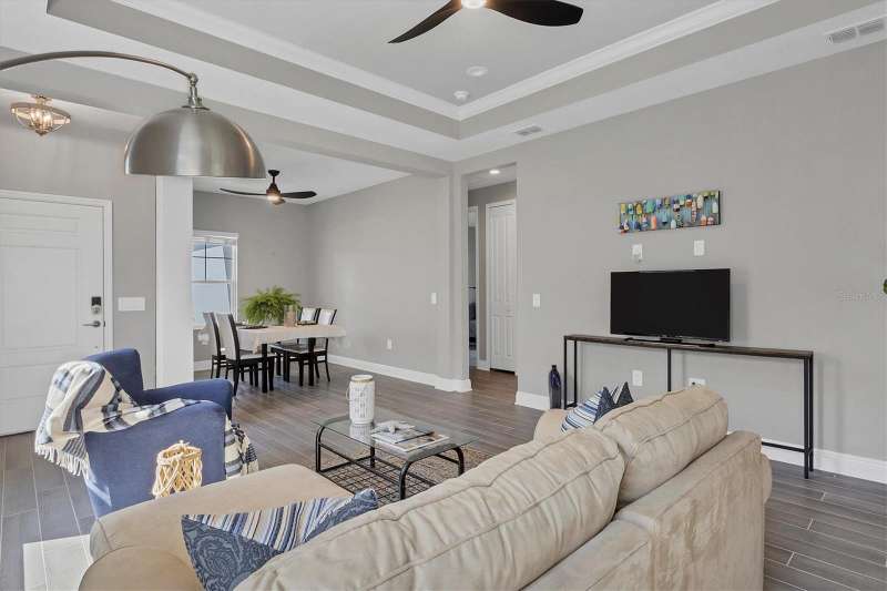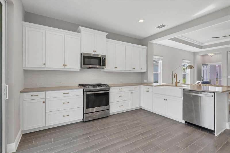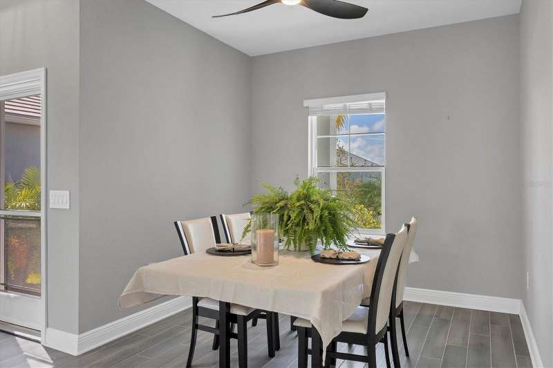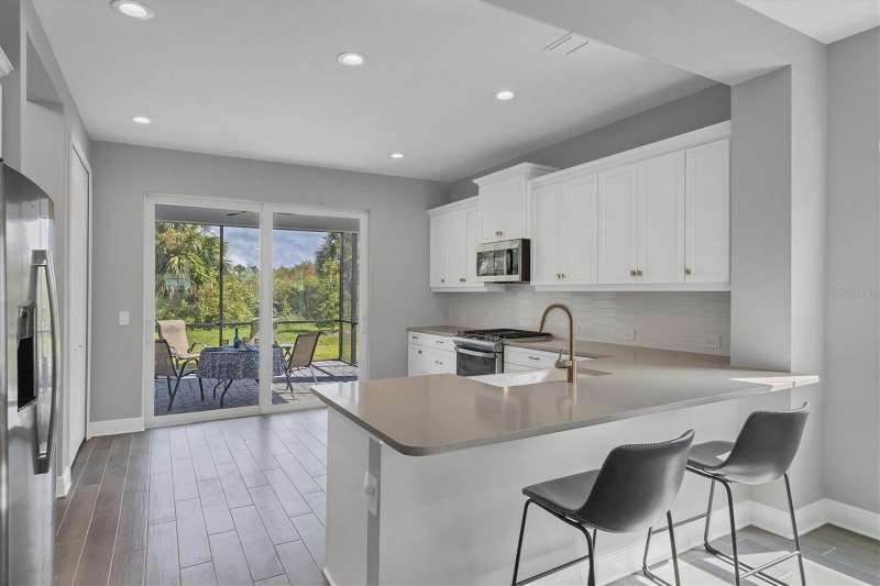 This 3-bedroom, 2-bathroom home offers a perfect blend of modern elegance and serene comfort. As you step inside, you'll be greeted by an open-concept living space that includes a dining room alongside the living room. Your eyes will be drawn to the contemporary kitchen with sleek subway tile backsplash, ample counter space, and a gas stove for all your culinary adventures. Another feature of the kitchen is the double sliding doors leading to the extended lanai. The screened lanai is perfect and provides a tranquil retreat with lovely views of a private preserve—ideal for relaxing or entertaining guests. The lanai has a ceiling fan, electric outlets, and a gas stub for you to add a grill or even better, add an outdoor kitchen. The home boasts a spacious ensuite primary bathroom and bedroom with a walk-in shower and two walk-in closets. The other two bedrooms are on the other side of the living room for privacy. Additional highlights include impact windows and sliding doors everywhere creating an energy efficient home, along with security no matter what the weather will be. Most of the rooms have ceiling fans installed. The garage has an epoxy-coated floor for easy maintenance. Situated in the desirable Wysteria Community of Wellen Park, this home offers not only a place to live but a lifestyle to enjoy. In Wisteria, enjoy the community pool, spa, and pickleball courts. Wisteria is carefree living because the HOA takes care of lawn, landscape maintenance, and the irrigation system. Enjoy nearby Downtown Wellen Park with daily entertainment, shopping and restaurants, along with walking paths and bike trails. Enjoy relaxing beside the large lake or on it with a kayak or paddleboard. And fishing is allowed. The Cool Today Park is within two miles... this is the spring training stadium for the Atlanta Braves, plus has additional featured entertainment year long. No need to travel far for shopping, there’s a Publix Plaza, Costco Warehouse, and more in Wellen Park. Schools and future medical facilities are in construction now. Don’t miss your chance to own this beautiful property, schedule a showing now.