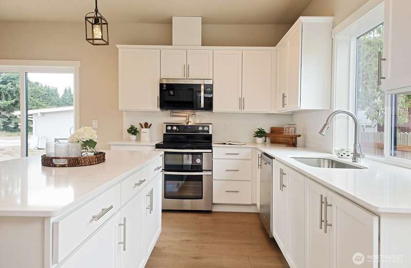 Located in the heart of Langley's beloved seaside village, this brand-new modern townhome is thoughtfully designed with natural light, refined finishes & a soft coastal palette. Quartz countertops, wide-plank flooring, stainless appliances & a warm stone fireplace elevate everyday living. This spacious layout includes 3 bedrooms, plus a loft - perfect for a home office or media space. The primary suite boasts a double sink quartz vanity & large shower, guest bath has shower/tub combination & double vanities too, plus a lovely half-bath on the main floor when entertaining. Enjoy year-round comfort with heat pump including air-conditioning. Beautiful & convenient directly adjacent to the lush green pastures of Fosek's Farm.
