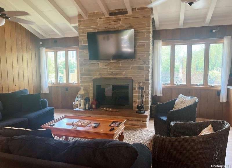 This Home is Available To Rent Weekly For $6,000 NOT a month. Fire Island is a vacation destination. Escape to your perfect beach getaway with 4 bedrooms and 2 full baths. This beautifully designed home features an open-concept kitchen and lounge area. It is equipped with modern stainless steel appliances, making it great for entertaining. This spacious interior extends to a large private back deck, where you'll find a large dining table perfect for alfresco meals, a fabulous tiki bar, and an outdoor shower.