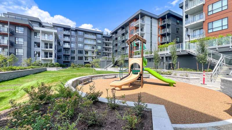 Welcome to Lupine Walk at Seymour Village - where modern living meets West Coast serenity. This beautifully designed 1-bedroom + spacious den home (large enough for a bed and complete with a closet) offers flexible living with a tranquil courtyard view. Enjoy a sleek gourmet kitchen, spa-inspired bathrooms, and contemporary finishes throughout. Step outside your door to experience top-tier amenities including a private rooftop patio with stunning North Shore views, a fully equipped fitness centre, and a stylish resident lounge. More than just a home, Lupine Walk offers a vibrant community surrounded by nature, culture and everyday convenience. 1 oversized underground parking stall, and one large storage locker included!