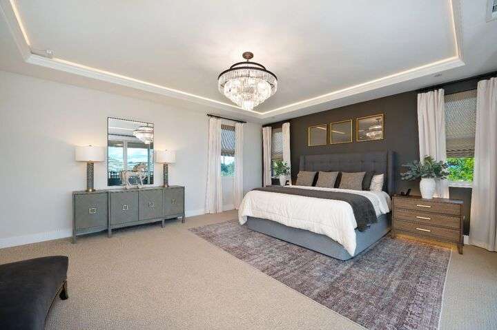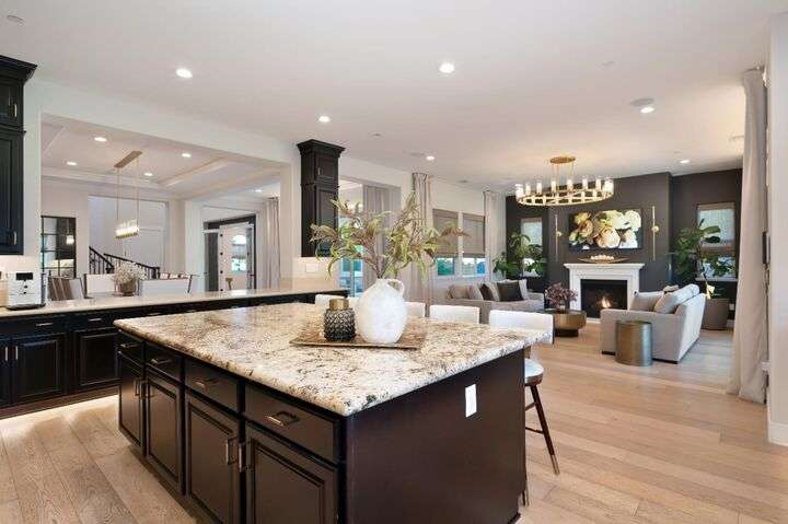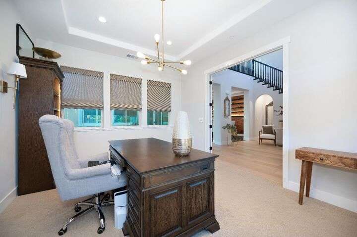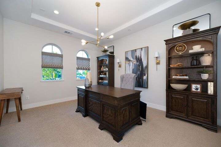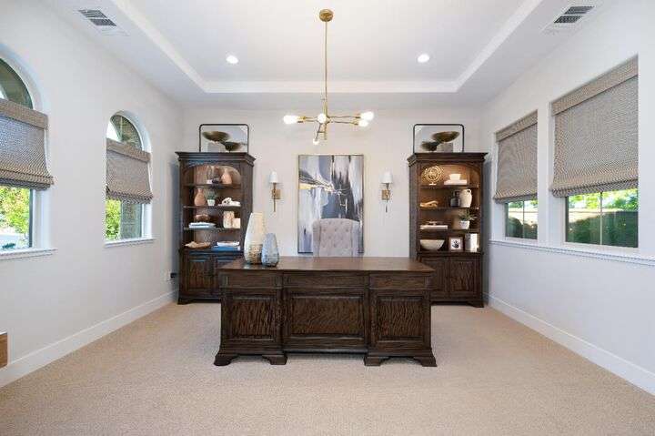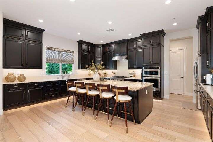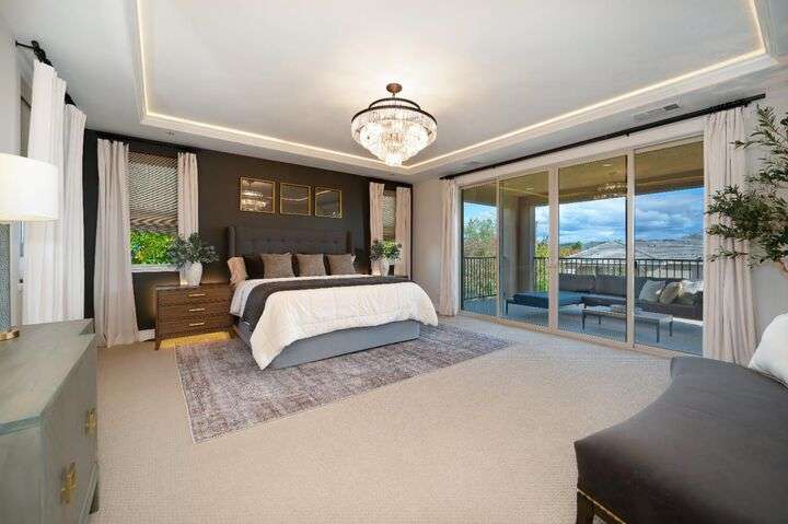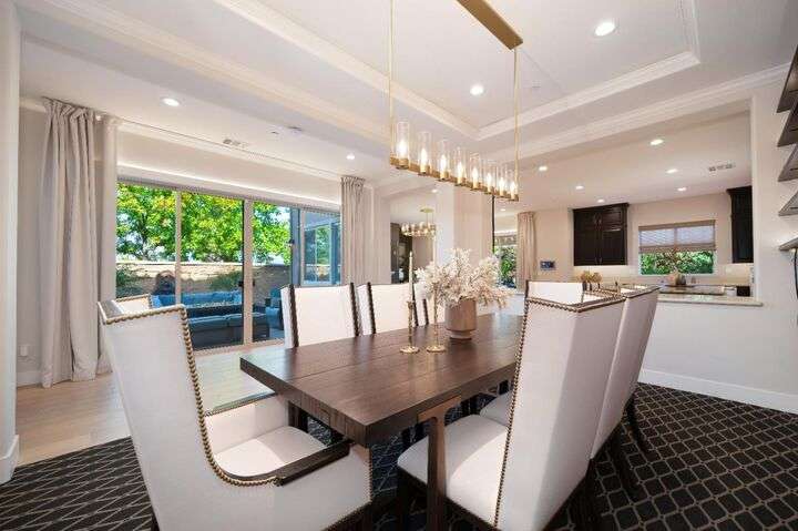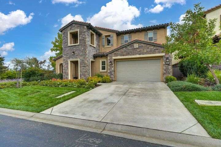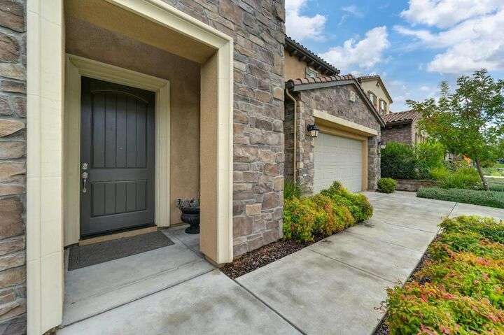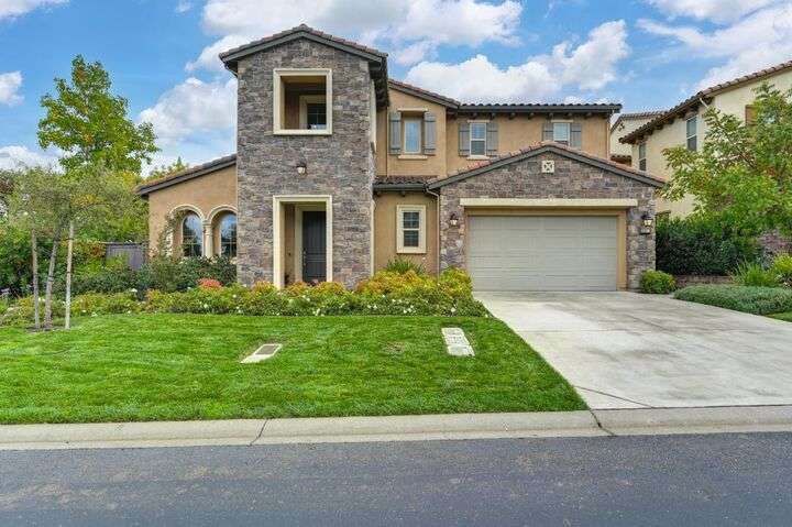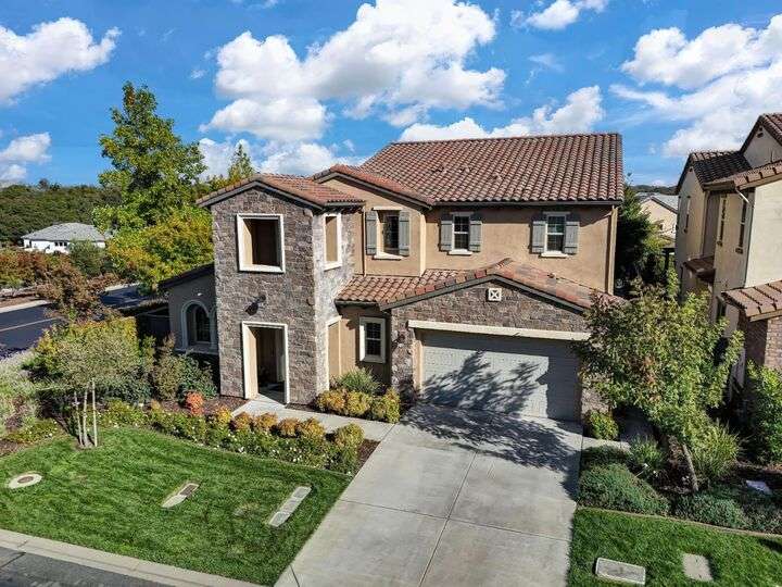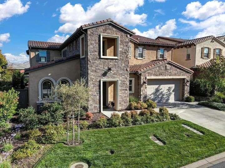 Your dream home in the prestigious 24-hour guard-gated community of Serrano Golf & Country Club awaits. This elegant residence features an open floor plan with hardwood floors, designer accents, and expansive living spaces. The main level offers a private office with French doors, guest suite with full bath, 1/2 bath, living room, pantry, formal dining room with custom lighting and a chef's kitchen which includes high-end appliances, and an oversized island perfect for cooking and entertaining. Upstairs you'll find a loft with balcony and panoramic views, two en-suite bedrooms with walk-in closets, and a luxurious primary suite with private balcony, spa-like bath, and dual walk-in closets. Enjoy indoor-outdoor living with large sliders opening to a Bocce court, private putting green, and outdoor dining areas. Additional features include a mudroom, 3-car tandem garage with epoxy flooring, and house is pre-plumbed for solar. Close proximity to parks, trails, Folsom Lake, and top-rated schools. Serrano Country Club offers world-class amenities: an 18-hole championship golf course, multiple dining venues, fitness center, junior Olympic pool, wading pool, four lighted tennis courts, and a spa.