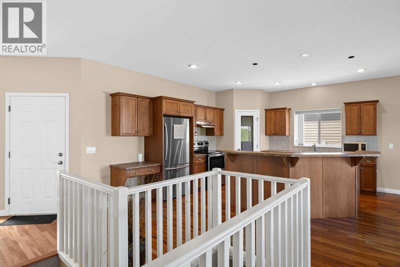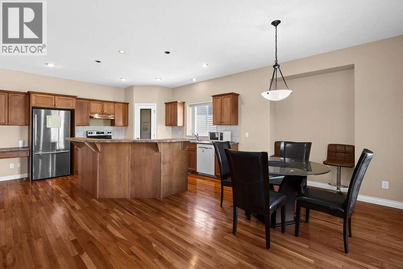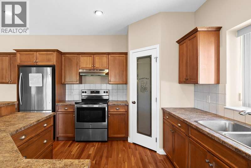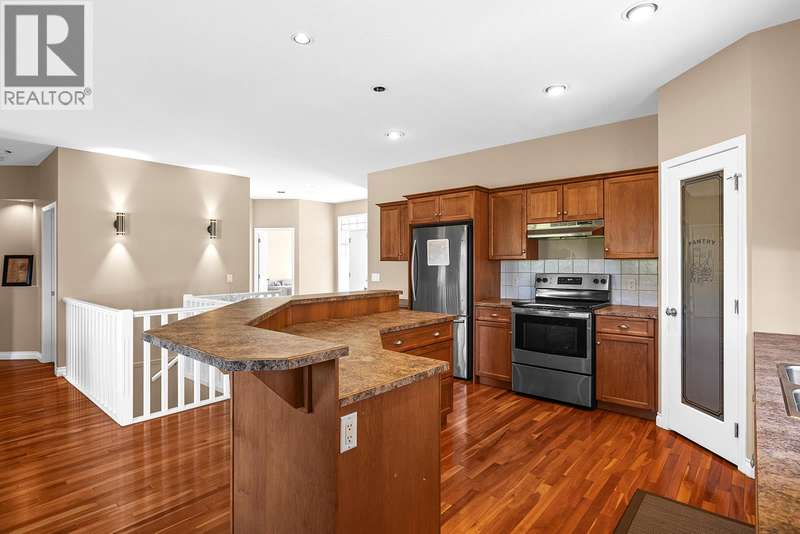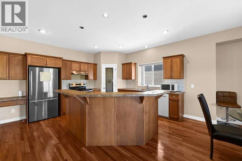 Welcome to this spacious walkout rancher with a basement suite in the heart of Rutland North, one of Kelowna’s most family-friendly neighbourhoods. Upstairs, you'll find a thoughtfully designed open-concept living space featuring a massive kitchen with shaker-style cabinets, a walk-in pantry, sit-up bar island, beautiful hardwood floors, and 9ft ceilings. Cozy up in the living room beside the gas fireplace, or step outside onto the large, covered deck, perfect for year-round barbecuing. The primary bedroom is large and features a 4-piece ensuite and walk-in closet. Downstairs, the 2-bed suite with a separate entrance is ideal for extended family, or as a mortgage helper, offering plenty of natural light throughout. The fully fenced backyard is private with mature cedar trees and sprawling green space for kids, pets, or gardening. The front yard is landscaped with additional greenspace. Bonus features include an oversized garage with 12ft ceilings, and built-in vacuum. This home is walking distance to all levels of schools, and offers quick access to nearby parks, playgrounds, sports fields, the YMCA, and scenic wetlands, as well as shopping, dining, and transit options. This welcoming and well-established neighbourhood is perfect for families looking for both convenience and community. Whether you're upsizing, investing, or looking for a multi-generational layout, this home checks all the boxes! (id:7434)