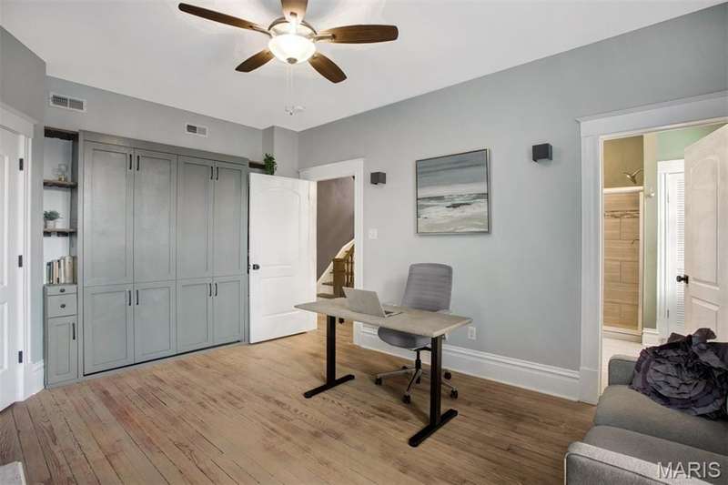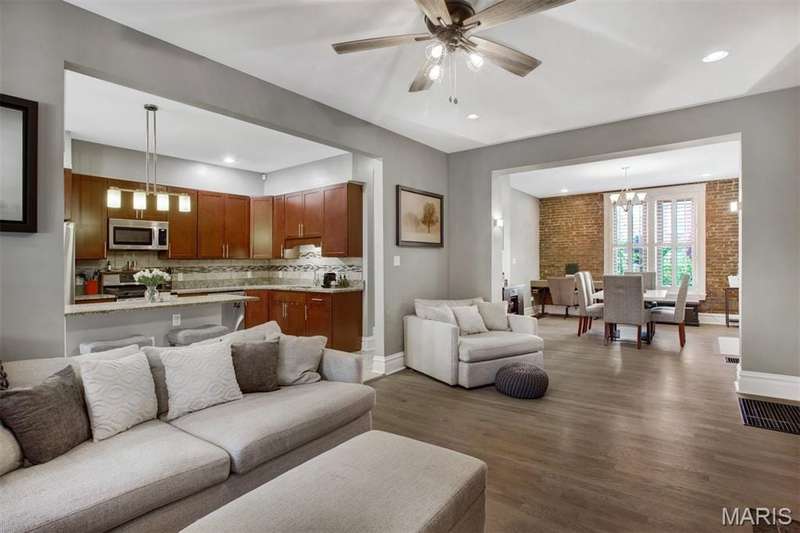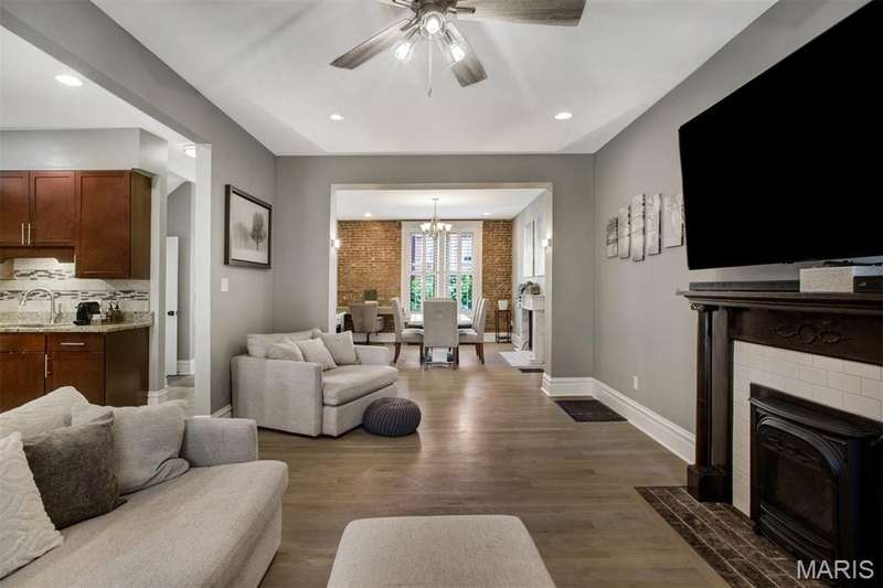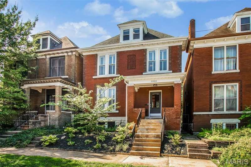 SIGNIFICANT PRICE DROP! Beautifully renovated home in the Historic Shaw Neighborhood. Built in 1902 in anticipation of the 1904 World's Fair, this home has been extensively renovated in recent history. New landscaping in the front yard. The 1st floor has an amazing open floor plan, with two exposed brick walls, beautiful shutters for privacy and new white oak wood floors in 2020. Gas fireplace in the living room. The kitchen is fully equipped with with stainless steel appliances, granite counter tops and tons of cabinets. The mill work in the home includes 8 inch baseboards throughout. And you will find tons of storage on every floor. Second floor has two en suite bedrooms with walk-in closets; one with access to an expansive 2nd floor balcony and one with a Murphy Bed, making it a wonderful space for an office AND a guest room. Laundry is conveniently located on the 2nd floor. Two more spacious bedrooms and a full bath on the 3rd floor. The home has Dual-Zoned HVAC and water heaters. The backyard has multilevel decking, walkout basement access, 6 foot fence and a detached 2 car garage. This home really does have everything to live a great urban life. It's just one block from Tower Grove Park and all it has to offer. You will not be disappointed.