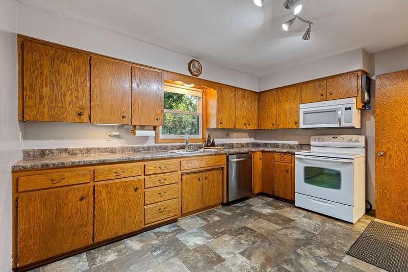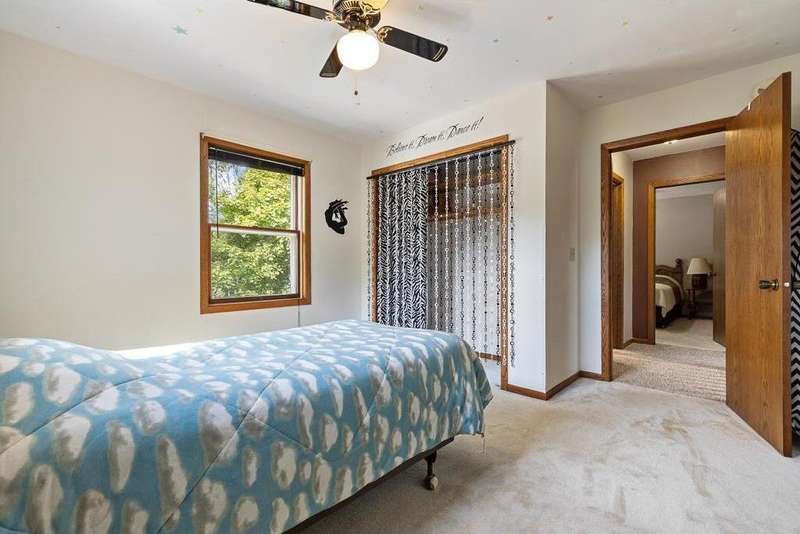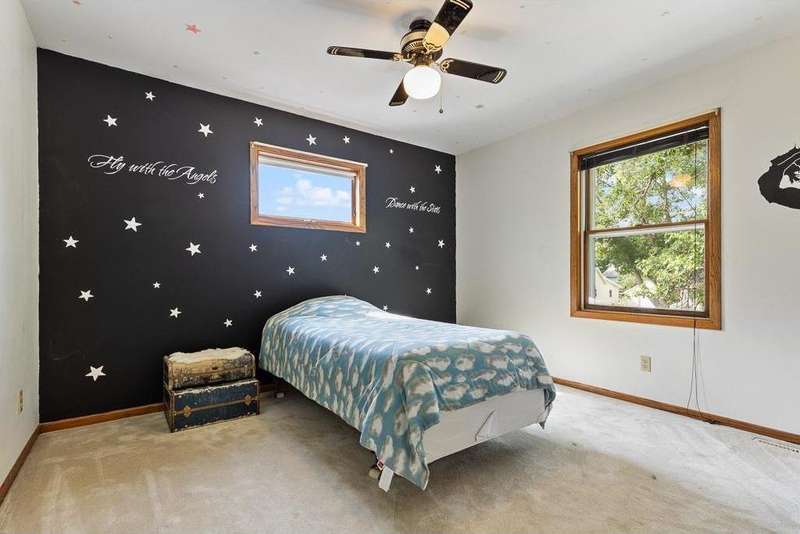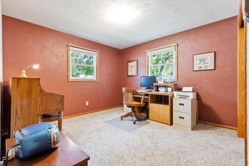 Offering more than 3,000 sq. ft. of living space and immaculately maintained, this 7-bedroom, 3-bath home is a rare find at an affordable price. Sitting on a spacious corner lot, the property features a partial privacy fence, a concrete driveway w/an additional parking slab, and an attached 2-stall garage with extra storage. The main floor features a bright living room with a 3-panel glass patio door, a formal dining room, and an updated kitchen with new countertops and solid wood cabinets. A primary suite with a large walk-in closet, a convenient laundry room, a second bedroom, and a full bath complete the main level. The upper level—added in 2004—offers four more bedrooms and a full bath. The finished lower level adds a large family room with recessed lighting, the seventh bedroom, an updated ¾ bath, and a generous mechanical/storage room with a second set of laundry hookups. Great features include an updated water heater, owned water softener, owned reverse osmosis system, kitchen and bath improvements, updated shingles (2013), several updated windows (2017), newer exterior doors, and other mechanical upgrades. This home combines space, functionality, and long-term value in one well-cared-for package.