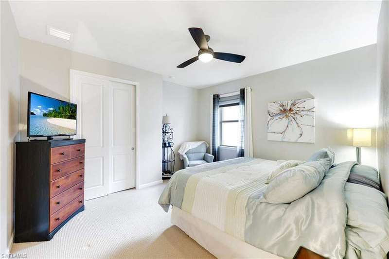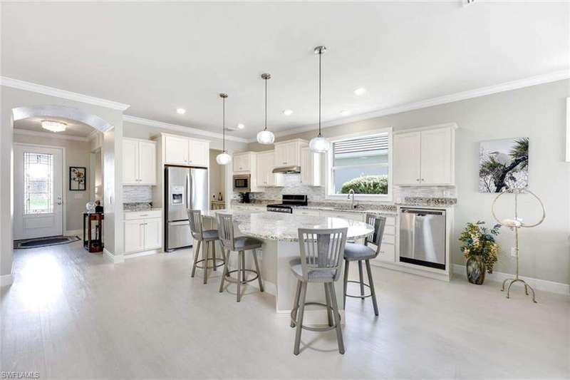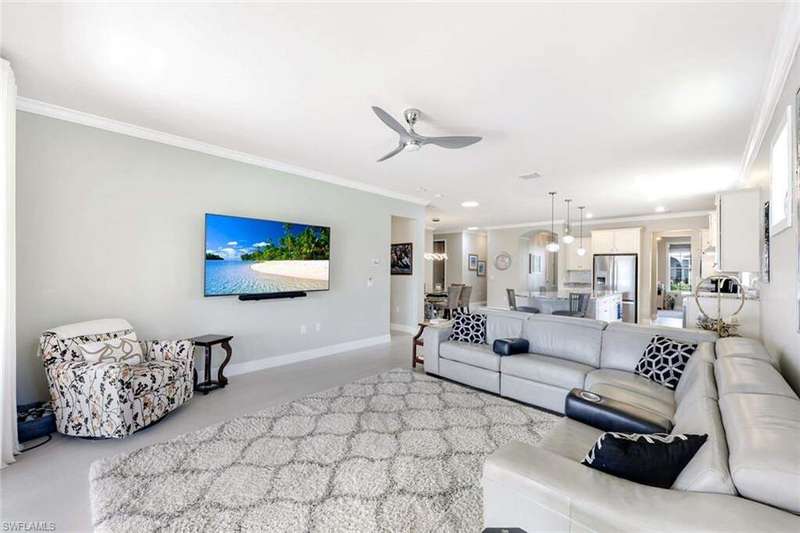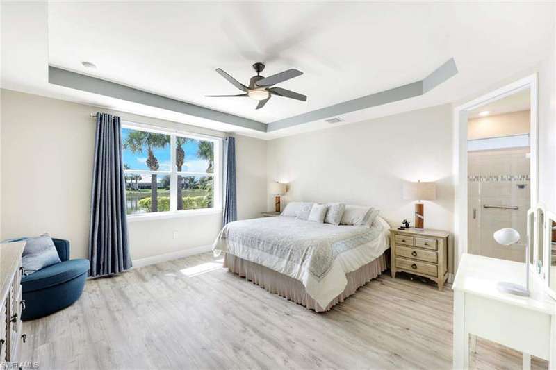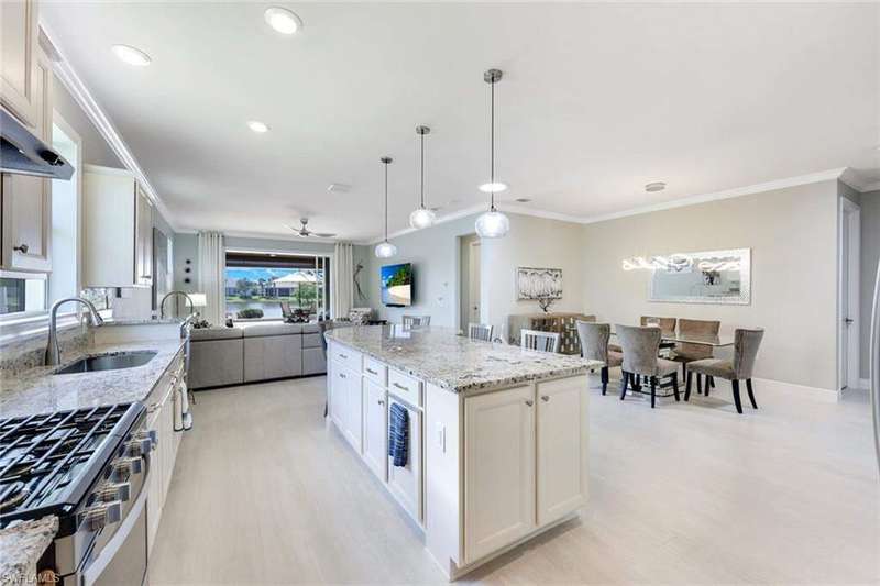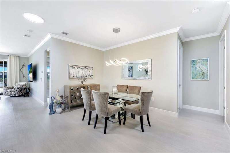 Nestled in the picturesque city of Estero, this exquisite lakefront property offers a blend of luxury and functionality, perfect for those seeking a vibrant community lifestyle. The home is located in a prestigious gated community, where residents enjoy top-tier amenities, including a state-of-the-art fitness center, pickleball and tennis courts, bocce, a rejuvenating spa, a community pool, dog park, and a charming library. Designed for entertaining and relaxation this 2 bedroom plus Den offers a 20x20 extended lanai showcasing breathtaking views of the serene lake. Culinary enthusiasts will appreciate the gourmet kitchen, equipped with stainless steel appliances, a conveniently raised dishwasher, instant hot water, a gas range, and elegant 42' cabinetry. Recent renovations have enhanced the home's functionality, adding a separate 10x12 workroom area in the garage, a pull-down ladder to access attic storage, and crown molding throughout. The property boasts custom landscaping serviced by a drip system, ensuring year-round beauty, and electric storm screens on the lanai and accordion shutter on all windows offer added protection and ***NO CDD. *** For ultimate convenience, a generator is included, ensuring peace of mind during Florida's stormy seasons. Ideally positioned close to pristine beaches, the property is just minutes from a variety of dining and shopping destinations, including Miromar Outlets, Hertz Arena, Gulf Coast Center, and Coconut Point Shopping areas, with the SWFL International Airport also within easy reach. This home represents combined luxury, comfort, and unrivaled convenience in a breathtaking lakeside setting.
