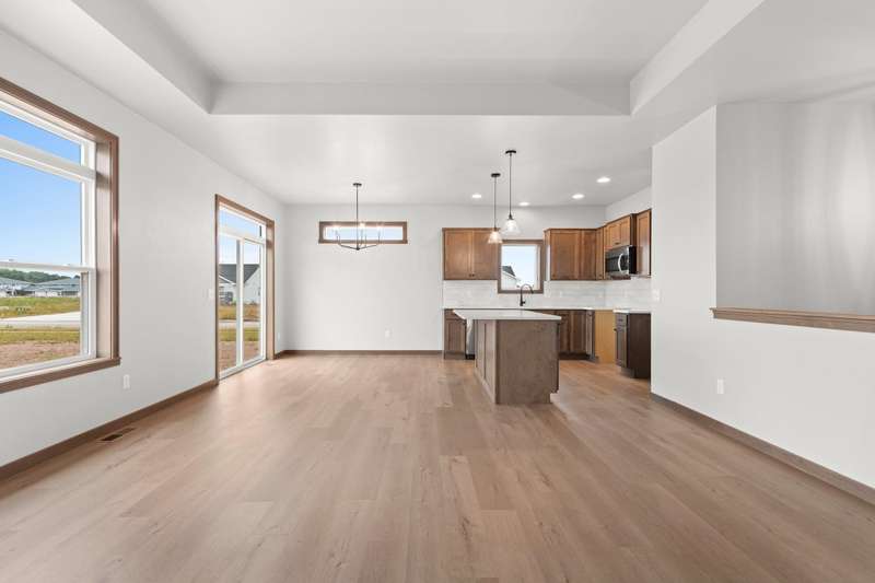 Another high-quality new construction by Van's Construction of Appleton. This is the Ashton model and has never been built in the De Pere area before! This home features 3 bedrooms, 2 baths, spacious living room that opens to the kitchen/dinette that offers maple cabinets, quartz countertops, tile backsplash and center island. The primary suite has a tray ceiling, large walk-in closet, private bath with double sink vanity. 1st floor laundry, custom trim package and 3 panel doors. Egress lower level. Brick/Vinyl exterior. 3 car garage.
