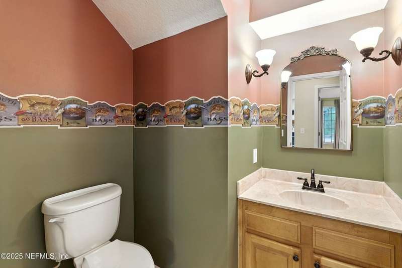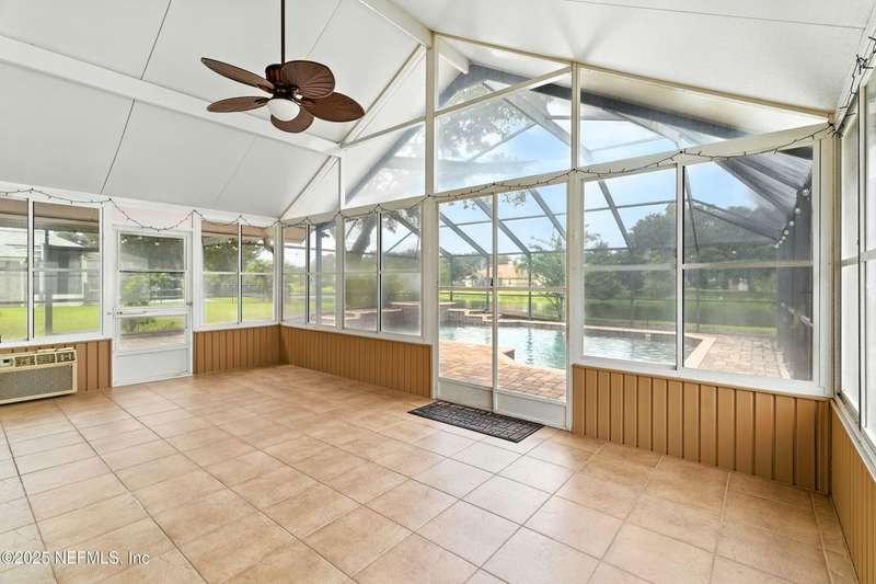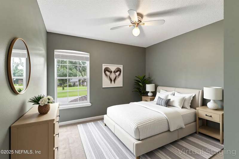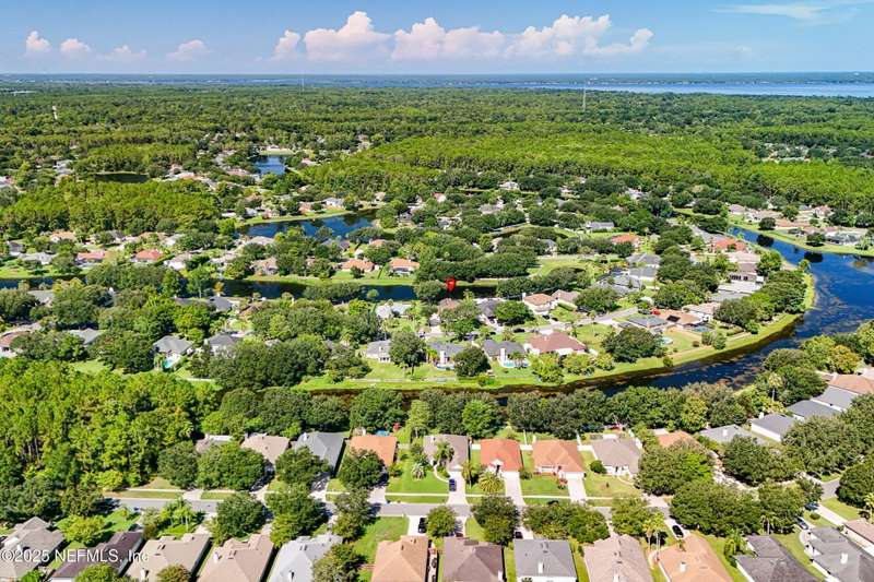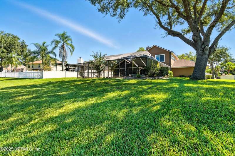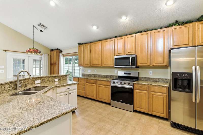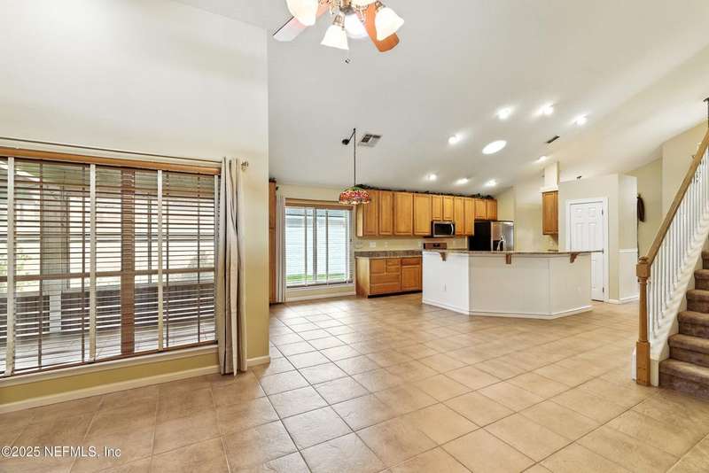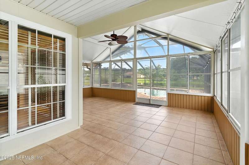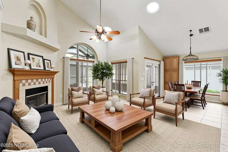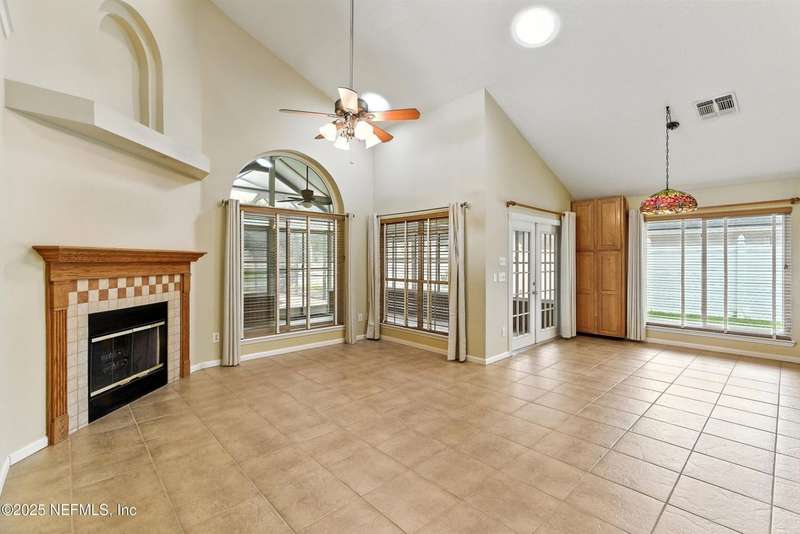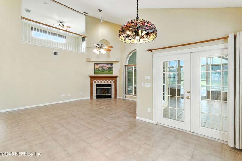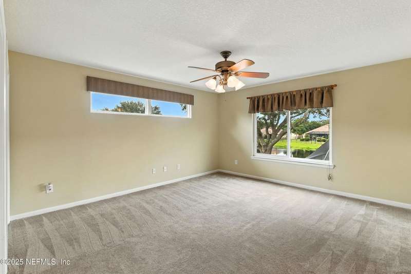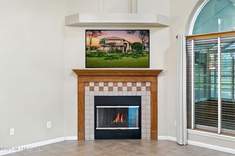 Welcome to this beautifully updated & maintained 4 bed, 2.5 bath pool home in the desirable Village Green community of St. Johns. Set on a serene lakefront lot, this two-story home features a screened, solar-heated pool with spa, paver lanai, and spacious backyard perfect for entertaining. Recent updates include a new roof (2024), exterior paint (2024), skylights (2025), water heater (2023), pool automation system, and solar panels for year-round enjoyment. Inside, you'll find soaring ceilings, a bright family room, and an beautifully designed kitchen with granite counters, stainless appliances, and a new Whirlpool gas range (2025). The first-floor primary suite offers a newly tiled shower, dual vanities, garden tub, and walk-in closets. With a huge bonus room upstairs for the secondary bedrooms there are tons of possibilities! Additional features include new windows in many rooms, smart thermostat, Rainbird irrigation system, and an oversized garage. Conveniently located near A-rated schools, shopping, and dining, this move-in ready home blends comfort and modern upgrades.