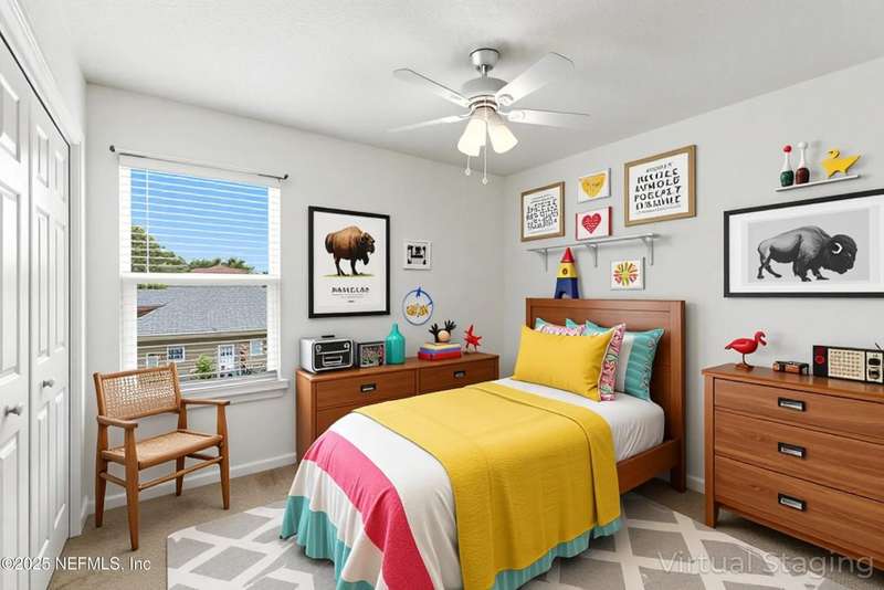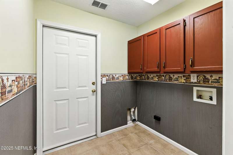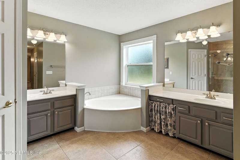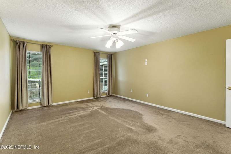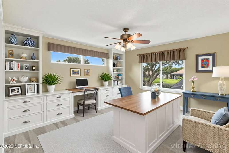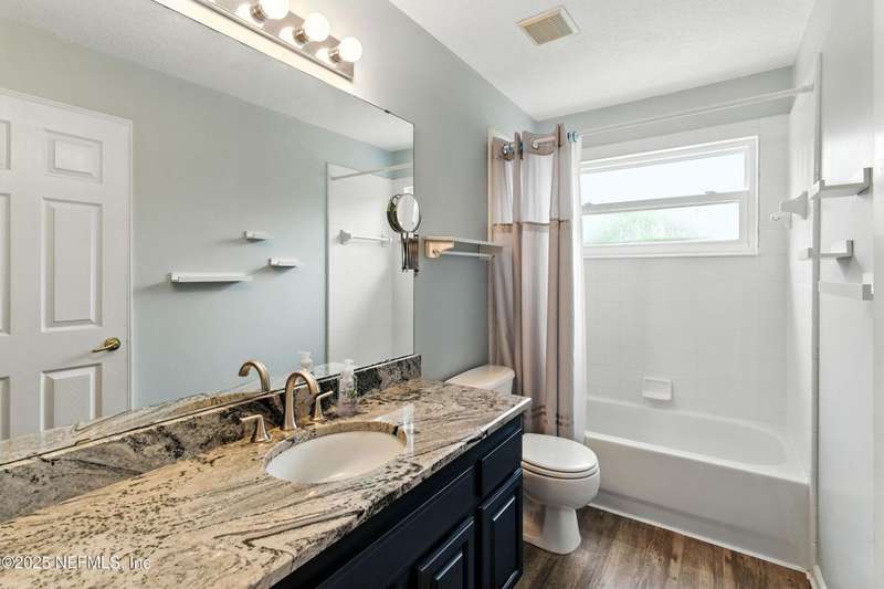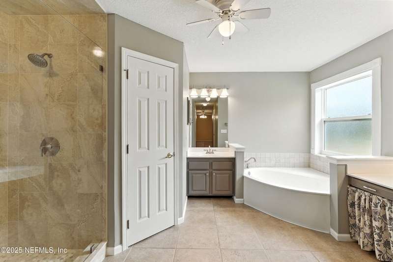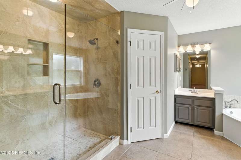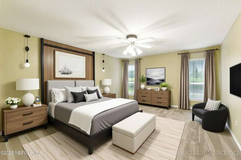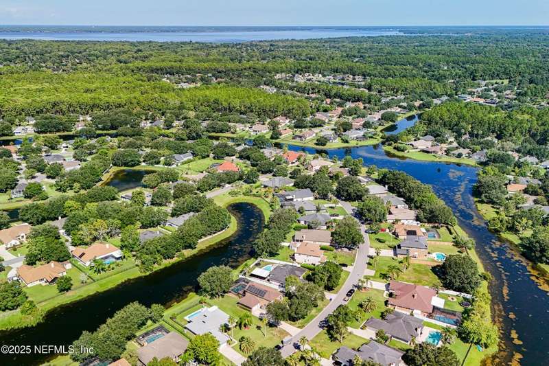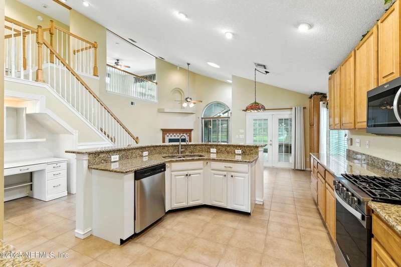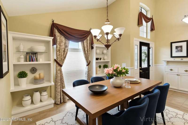 Welcome to this beautifully updated & maintained 4 bed, 2.5 bath pool home in the desirable Village Green community of St. Johns. Set on a serene lakefront lot, this two-story home features a screened, solar-heated pool with spa, paver lanai, and spacious backyard perfect for entertaining. Recent updates include a new roof (2024), exterior paint (2024), skylights (2025), water heater (2023), pool automation system, and solar panels for year-round enjoyment. Inside, you'll find soaring ceilings, a bright family room, and an beautifully designed kitchen with granite counters, stainless appliances, and a new Whirlpool gas range (2025). The first-floor primary suite offers a newly tiled shower, dual vanities, garden tub, and walk-in closets. With a huge bonus room upstairs for the secondary bedrooms there are tons of possibilities! Additional features include new windows in many rooms, smart thermostat, Rainbird irrigation system, and an oversized garage. Conveniently located near A-rated schools, shopping, and dining, this move-in ready home blends comfort and modern upgrades.