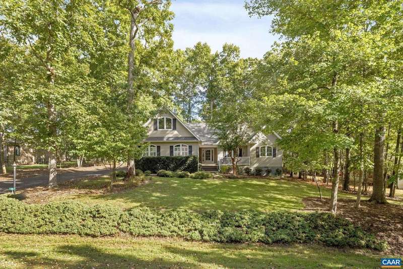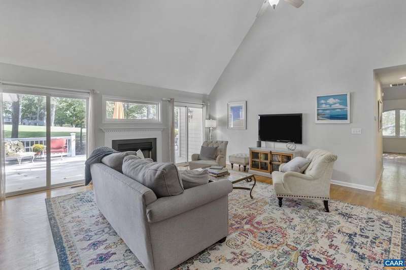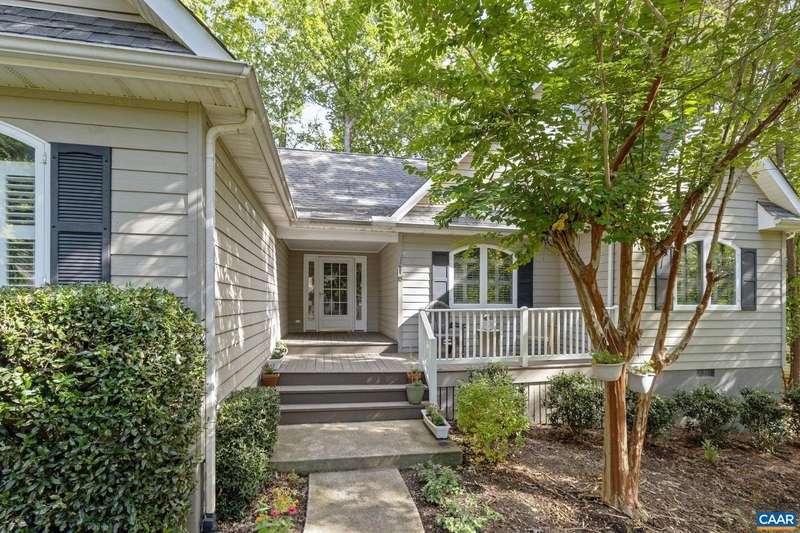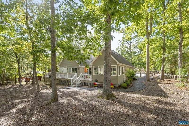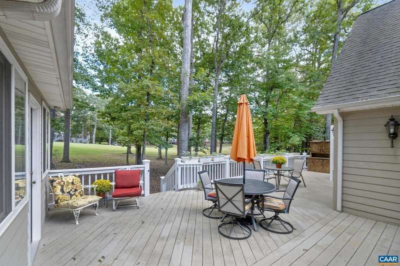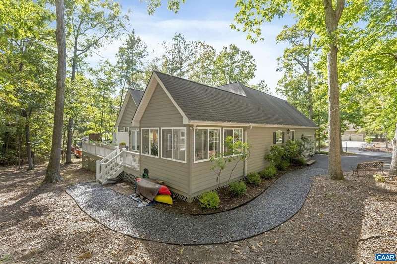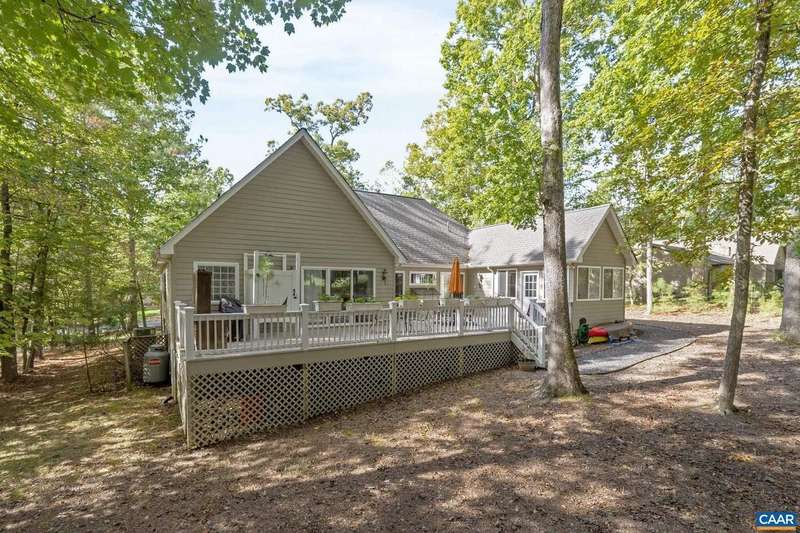 Enjoy the ease of one-level living in this inviting golf-front home on Lake Monticello?s 7th fairway. Unlike many golf course homes, this property offers both year-round fairway views and a tranquil pond, while still maintaining a deep buffer for privacy and a usable backyard. Vaulted ceilings and a bright foyer welcome you inside, where natural light fills the home and gleaming hardwood floors flow throughout. The living room features a cozy gas fireplace framed by sliding glass doors leading to the spacious deck?perfect for entertaining or unwinding with a view. The primary suite also opens to the deck and includes a private outdoor shower. With three spacious bedrooms plus a finished loft that works beautifully as an office, craft space, or 4th bedroom, this home is designed for flexibility. Additional highlights include a 3-season sunroom, paved driveway, and nicely landscaped lot on a quiet street just � mile from the Slice Gate. Outdoor living shines here, and Lake Monticello?s amenities?five beaches, boating, fishing, marina, tennis & pickleball, pool, clubhouse, and championship golf course?are all at your fingertips. A rare find combining privacy, views, and resort-style living just minutes to Charlottesville!,Formica Counter,White Cabinets,Wood Cabinets,Fireplace in Living Room