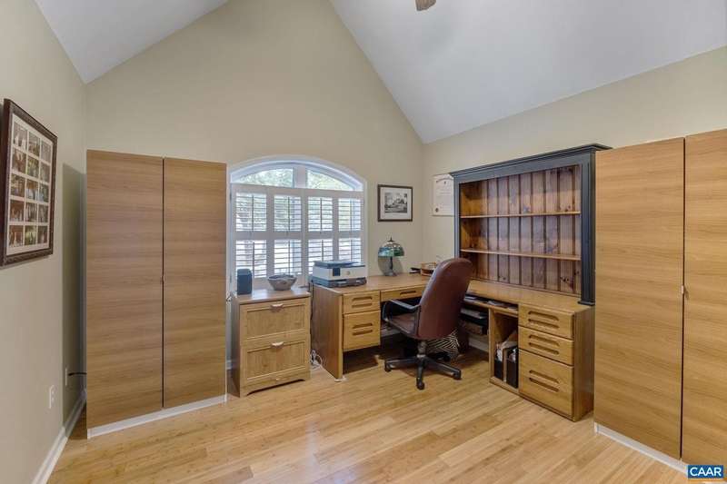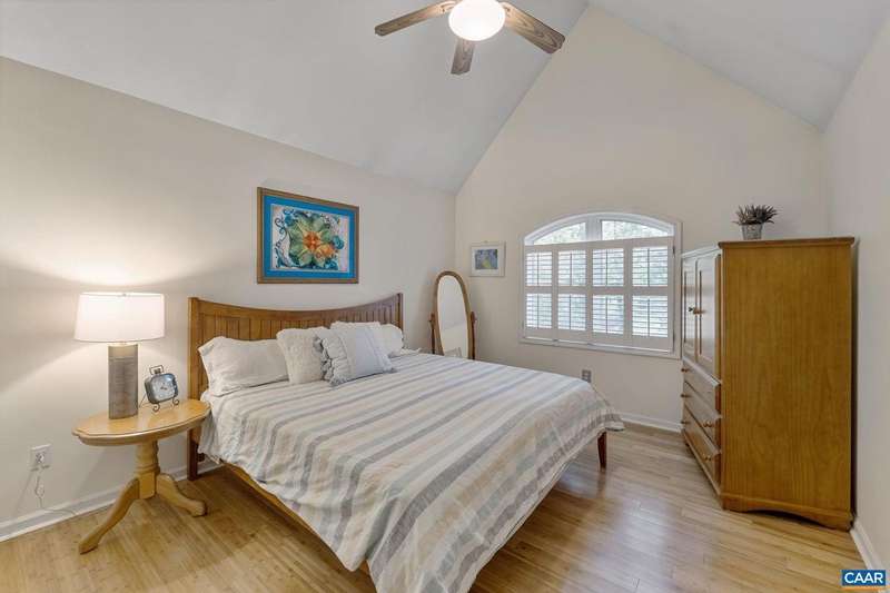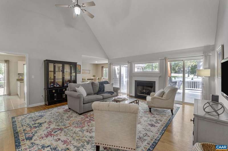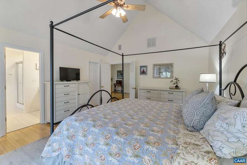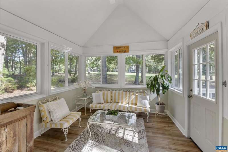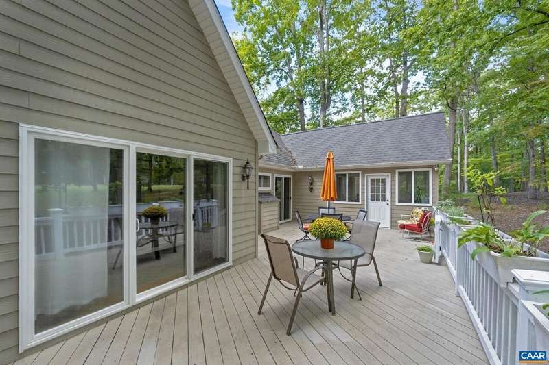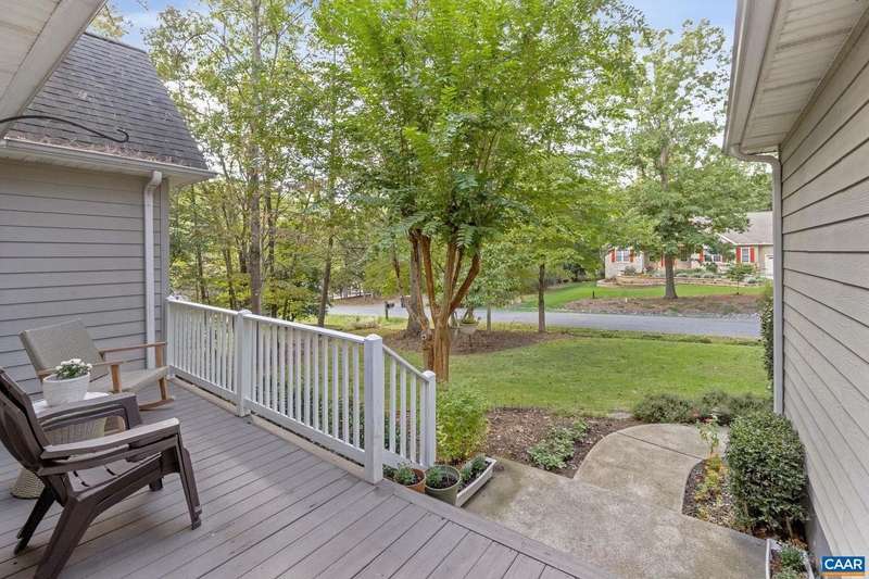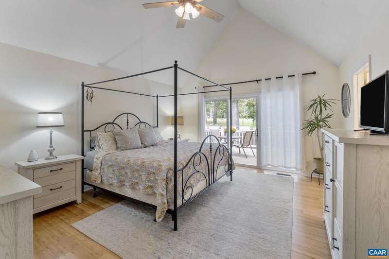 Enjoy the ease of one-level living in this inviting golf-front home on Lake Monticello?s 7th fairway. Unlike many golf course homes, this property offers both year-round fairway views and a tranquil pond, while still maintaining a deep buffer for privacy and a usable backyard. Vaulted ceilings and a bright foyer welcome you inside, where natural light fills the home and gleaming hardwood floors flow throughout. The living room features a cozy gas fireplace framed by sliding glass doors leading to the spacious deck?perfect for entertaining or unwinding with a view. The primary suite also opens to the deck and includes a private outdoor shower. With three spacious bedrooms plus a finished loft that works beautifully as an office, craft space, or 4th bedroom, this home is designed for flexibility. Additional highlights include a 3-season sunroom, paved driveway, and nicely landscaped lot on a quiet street just � mile from the Slice Gate. Outdoor living shines here, and Lake Monticello?s amenities?five beaches, boating, fishing, marina, tennis & pickleball, pool, clubhouse, and championship golf course?are all at your fingertips. A rare find combining privacy, views, and resort-style living just minutes to Charlottesville!,Formica Counter,White Cabinets,Wood Cabinets,Fireplace in Living Room