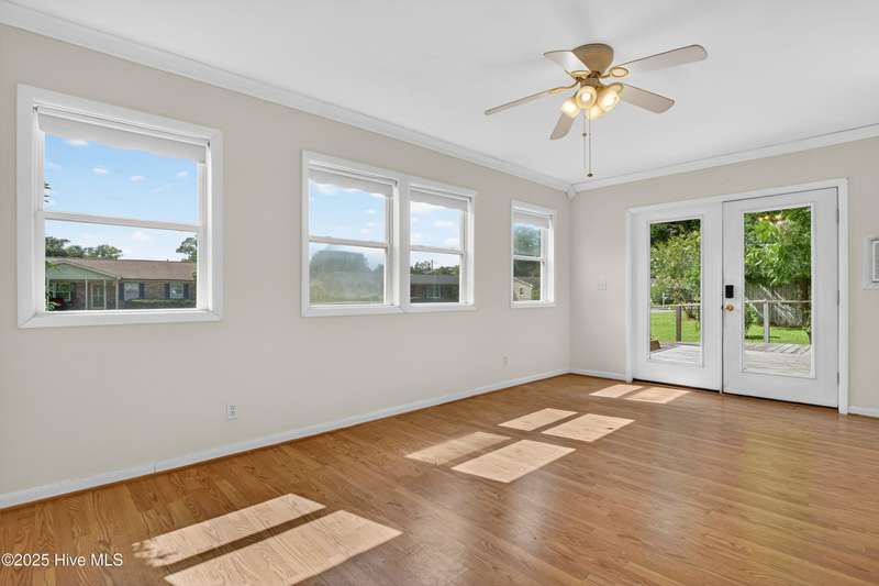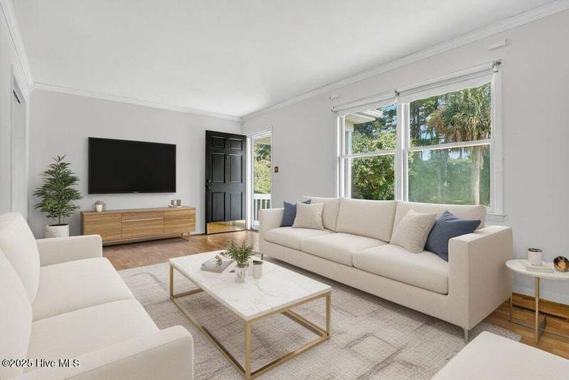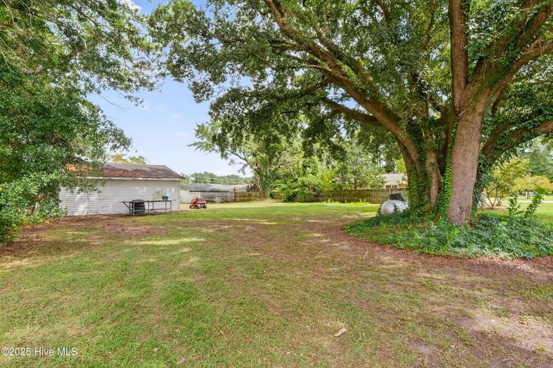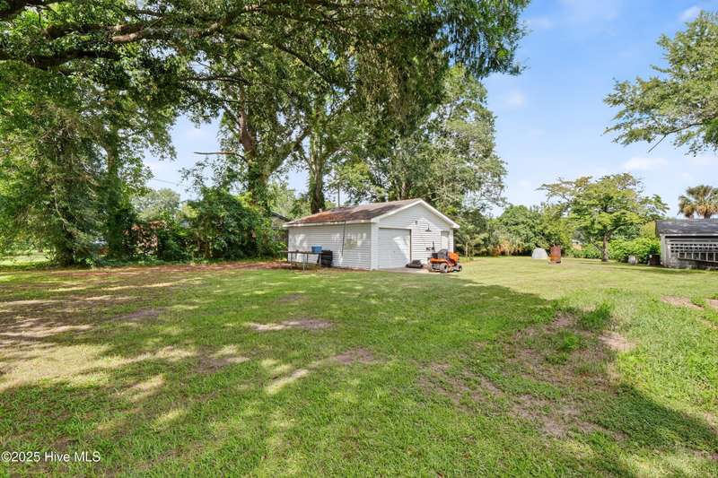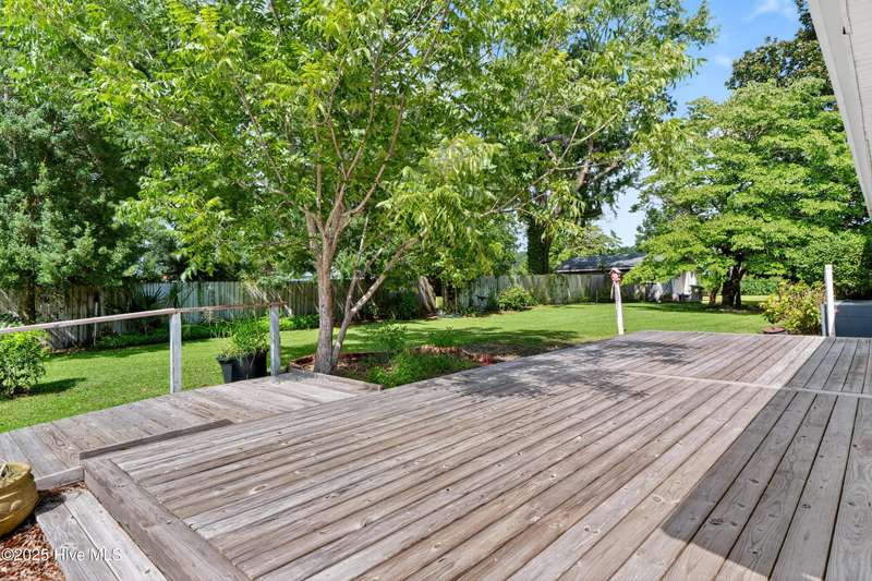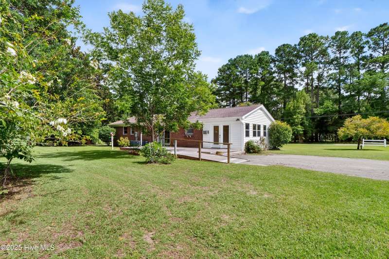 Tucked away on a quiet street in Castle Hayne, this well maintained single-level brick ranch offers 3 bedrooms and 2 bathrooms on a spacious 0.5-acre corner lot surrounded by mature trees. Inside, you'll find two separate living areas, perfect for a home office, playroom, or flex space to suit your needs. Step outside to a large, oversized deck that overlooks the expansive backyard, creating an ideal setting for entertaining, relaxing, or enjoying the peaceful surroundings. With no HOA restrictions and a quiet setting, the property offers both freedom and privacy. A 480 sq ft detached garage adds even more versatility with space for storage, hobbies, or a workshop. Located just minutes from the Castle Hayne boat ramp--with direct access to the Cape Fear River--this home combines everyday comfort with outdoor convenience in a prime location.
