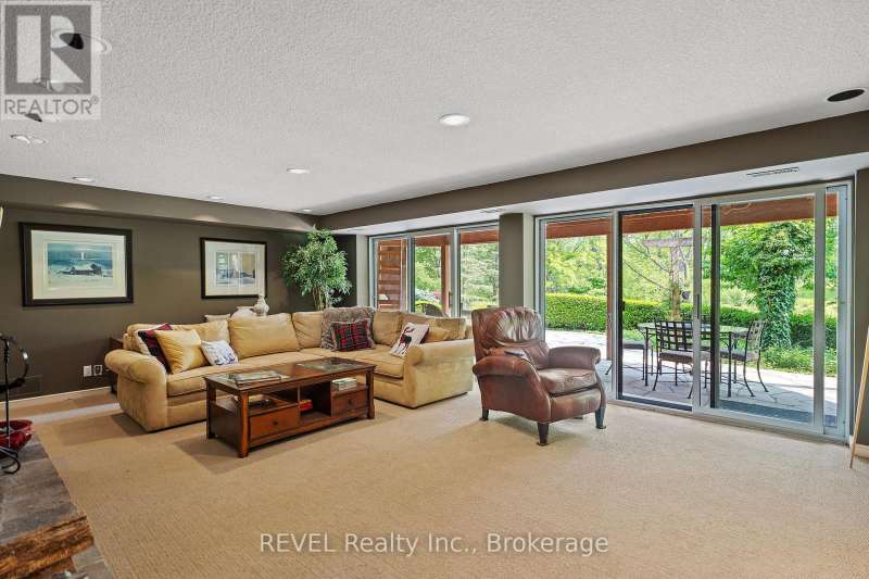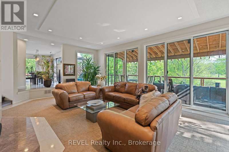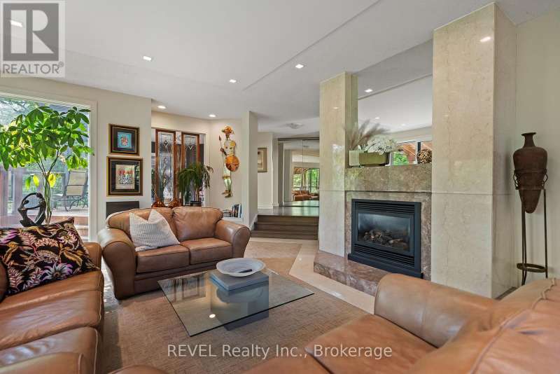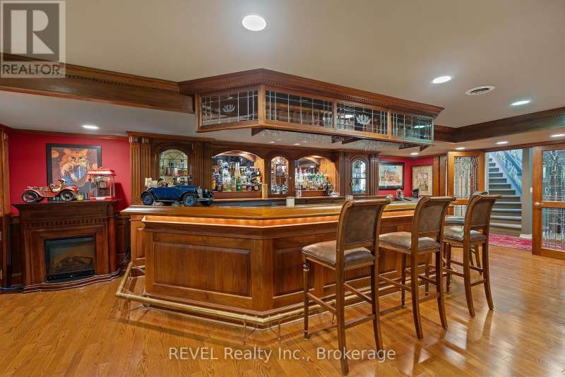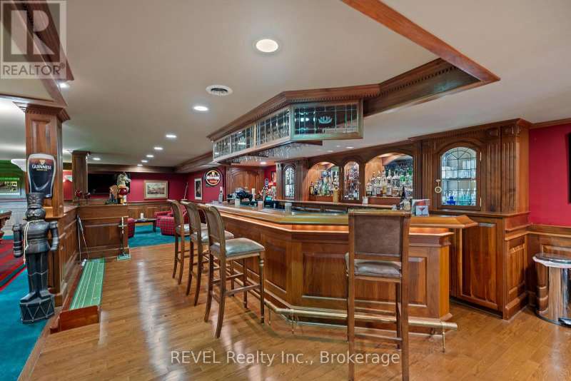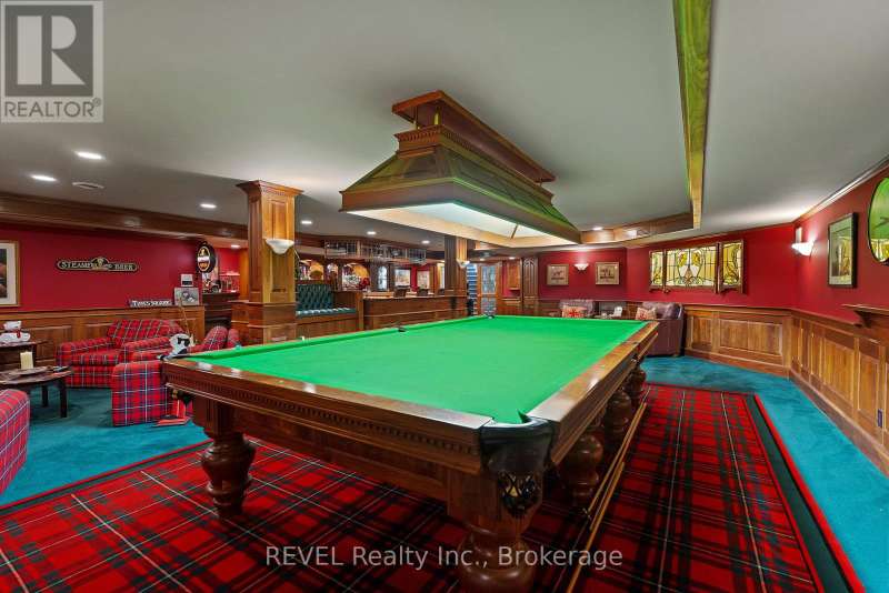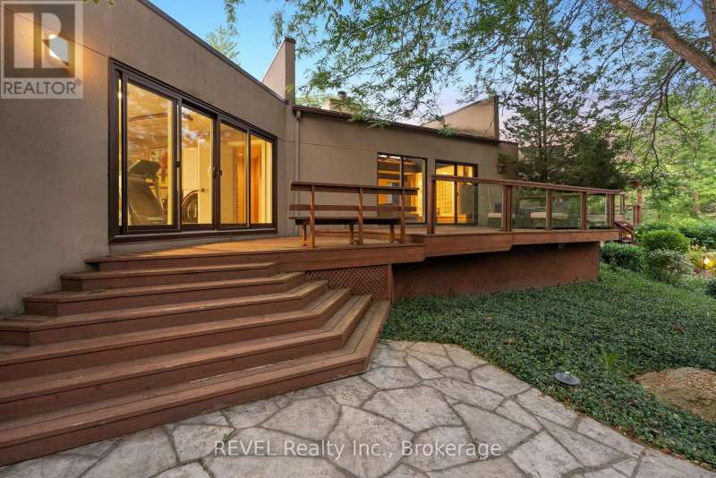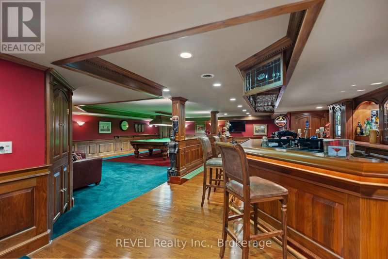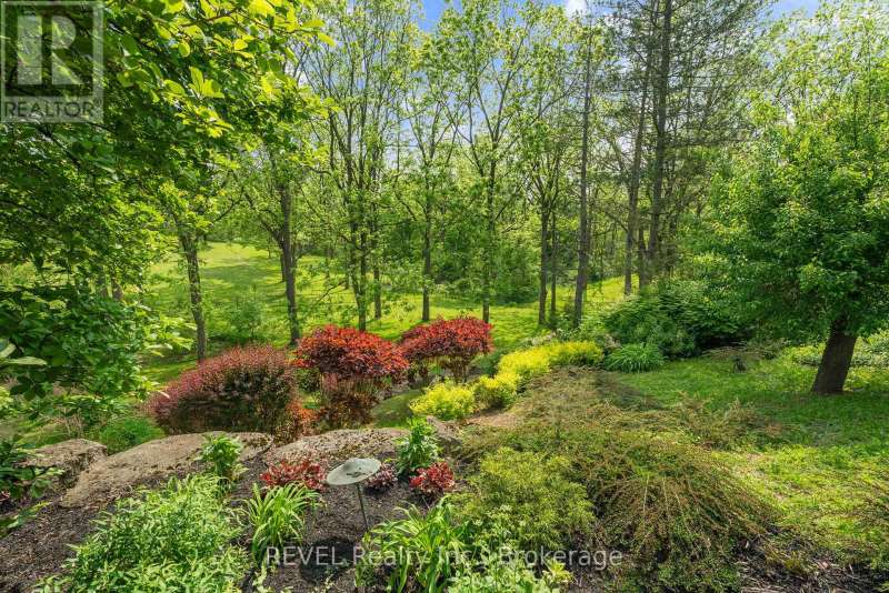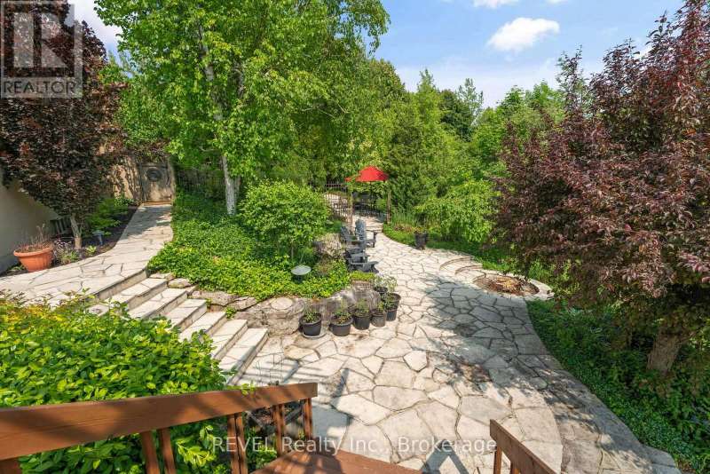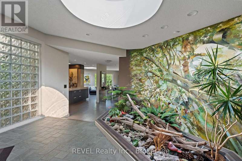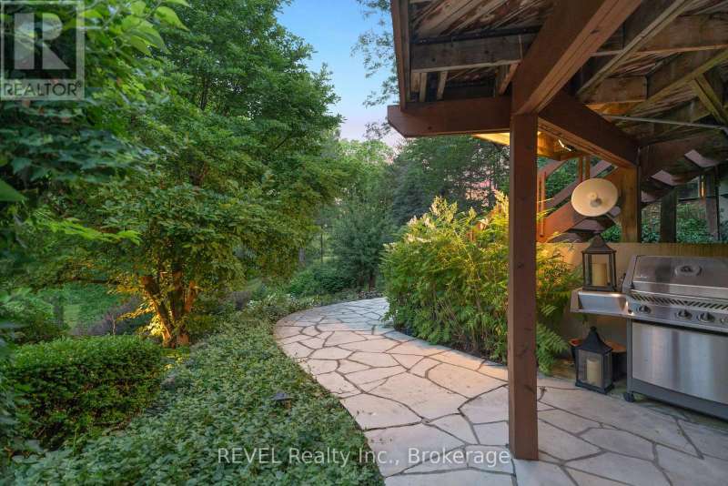 Iconic luxury living locally renowned as 'The Driftwood' emerges from resplendent landscaped acreage on exclusive Decew road in St. Catharines, one of the most sought after and elite areas in the Niagara region. Situated in the midst of legendary Carolinian trees in the most tranquil of pastoral settings, this architecturally envisioned L-shaped bungalow offers escarpment views from every angle while hosting a fluid, sprawling floor plan seamlessly exiting to a virtual paradise of manicured gardens. Featuring separate primary bedroom with elevated ensuite privileges and appending exercise and office rooms, all with relevant views of the natural flora outside, this unique listing also offers a modern open kitchen anchored by a chef's choice of high end Miele appliances. Perfect for family gatherings and designed to accommodate any entertainment function, descend to a full walkout lower level that hosts, without exaggeration, a fully imagined Scottish pub with customized pool room and furniture, oak bar, and stain glassed accents to ideally characterize this exceptional living space. Venturing out from the walkout lower level from a recreation room, which also features a separate bathroom and sauna incorporating the possibility of in-law capability or nanny suite privileges, walk the extensive stone pathways throughout the 10 acre property, pass the gated spa designed pool area, before eventually strolling upon a fully updated and renovated separate, 1800sq.ft., guest home with four car garage. Buying two luxury homes for the price of one set on an idyllic landscape in the heart of the Niagara region and wine country, with exceptional proximity to golf courses, Brock University, wineries, new hospital, shopping centres, restaurants, the Meridian Centre, Ridley Private School and the downtown core of St. Catharines, only magnifies the majesty of such a setting and location. (id:7434)