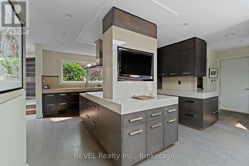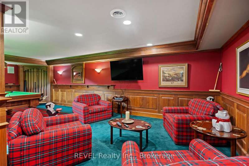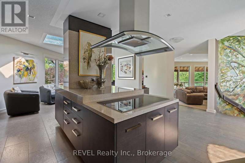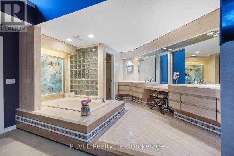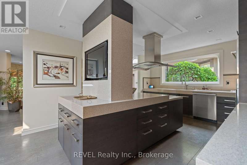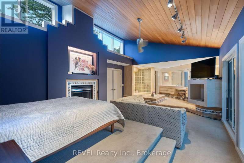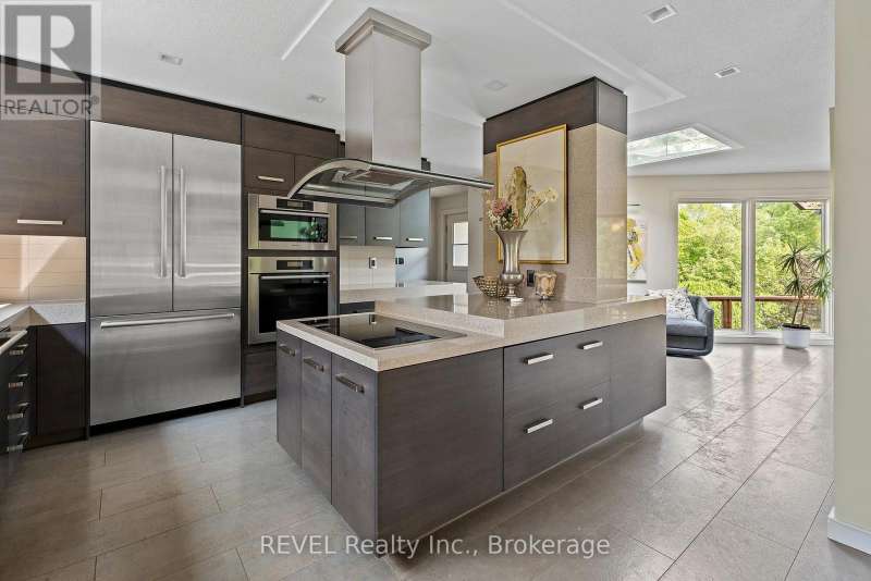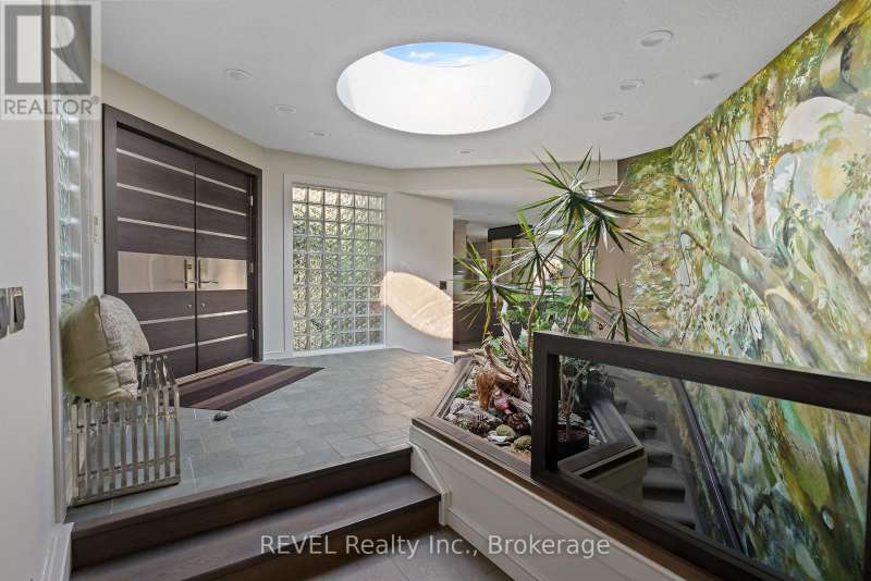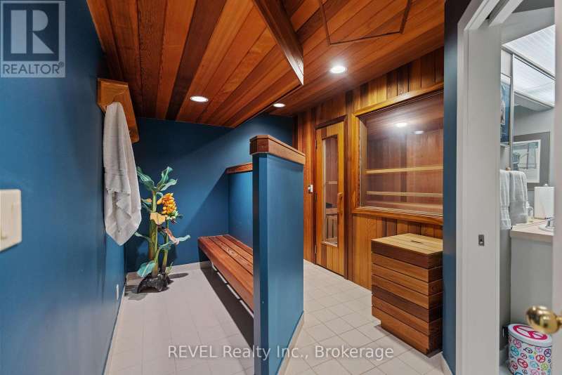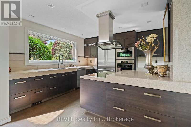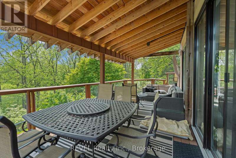 Iconic luxury living locally renowned as 'The Driftwood' emerges from resplendent landscaped acreage on exclusive Decew road in St. Catharines, one of the most sought after and elite areas in the Niagara region. Situated in the midst of legendary Carolinian trees in the most tranquil of pastoral settings, this architecturally envisioned L-shaped bungalow offers escarpment views from every angle while hosting a fluid, sprawling floor plan seamlessly exiting to a virtual paradise of manicured gardens. Featuring separate primary bedroom with elevated ensuite privileges and appending exercise and office rooms, all with relevant views of the natural flora outside, this unique listing also offers a modern open kitchen anchored by a chef's choice of high end Miele appliances. Perfect for family gatherings and designed to accommodate any entertainment function, descend to a full walkout lower level that hosts, without exaggeration, a fully imagined Scottish pub with customized pool room and furniture, oak bar, and stain glassed accents to ideally characterize this exceptional living space. Venturing out from the walkout lower level from a recreation room, which also features a separate bathroom and sauna incorporating the possibility of in-law capability or nanny suite privileges, walk the extensive stone pathways throughout the 10 acre property, pass the gated spa designed pool area, before eventually strolling upon a fully updated and renovated separate, 1800sq.ft., guest home with four car garage. Buying two luxury homes for the price of one set on an idyllic landscape in the heart of the Niagara region and wine country, with exceptional proximity to golf courses, Brock University, wineries, new hospital, shopping centres, restaurants, the Meridian Centre, Ridley Private School and the downtown core of St. Catharines, only magnifies the majesty of such a setting and location. (id:7434)