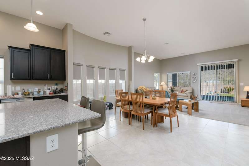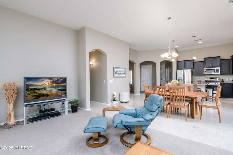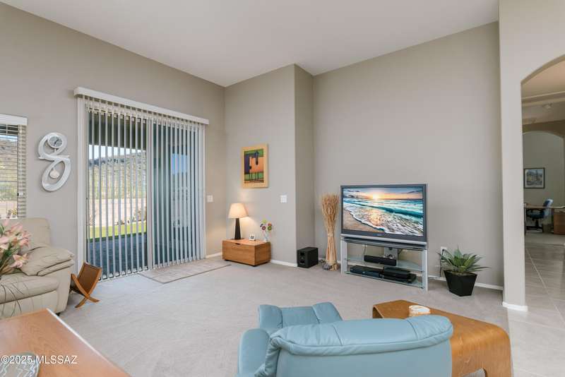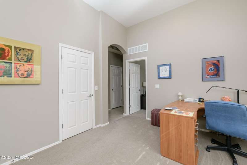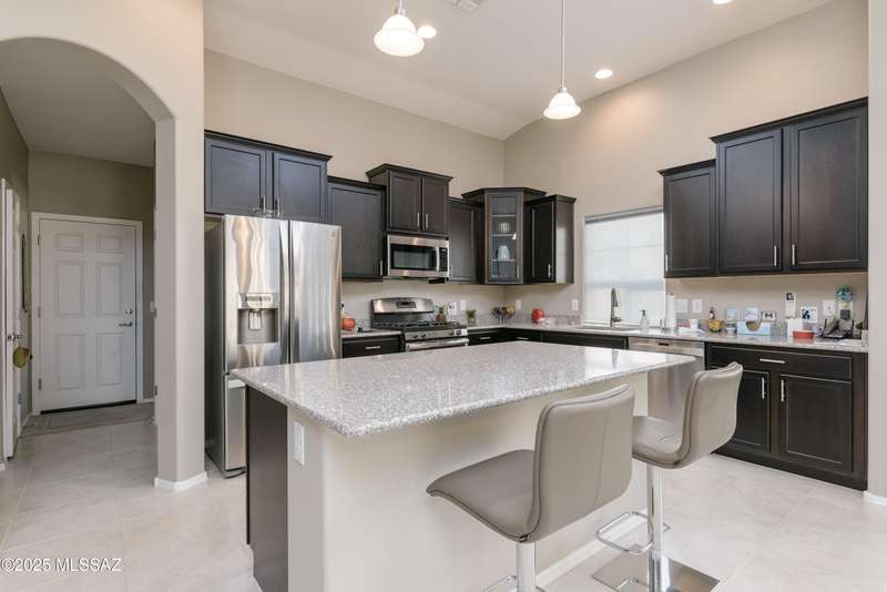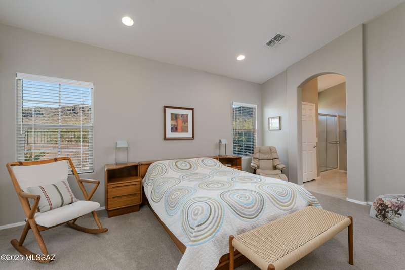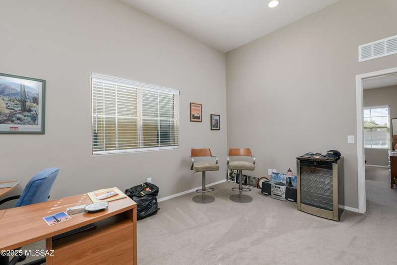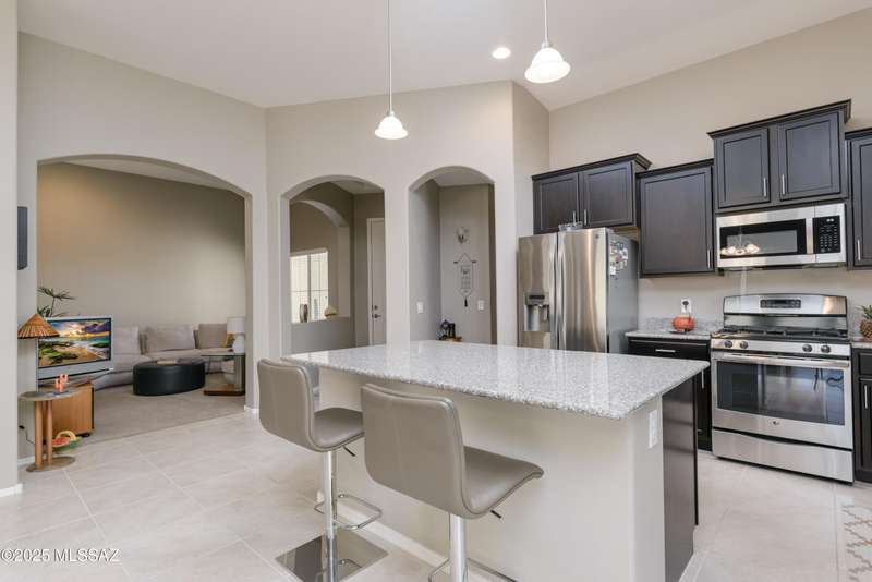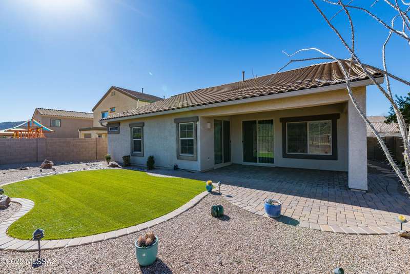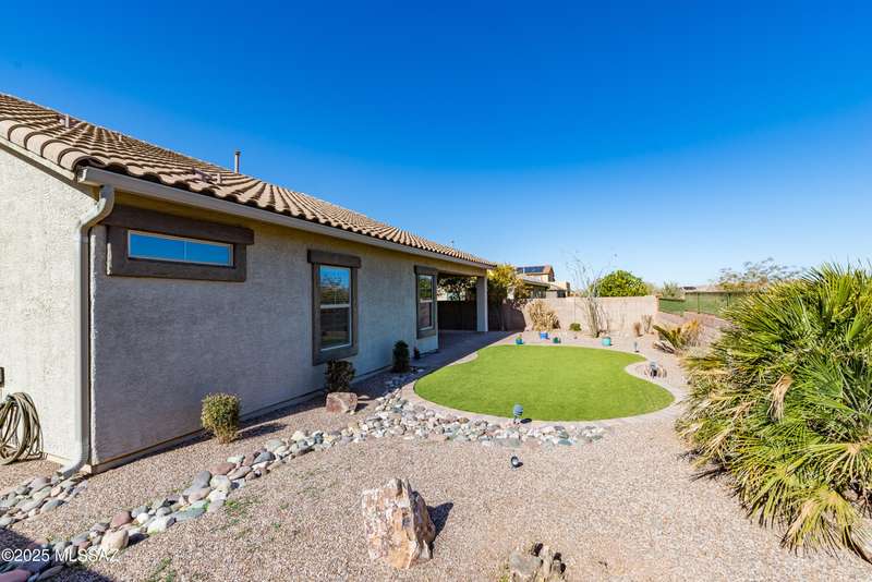 This 2,241 sf DR Horton Kramden Model is located in the master-planned community of Saguaro Bloom. The flexible floorplan includes three bedrooms and two baths with a bonus/game room between the two guest bedrooms for a play/living area separate from the rest of the house. There is also a library area off the entry. The kitchen has upgraded features including granite countertops, cabinets, stainless appliances, and a large island/breakfast bar. The spacious primary suite features a sliding door to the rear yard, dual sinks, walk-in closet and step-in shower. This one-owner home has been meticulously maintained since new. The community offers many lifestyle features including parks, nature walking trails, pools, sports courts, recreation center, and splashpad play area.