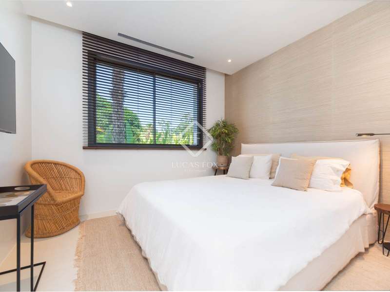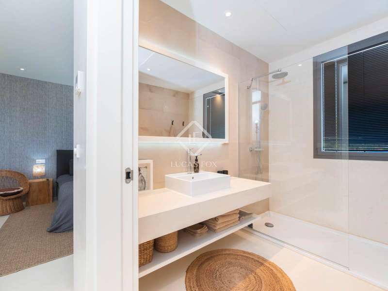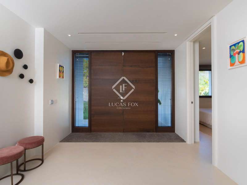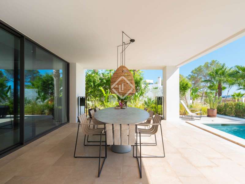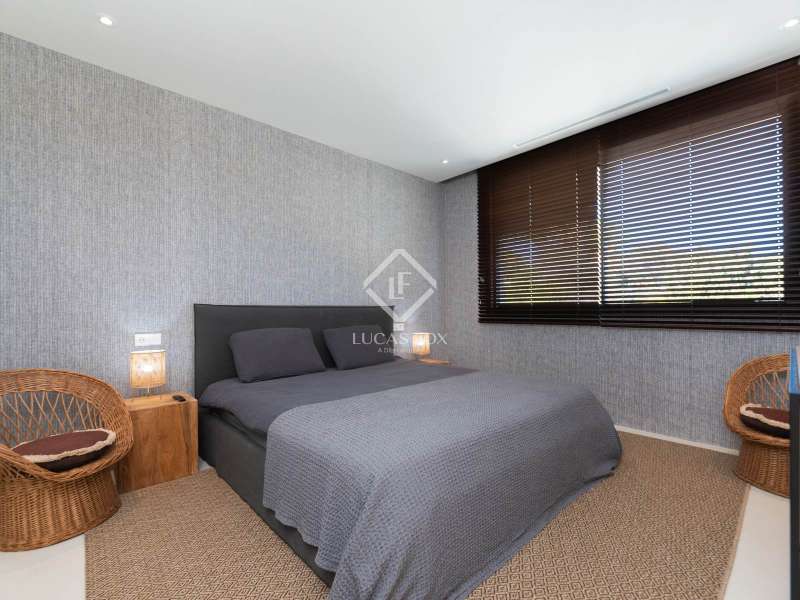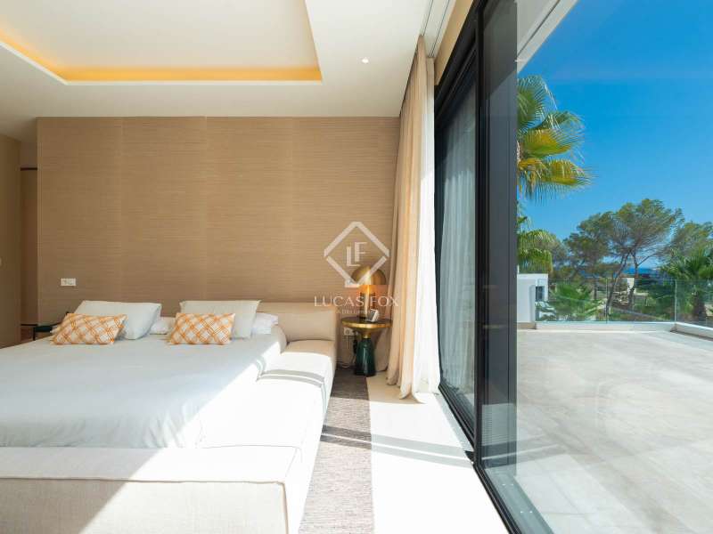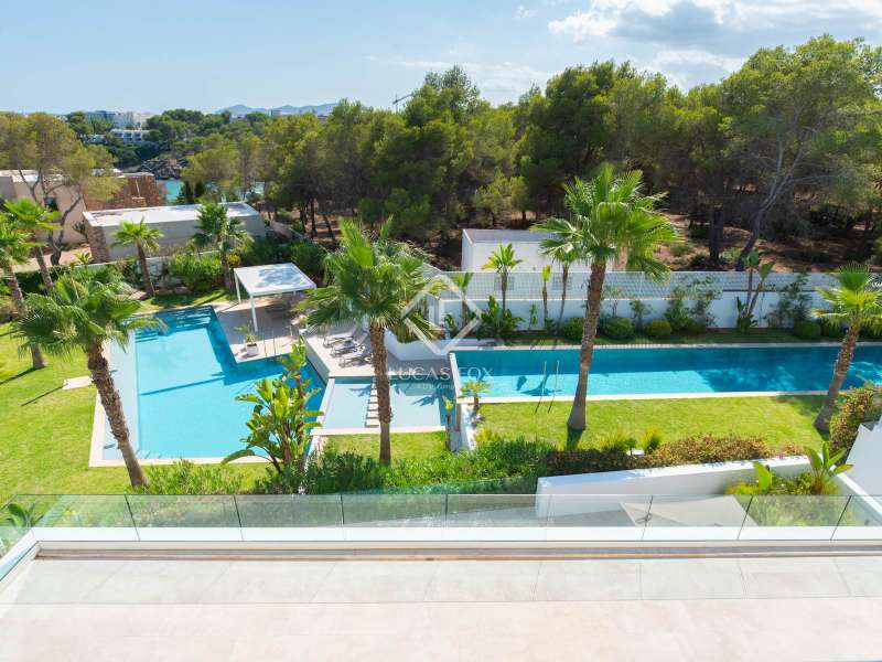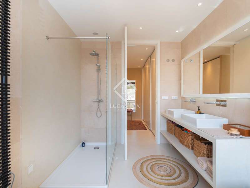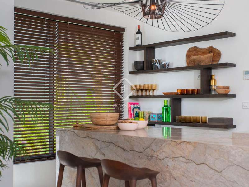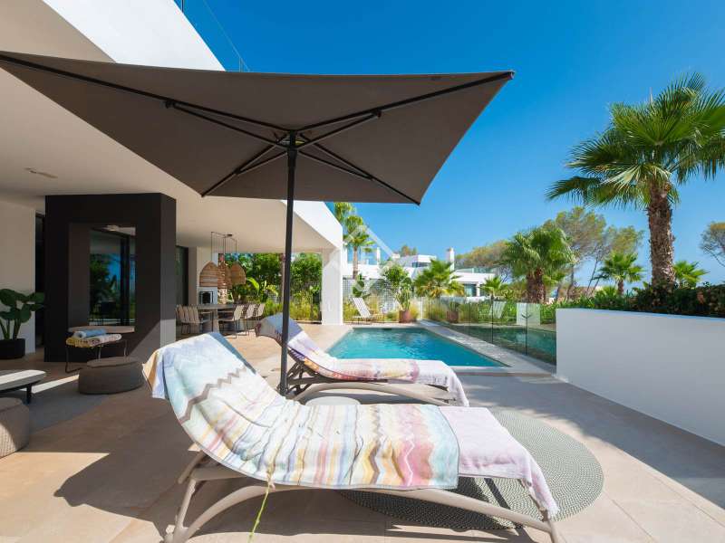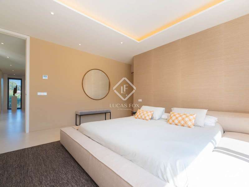 This villa is located in an exclusive gated community of just five homes, just a two-minute walk from the golden beaches of Cala Llenya. Every sophisticated corner has been designed to offer comfort, yet with an elegant and timeless style. The property features five spacious bedrooms with uniquely designed private bathrooms: a guest suite on the ground floor and four additional bedrooms floor . The impressive 80 m² living room features high cathedral ceilings and opens onto a private patio and landscaped garden with a heated pool. It is ideal for both relaxing and entertaining guests. From its terraces, you can admire the verdant landscape with sea views. The interiors feature the highest quality finishes, with a soft, natural color palette complemented by custom details. The lush garden is carefully designed with tropical vegetation and flowering shrubs. The property boasts furnishings from renowned brands such as Gervasoni, Living Divani, and B&B Italia, and a functional, handcrafted Eginstill kitchen, ideal for both everyday use and special occasions. The villa overlooks the lush community park, a meticulously maintained area that houses a spectacular 400 m² pool on three levels for comfortable swimming, as well as areas designed for the enjoyment of both residents and visitors. The community guarantees exceptional privacy, with indoor and outdoor spaces protected from the exterior for greater exclusivity and privacy. The property 's layout has been carefully thought out, with multiple distinct living spaces. It also features a private, secure garage, accessible via a remote-controlled gate.