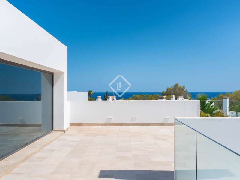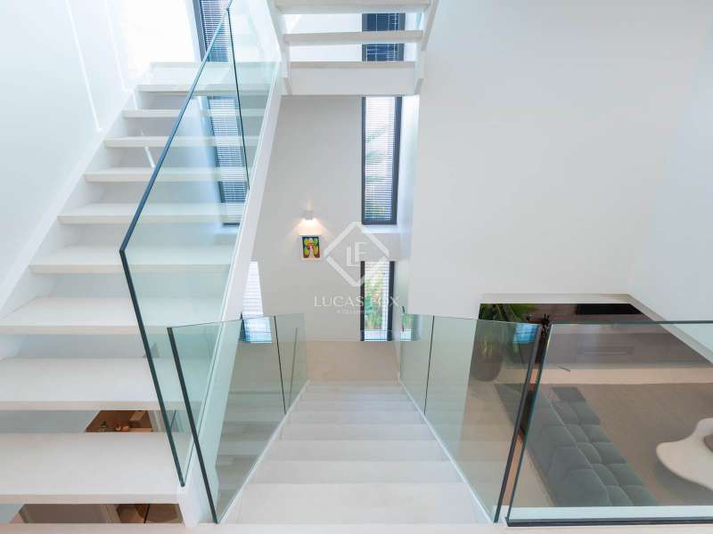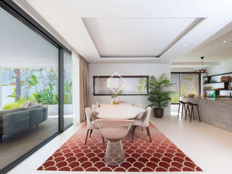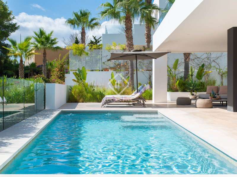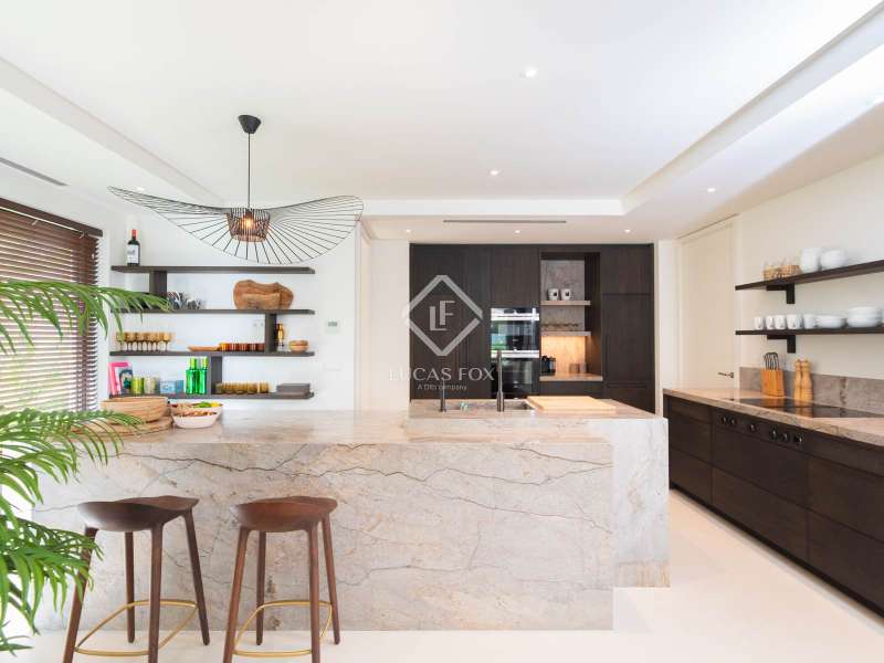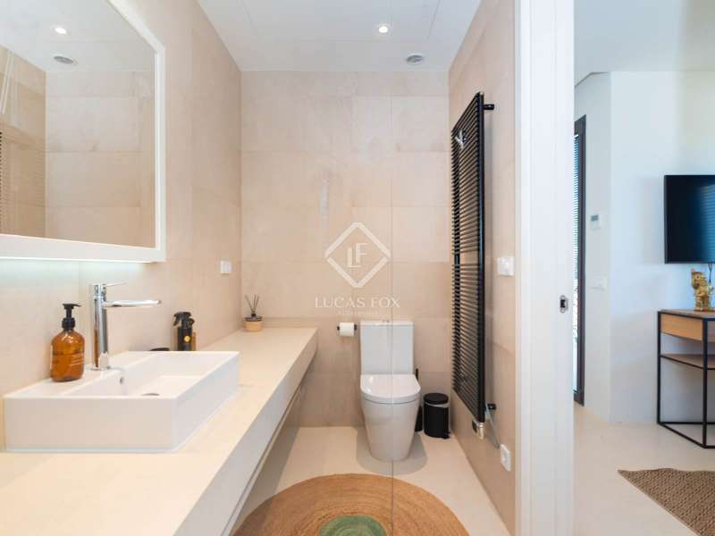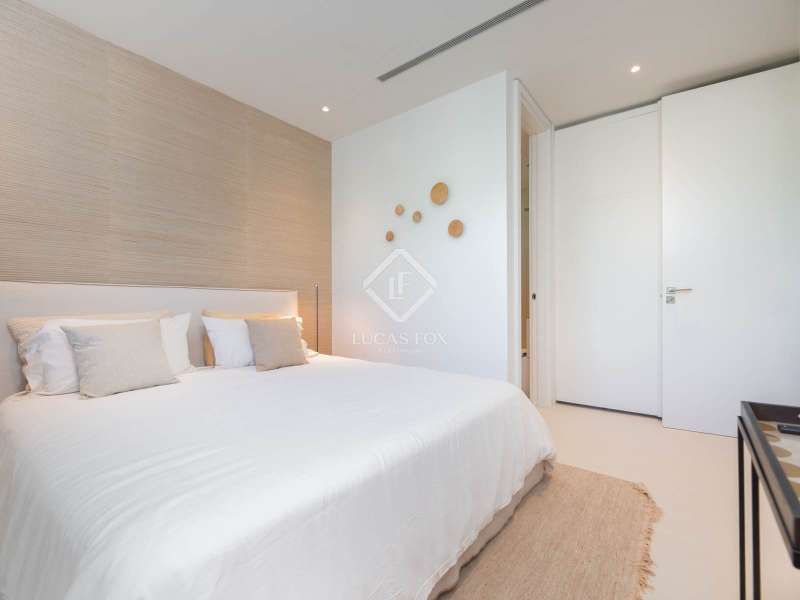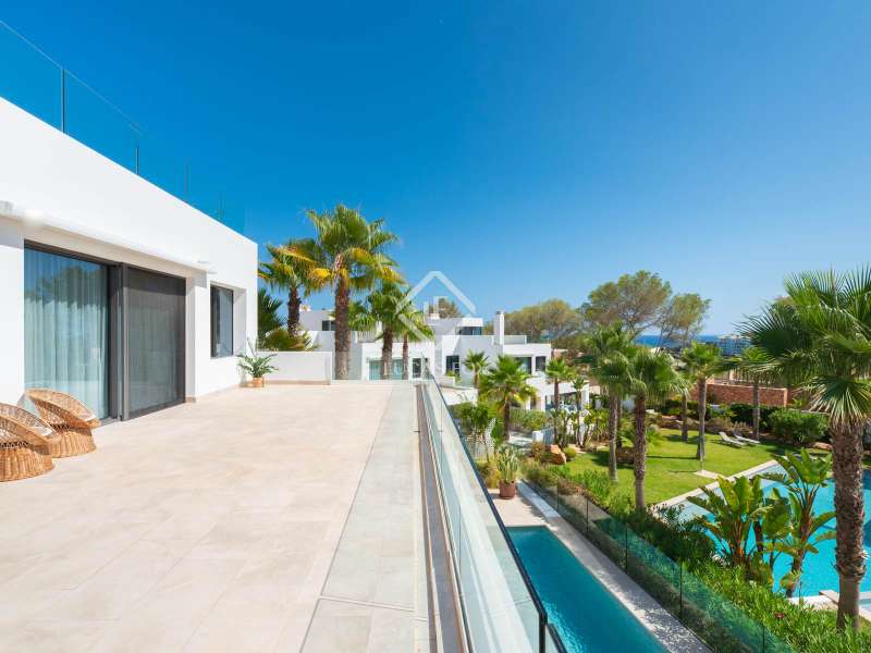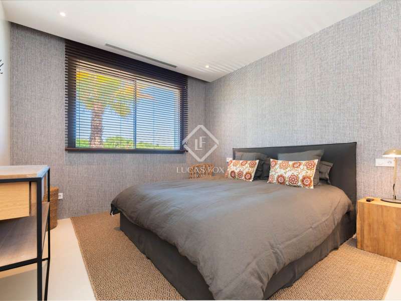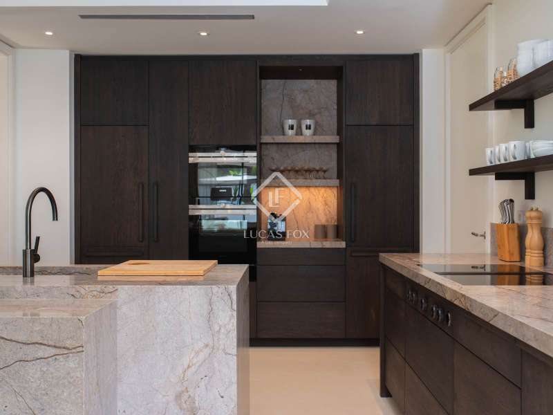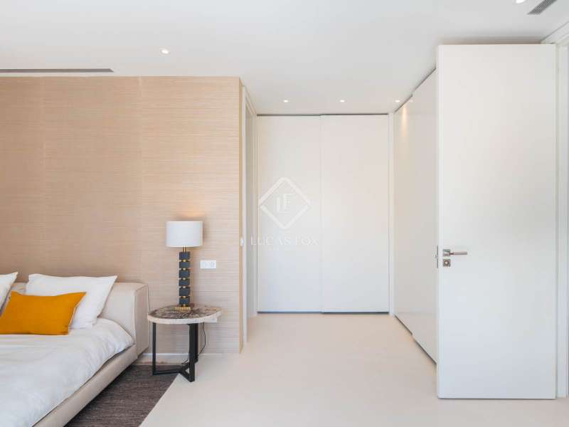 This villa is located in an exclusive gated community of just five homes, just a two-minute walk from the golden beaches of Cala Llenya. Every sophisticated corner has been designed to offer comfort, yet with an elegant and timeless style. The property features five spacious bedrooms with uniquely designed private bathrooms: a guest suite on the ground floor and four additional bedrooms floor . The impressive 80 m² living room features high cathedral ceilings and opens onto a private patio and landscaped garden with a heated pool. It is ideal for both relaxing and entertaining guests. From its terraces, you can admire the verdant landscape with sea views. The interiors feature the highest quality finishes, with a soft, natural color palette complemented by custom details. The lush garden is carefully designed with tropical vegetation and flowering shrubs. The property boasts furnishings from renowned brands such as Gervasoni, Living Divani, and B&B Italia, and a functional, handcrafted Eginstill kitchen, ideal for both everyday use and special occasions. The villa overlooks the lush community park, a meticulously maintained area that houses a spectacular 400 m² pool on three levels for comfortable swimming, as well as areas designed for the enjoyment of both residents and visitors. The community guarantees exceptional privacy, with indoor and outdoor spaces protected from the exterior for greater exclusivity and privacy. The property 's layout has been carefully thought out, with multiple distinct living spaces. It also features a private, secure garage, accessible via a remote-controlled gate.