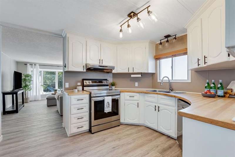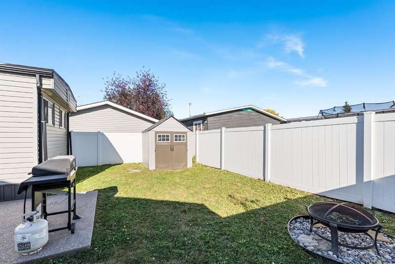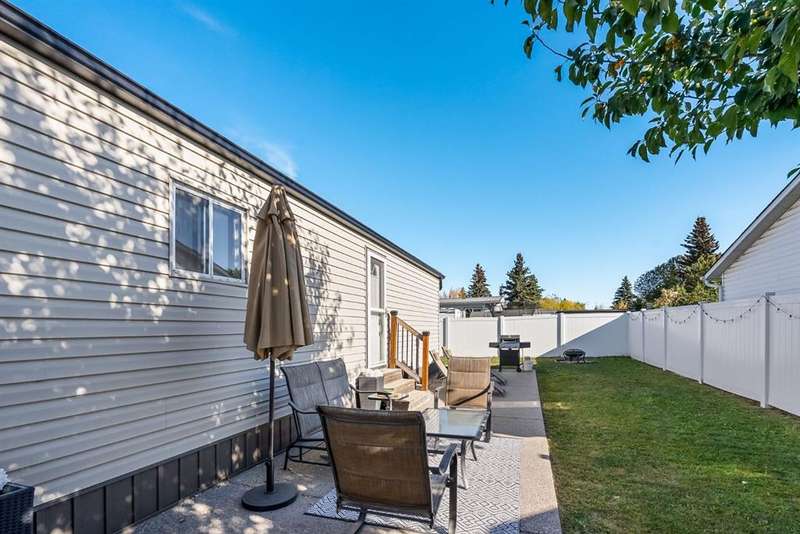 Move-in ready with land ownership! STEPS away from Airdrie’s GENESIS CENTRE, BERT CHURCH THEATRE, Shopping, Dining, and a quick dash out to the main arteries of Airdrie. This updated 976 sq ft mobile home offers a bright, open layout with kitchen, dining, and living areas that flow seamlessly together. Features include stainless steel appliances, durable flooring, 2 bedrooms, and a full 4-piece bath. Enjoy a private fenced yard with patio and storage shed that is perfect for pets, gardening, or relaxing outdoors. With recent updates and land included, this home delivers comfort, value, and peace of mind. Don’t miss out on your opportunity to own your own home, land, with all the comforts needed for a first time buyer or young family. Call your favorite realtor today to book a showing.