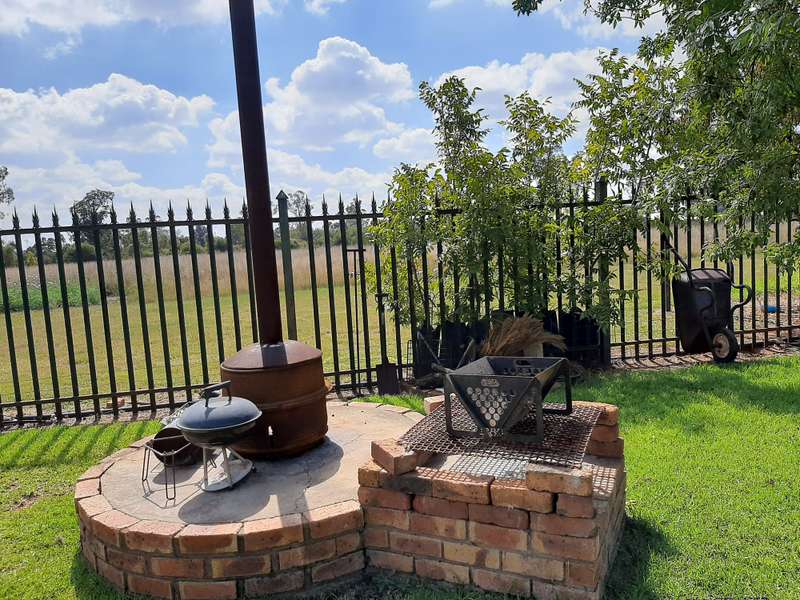 SOOO MUCH POTENTIAL!! CASH BUYERS ONLY. The house was built with Nutec walls; the banks will not finance this property. This neat smallholding is situated close to a main road and has easy access to the N12 Highway, and it is perfect for a start-up farmer with 146 pecan nut trees about 4 to 5 years old and irrigation already in place. There are a large variety of fruit trees as well. The house consists of 3 bedrooms, one bathroom with a separate toilet, a kitchen with a built-in gas stove and a courtyard at the back, and a lounge that walks out to the patio. The yard around the house is fenced, and the whole property is fenced as well. There are various implements that are included in the sales price. A double garage, an alarm system, beams around the house, and a strong borehole.