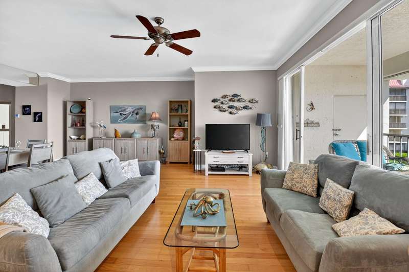 Escape to your dream vacation every day in this beautifully updated and fully furnished 2 bed, 2 bath condo in the waterfront community of Half Moon Bay. With hardwood floors, granite countertops, and an open layout that flows to a spacious screened patio, you'll love relaxing with breezy Intracoastal views or entertaining in style. This gated community offers endless resort-style amenities--2 heated pools, 3 tennis courts, sauna, bocce, a scenic promenade, and a clubhouse filled with social events. Just minutes from the beach, fine dining, and shopping, it's the perfect blend of leisure and convenience. With completed milestone inspections, strong reserves, and no assessments, you can move right in and start enjoying the South Florida lifestyle you've always imagined!