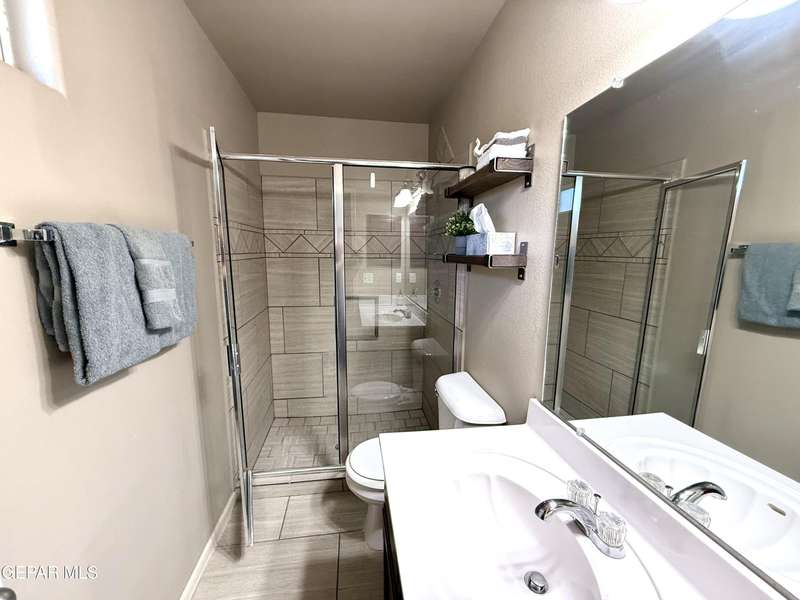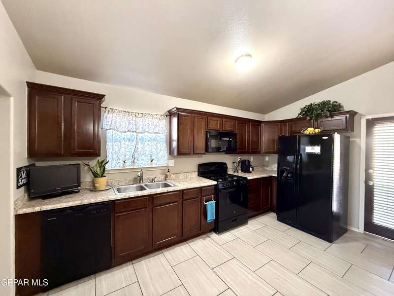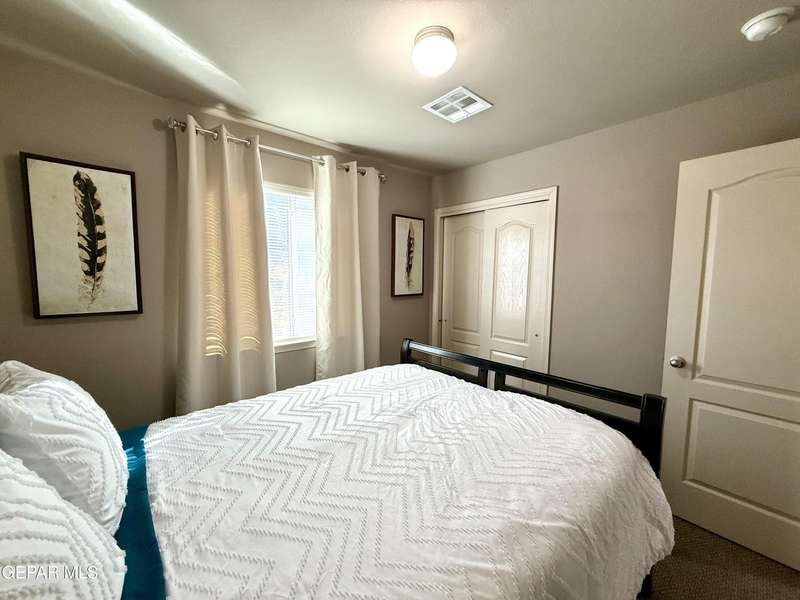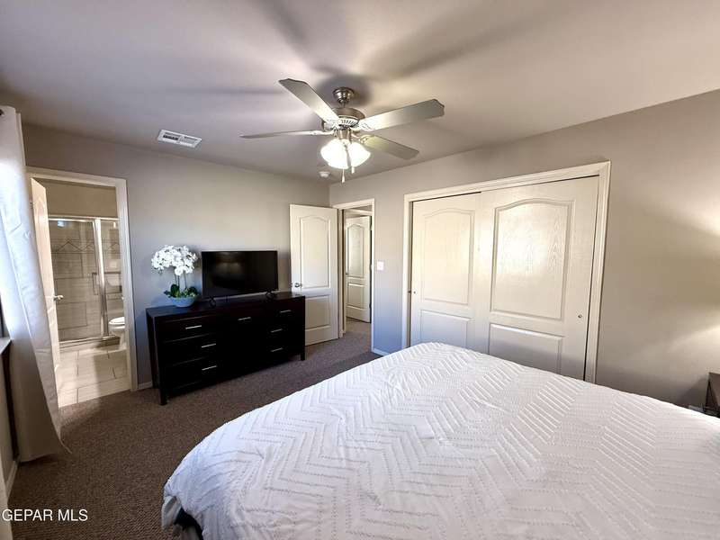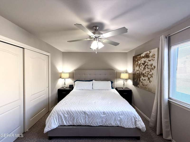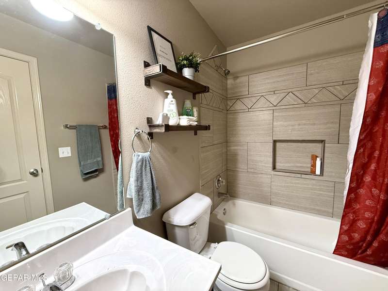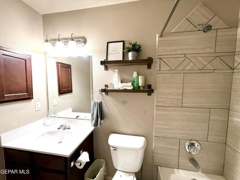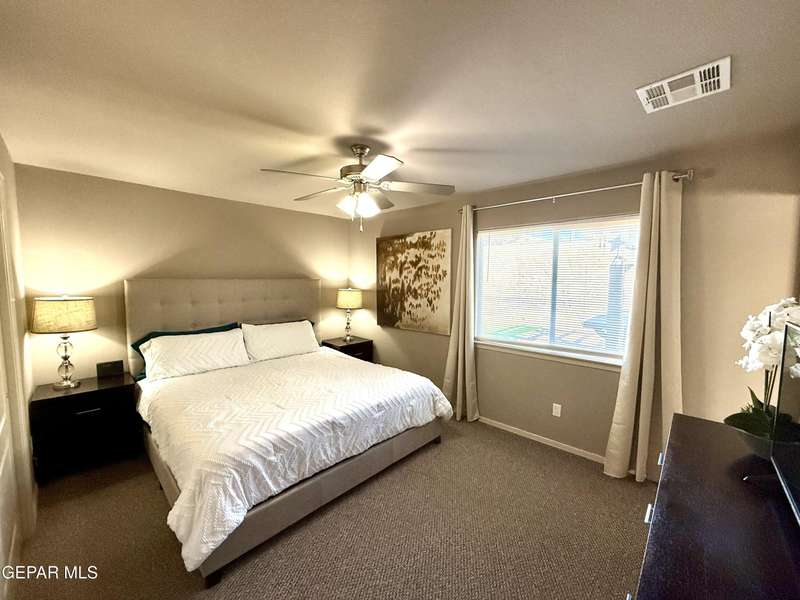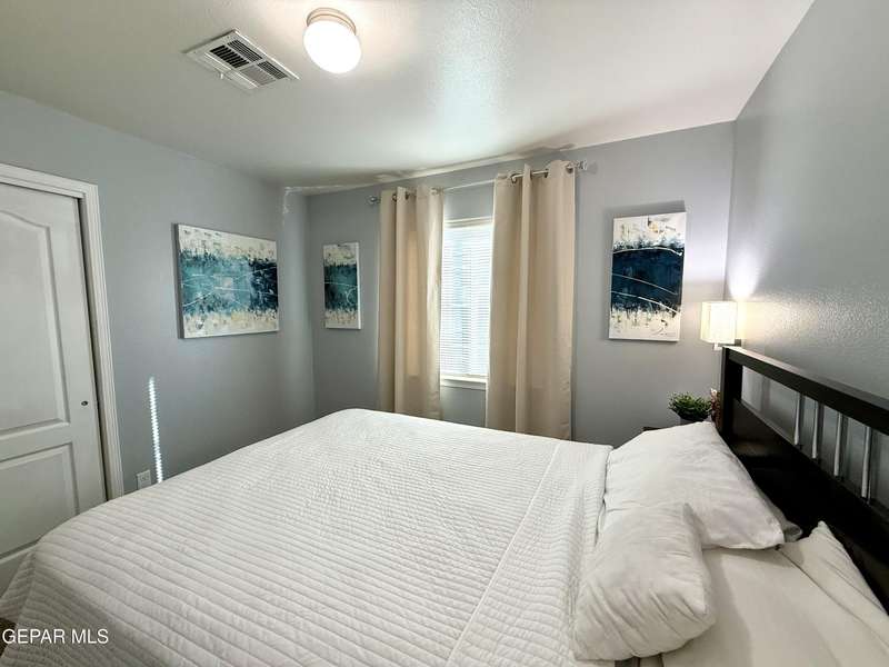 Move-in ready 3-bedroom, 2-bath home in East El Paso near Zaragoza and Montana with direct access to Fort Bliss. Features an open-concept layout with high ceilings, tile flooring, and abundant natural light. The kitchen offers ample cabinet space and modern appliances. Spacious bedrooms and updated baths provide comfort and style. The low-maintenance backyard includes turf, a covered patio, and a pergola ideal for entertaining. Garage has epoxy flooring and has a park right across. Conveniently located near shopping, dining, schools, and major routes, this home offers easy living in a prime location.