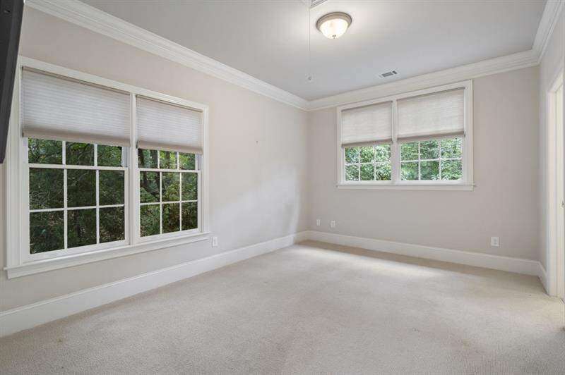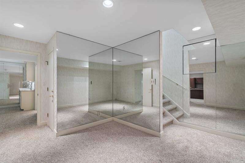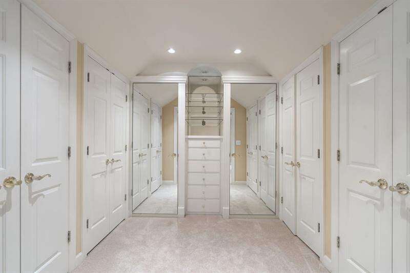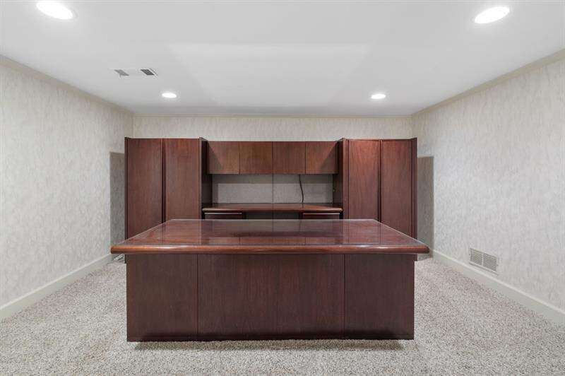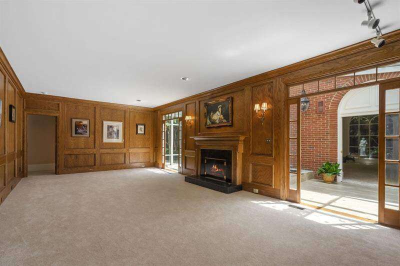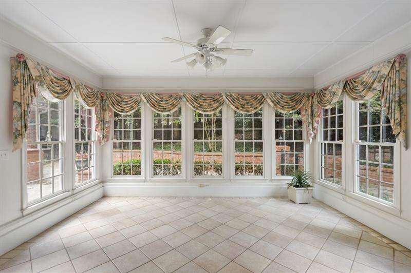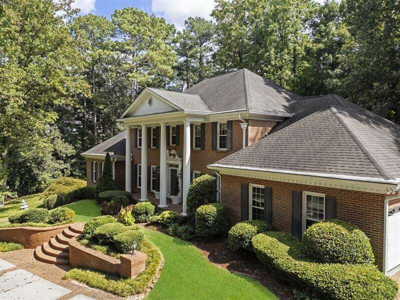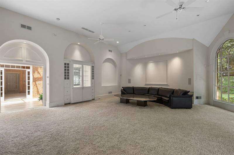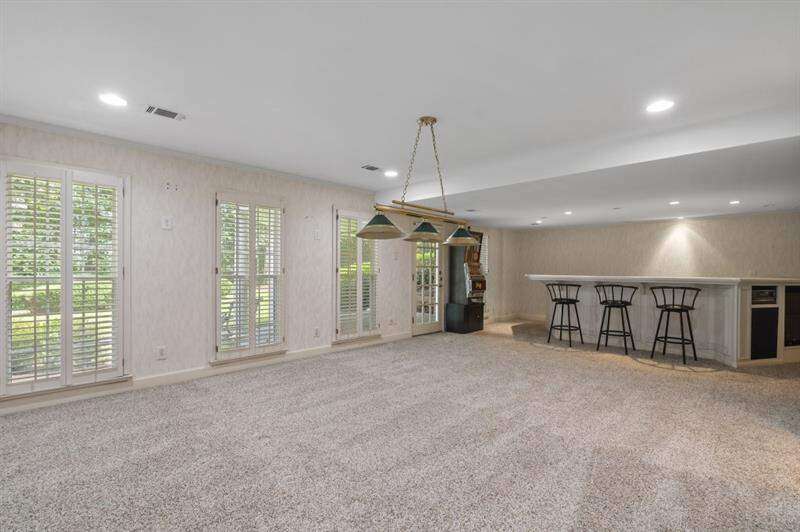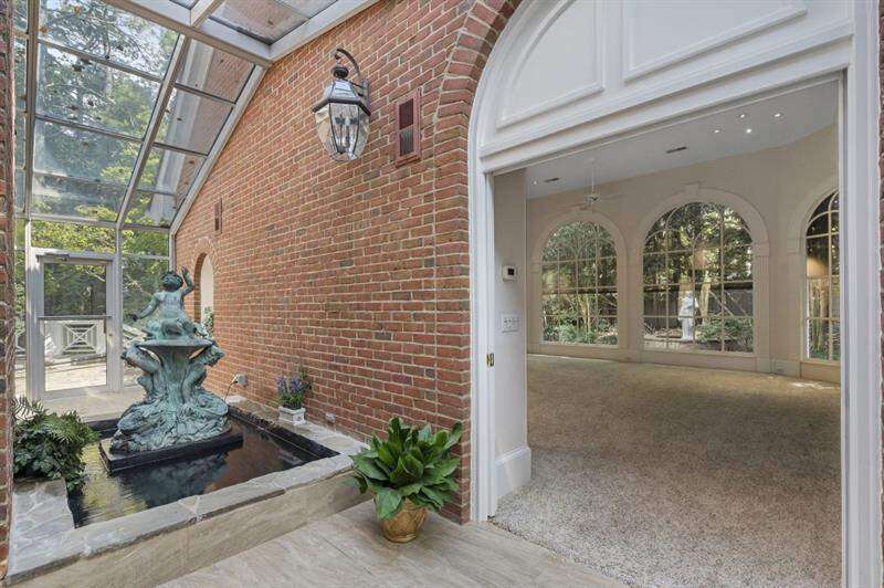 This elegant gated estate rests on 2.23 manicured acres in the heart of Sandy Springs, offering exceptional privacy, architectural sophistication, and an abundance of living space both inside and out. A long, landscaped driveway leads to a grand brick facade with classic columns. The grand double doors welcome you into a breathtaking two-story foyer featuring polished marble floors and a sweeping staircase. To the left, the formal living room invites conversation with its fireplace and abundant natural light, while across the foyer the formal dining room exudes elegance with marble flooring and a mirrored feature wall. The richly paneled den, accented by coffered ceilings and a fireplace, offers a warm and refined space for quiet reading or intimate gatherings. Nearby, a solarium with floor-to-ceiling windows and an antique fountain opens into an expansive media and entertainment room, complete with built-in cabinetry, a retractable awning, surround sound, and dramatic Palladian-style windows that flood the space with light. The heart of the home lies in the gourmet kitchen, with white custom cabinetry, porcelain tile flooring, stainless steel appliances including a built-in steamer, tile backsplash, and off-white Corian countertops. A spacious breakfast room and adjacent sunroom provide stunning views of the backyard, creating a peaceful setting for daily living. The main level also features a large primary suite with dual oversized closets and a private en suite bath, ideal for guests. Upstairs, the luxurious secondary primary suite is a true retreat, highlighted by a lighted double tray ceiling, spa-inspired bath with dual vanities, a jacuzzi tub, and a custom-designed oversized closet. Additional upstairs bedrooms are generously sized and share well-appointed baths, offering comfort and privacy for family and guests. The finished terrace level expands the home's living space with a versatile layout that includes a home office, a full bath, a wet bar, a game area, and direct access to a covered patio. Just off the terrace level, there's ample space to add a custom pool, allowing seamless indoor-outdoor entertaining. On the opposite side of the storage building, there's room for a tennis court or handball court, adding even more recreational possibilities to the estate. Several levels throughout the home and grounds can comfortably host mixed indoor-outdoor gatherings of over 100 people, making it ideal for entertaining on a grand scale. The grounds are equally impressive, featuring brick paver pathways, manicured lawns, classical statues, multiple fountains, and a built-in gas grill-perfect for al fresco entertaining. The guest house features its own three-car garage, providing private accommodations that include a living space with a kitchen, a full bathroom, and a bedroom. This arrangement increases the total garage capacity to five cars. This one-of-a-kind estate offers timeless craftsmanship, thoughtful updates, and premier amenities in one of Sandy Springs' most sought-after neighborhoods.