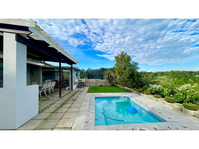 Welcome to the end of Raspberry Lane where coastal living meets divine vista. The plunging valley on the left and the scenic ocean, river and golf course views in front of you blend a calm and tranquil setting for you to enjoy every moment of living life. This secure family home is light, bright and breezy and has vinyl flooring throughout. Open plan kitchen and living area with doors that open onto a large patio with great entertainment area for the whole family. This property sees the sun the whole day so healthy living in this all year round warm climate. Great garden with a pool and excellent security features.Double garage with an outbuilding. Call me to view this great property. It is priced to sell.
