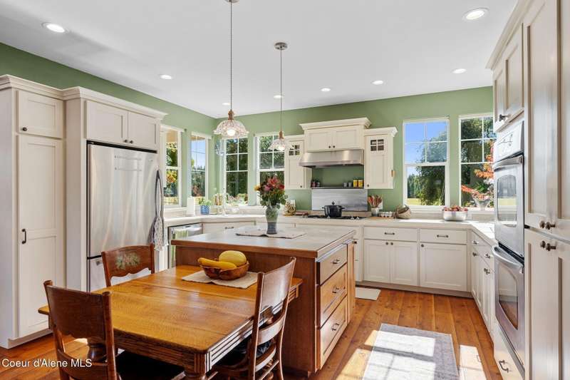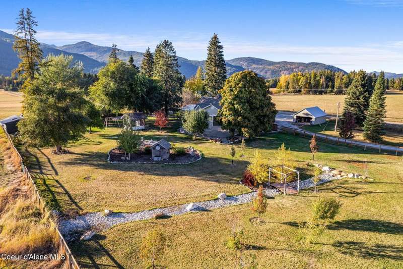 Discover your dream retreat in Selle Valley! This stunning 10-acre estate boasts a seasonal creek, breathtaking Schweitzer mountain views, and exceptional amenities for all. Enjoy a beautifully updated 3,950 sq ft farmhouse with 4 bedrooms, 3 baths (including two master suites), a cozy wood stove, and a functional basement for storage. The property features a 6,400 sq ft classic barn with a heated workout room and man cave, a massive insulated and heated shop, 2 RV sites, a charming chicken coop, irrigated gardens, and mature fruit trees. With 2 acres of meticulously landscaped grounds, this rare gem offers the perfect blend of comfort and rural charm. All of that and surrounded by 100's of acres of ranch land for added privacy. Make your appointment today and start making memories that last a lifetime.
